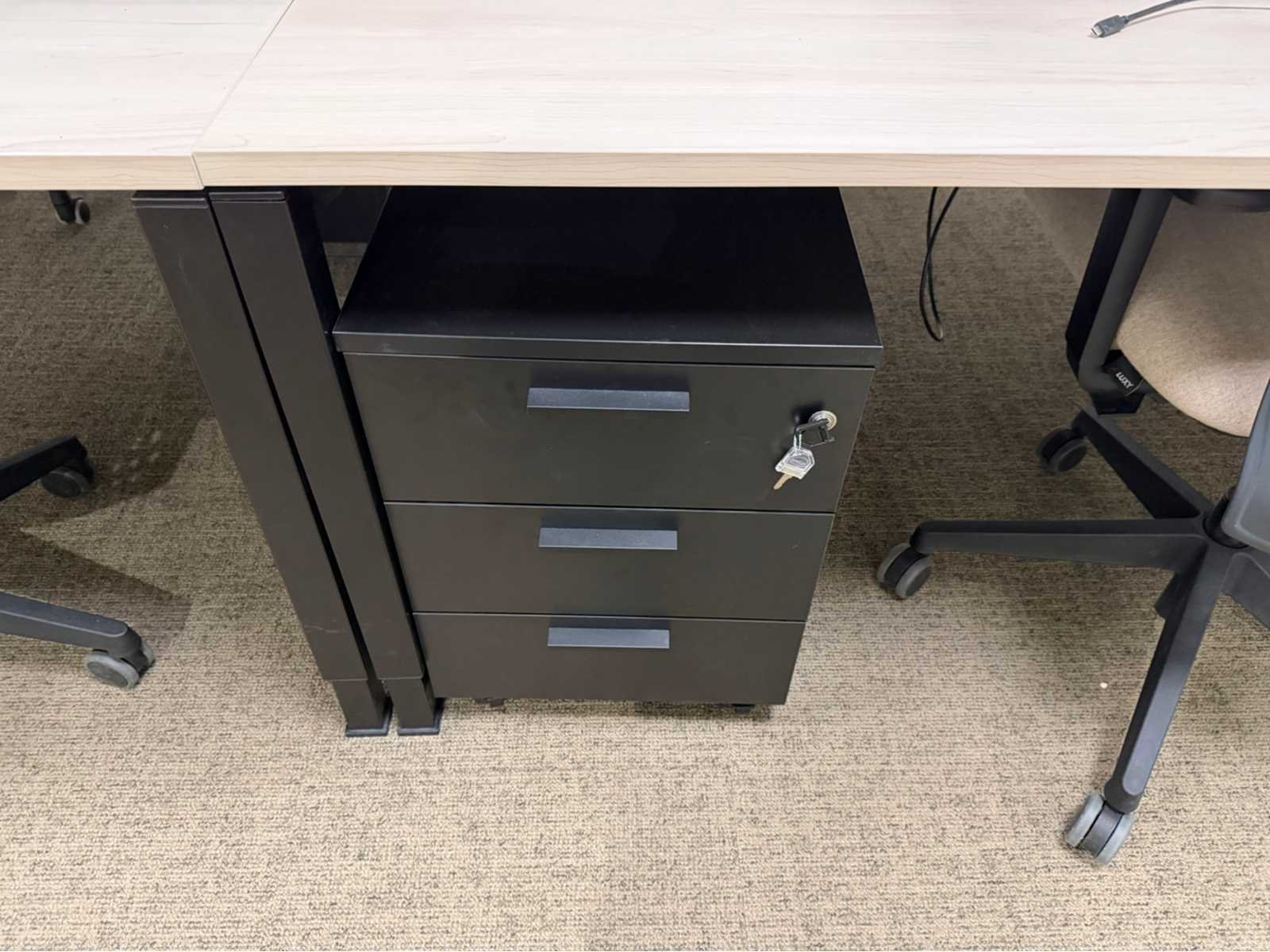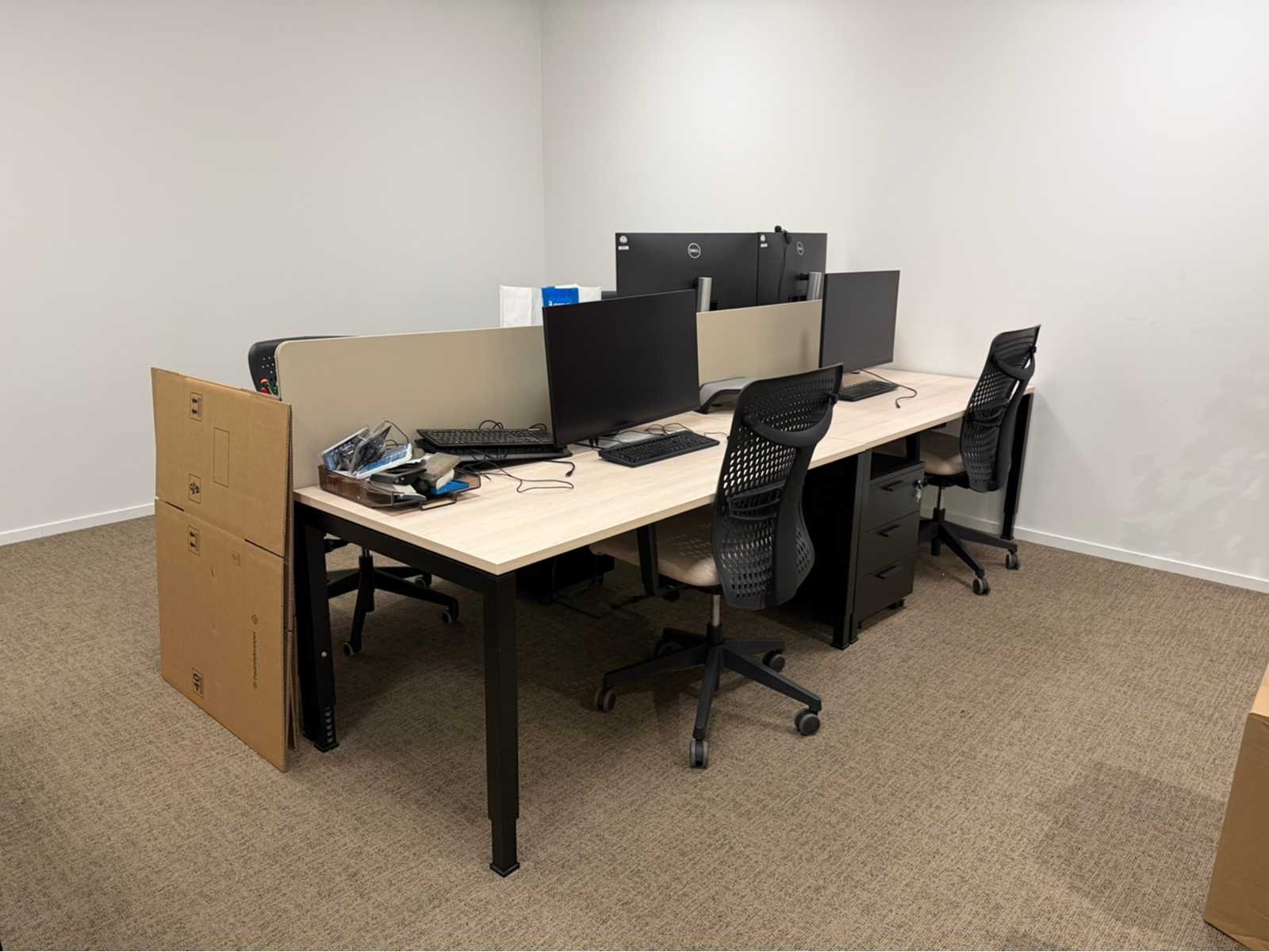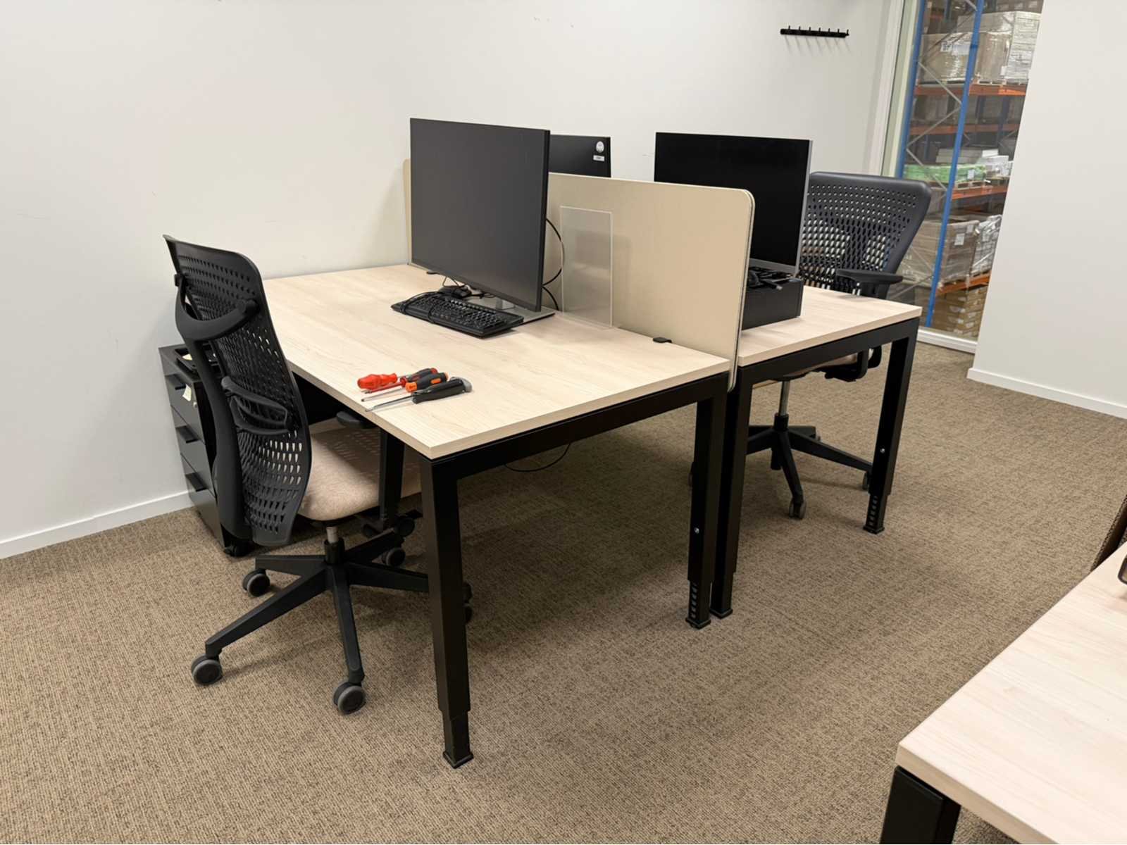 Bestaande uit: Bralco 6x bureau (160x80x75 cm), 6x bureaustoel en 3x ladekast, 1x kapstok. Monitoren, dockingstations en overige goederen zijn niet inbegrepen.