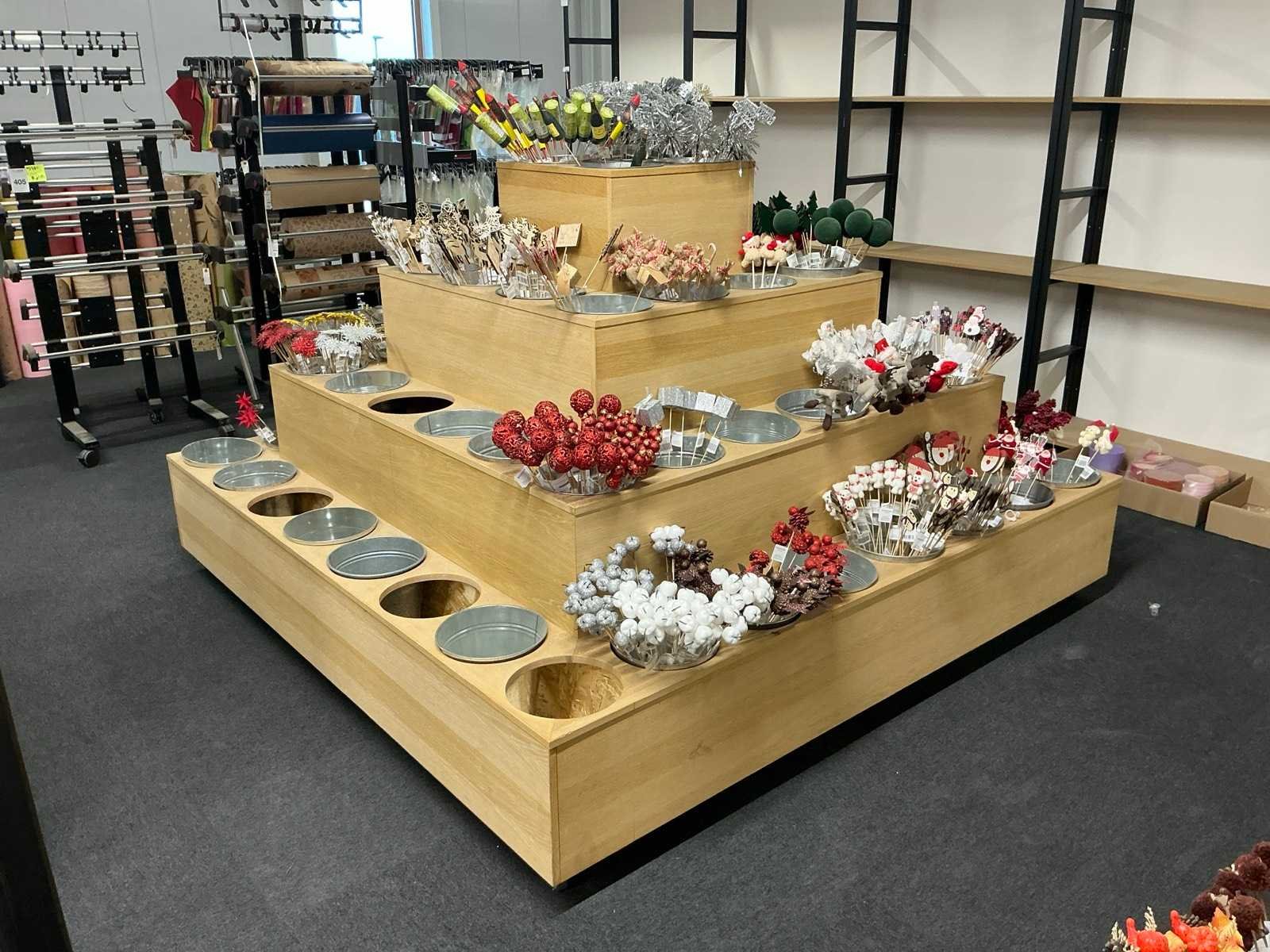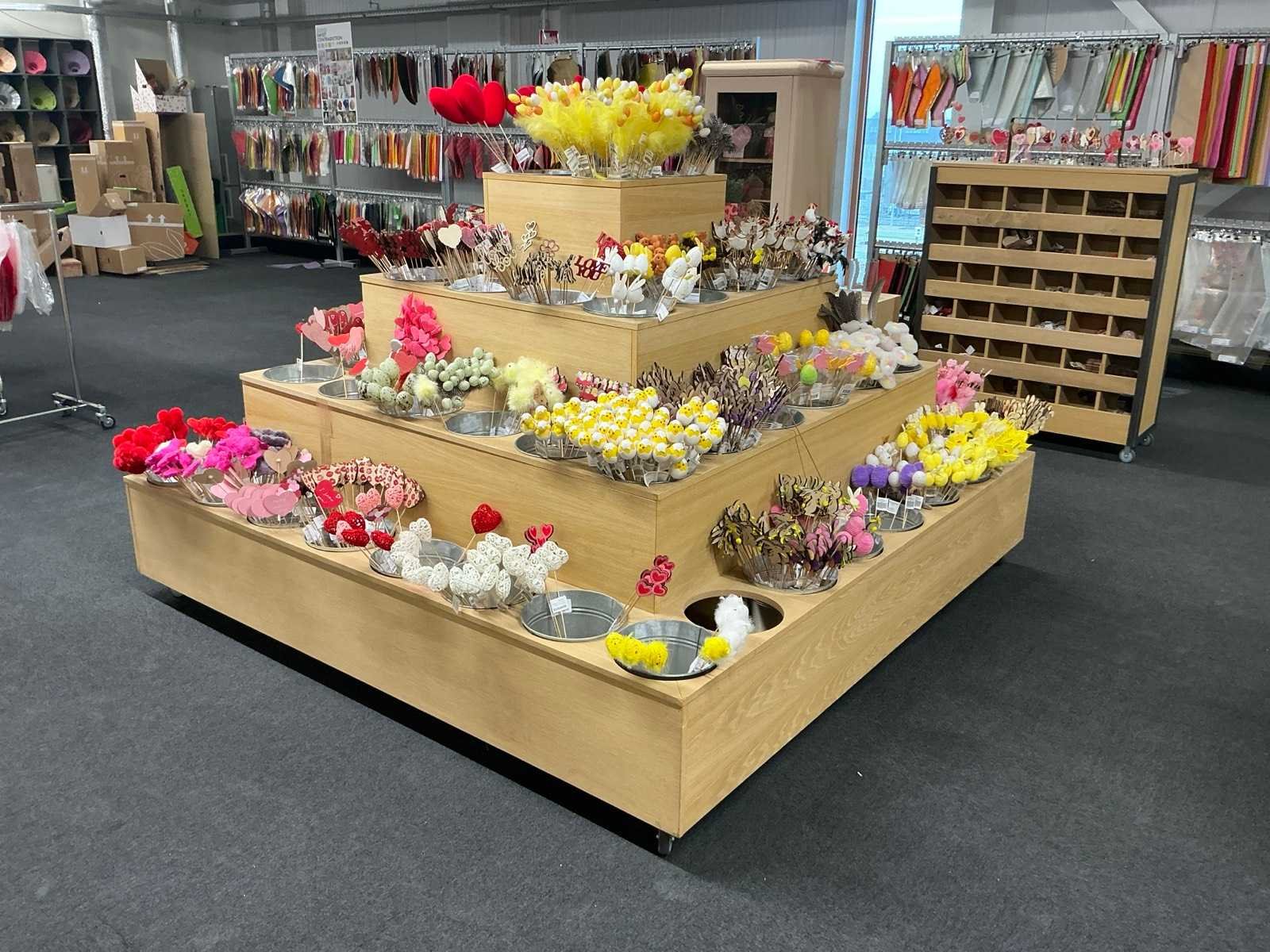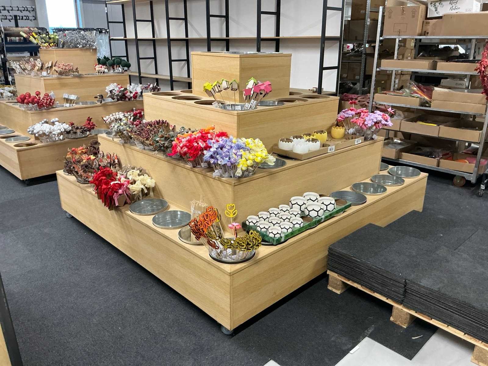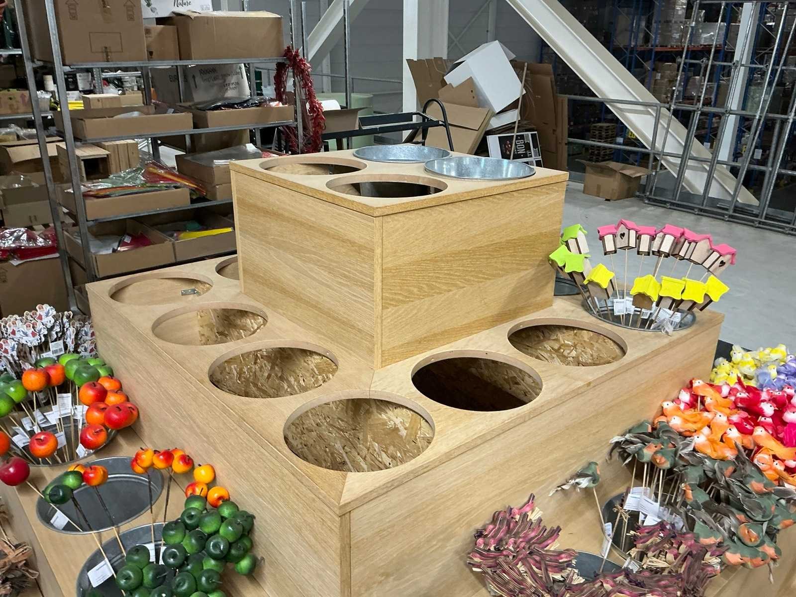 Voorzien van 4 lagen, plaats voor 64 emmers (Ø 25 cm). Verrijdbaar. Inhoud niet inbegrepen. Totale afmeting L: 2300mm Totale afmeting Breedte: 2300mm Totale afmeting Hoogte: 1500mm