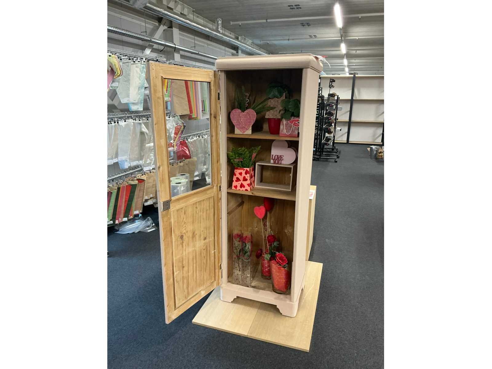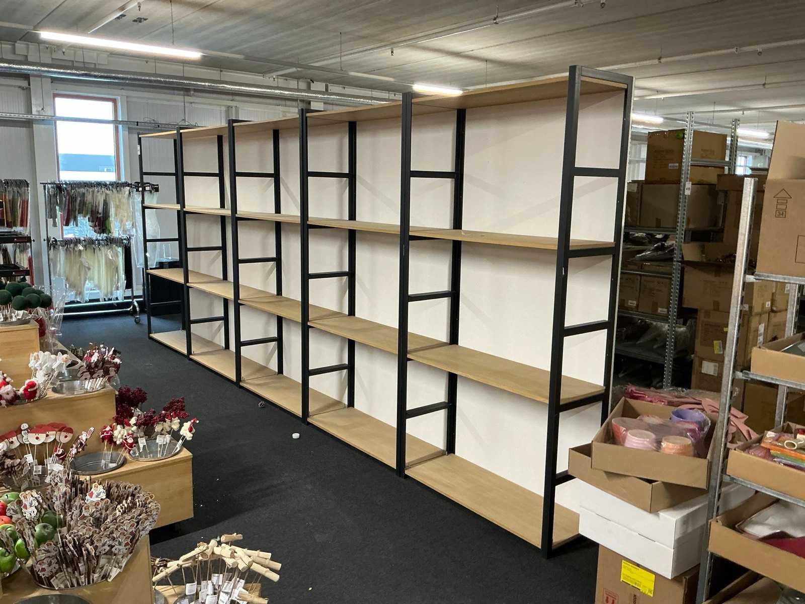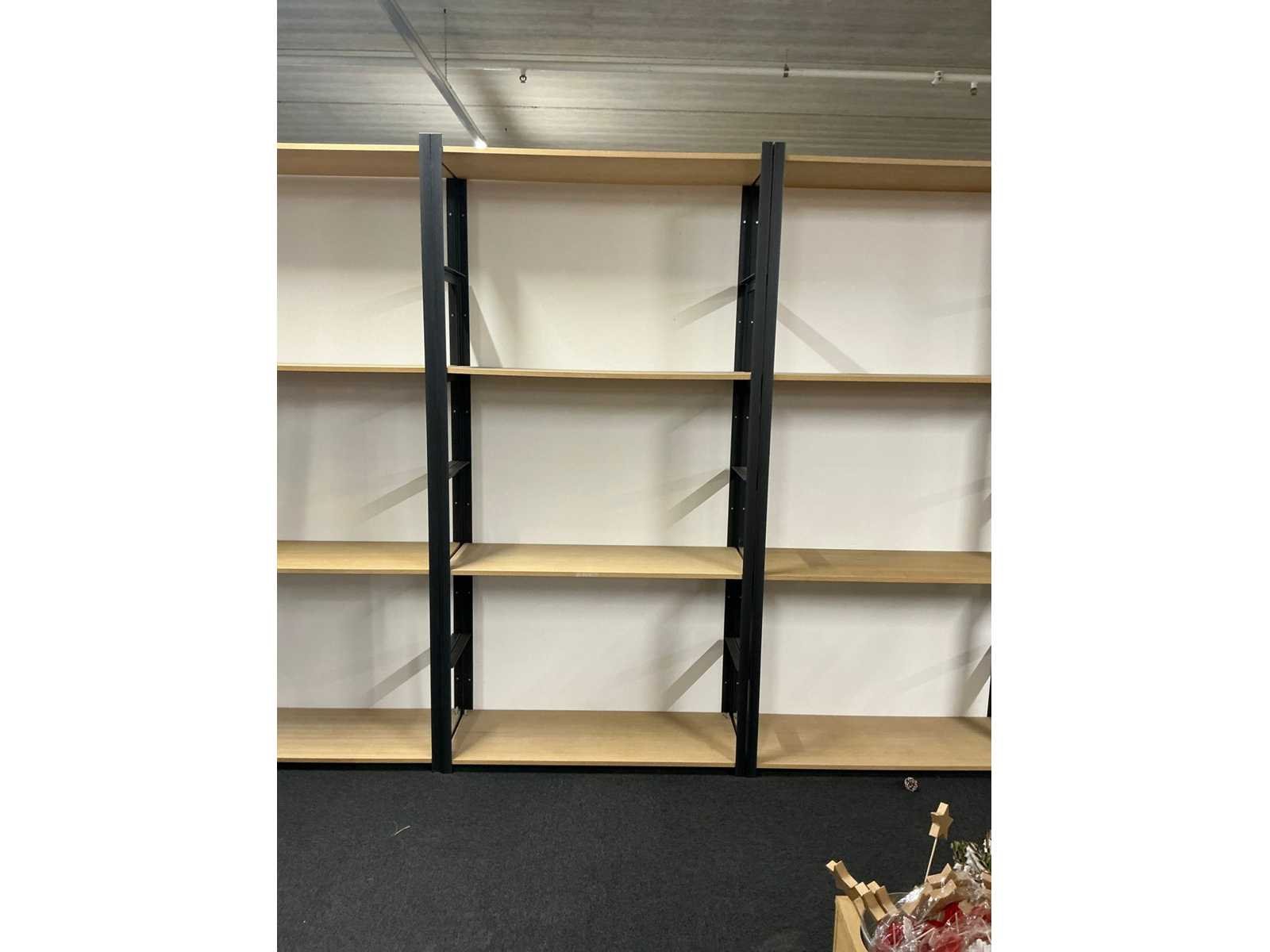 Bestaande uit 5 losse delen. (45x120x240 cm) (DxBxH) inclusief 5x achterwand met winkelrekken en staande vitrinekast (47x61x190 cm) inhoud niet inbegrepen.