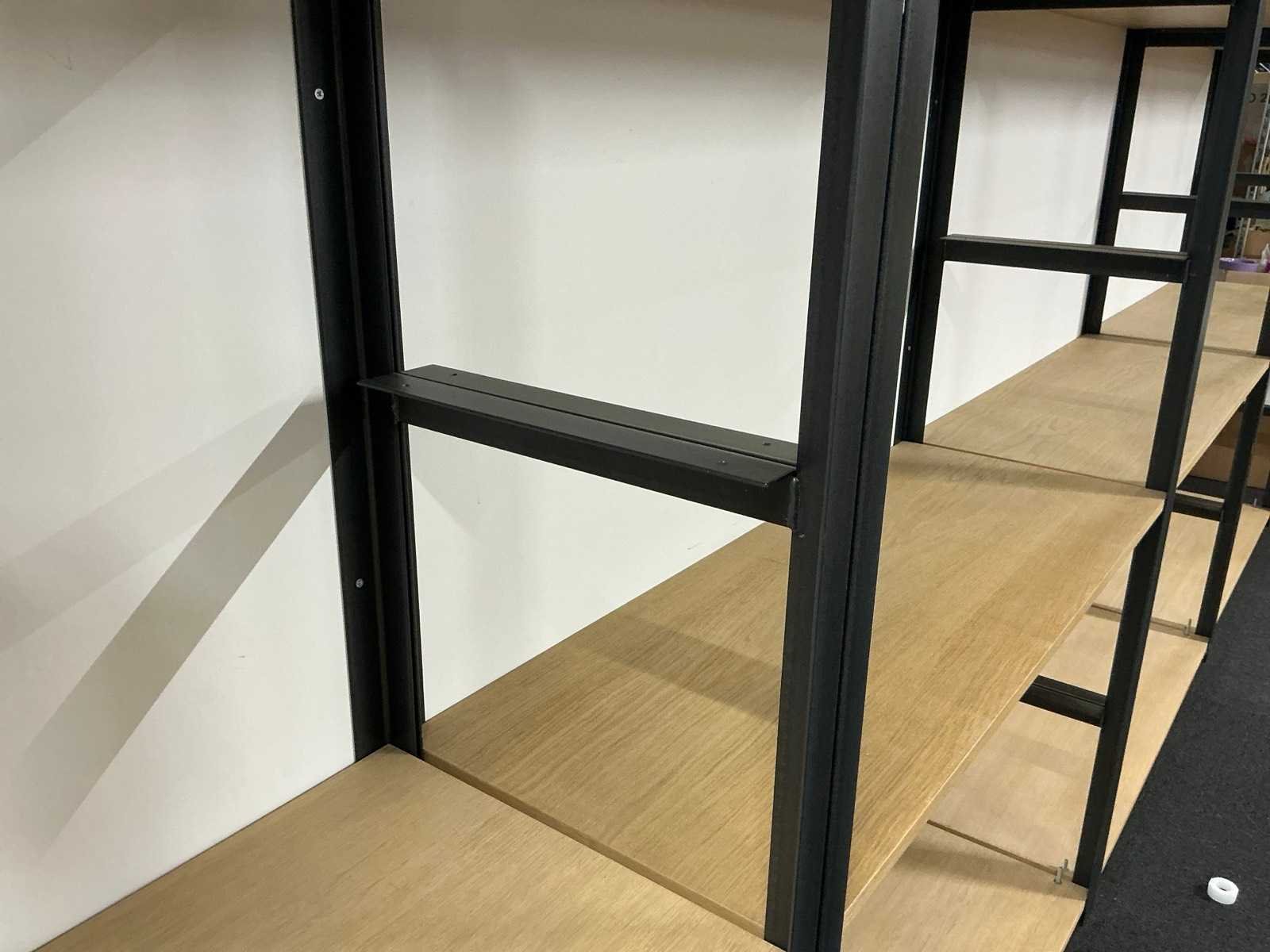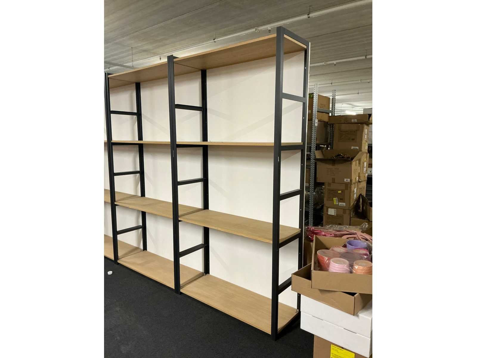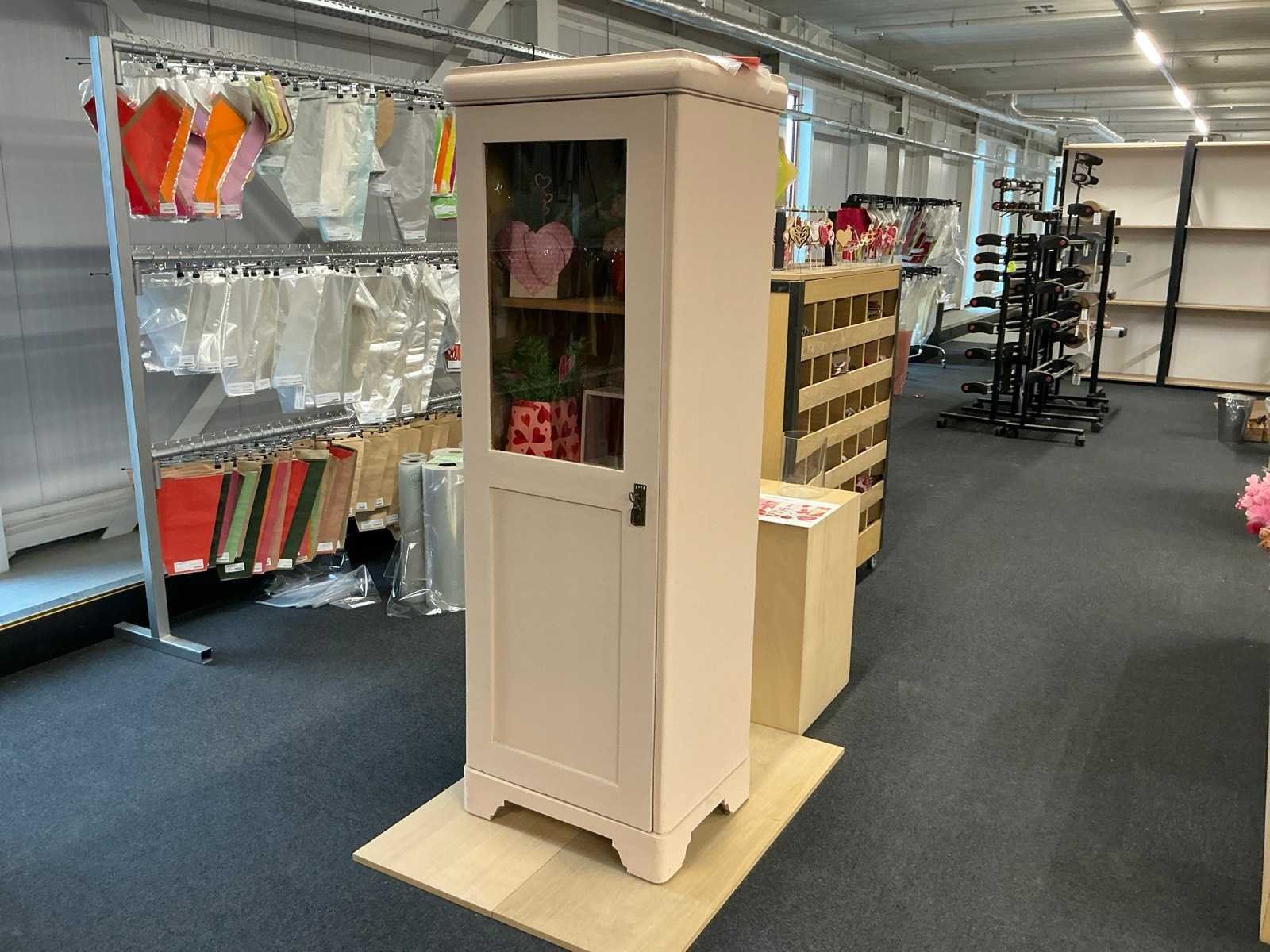Bestaande uit 5 losse delen. (45x120x240 cm) (DxBxH) inclusief 5x achterwand met winkelrekken en staande vitrinekast (47x61x190 cm) inhoud niet inbegrepen.