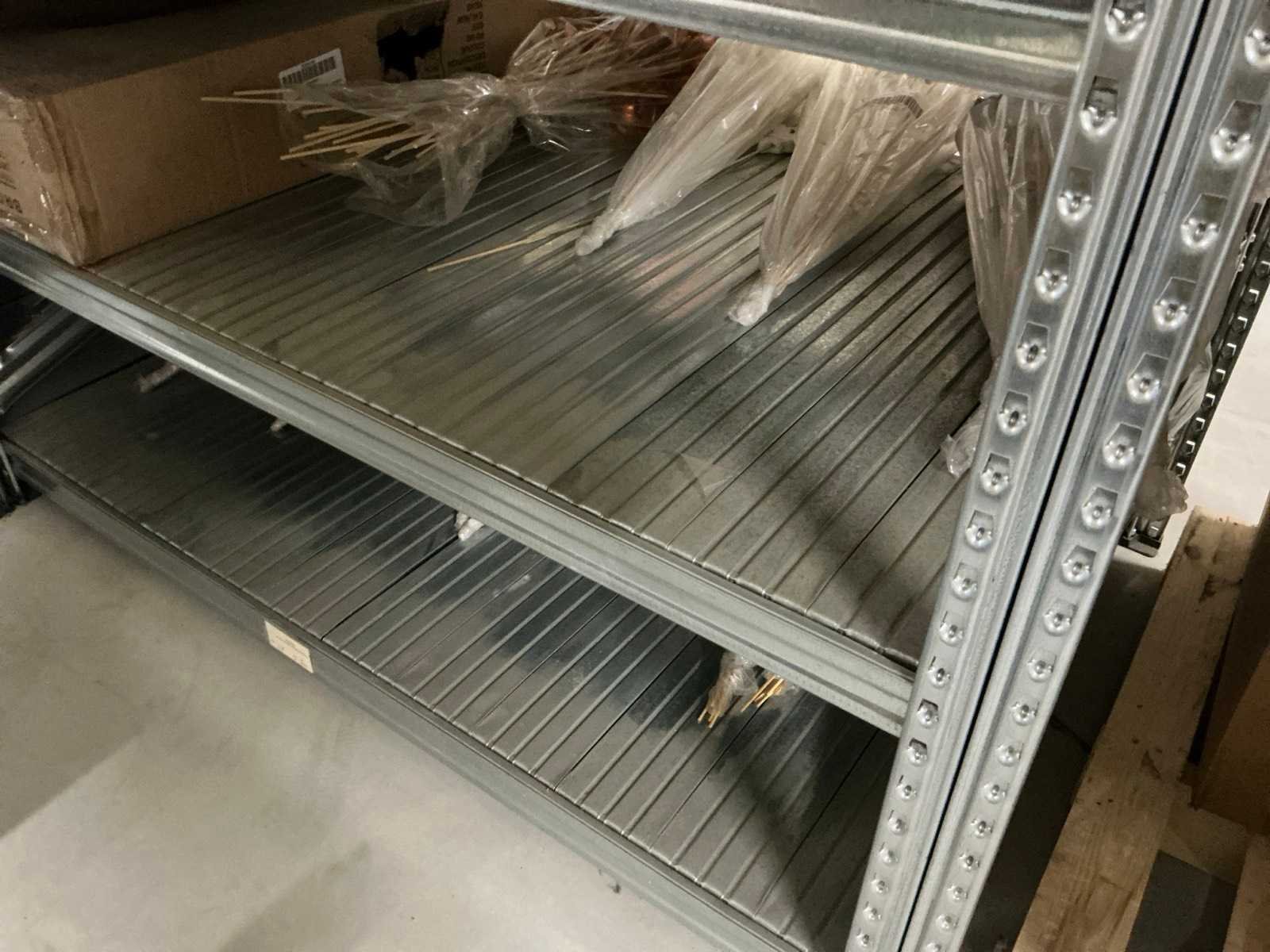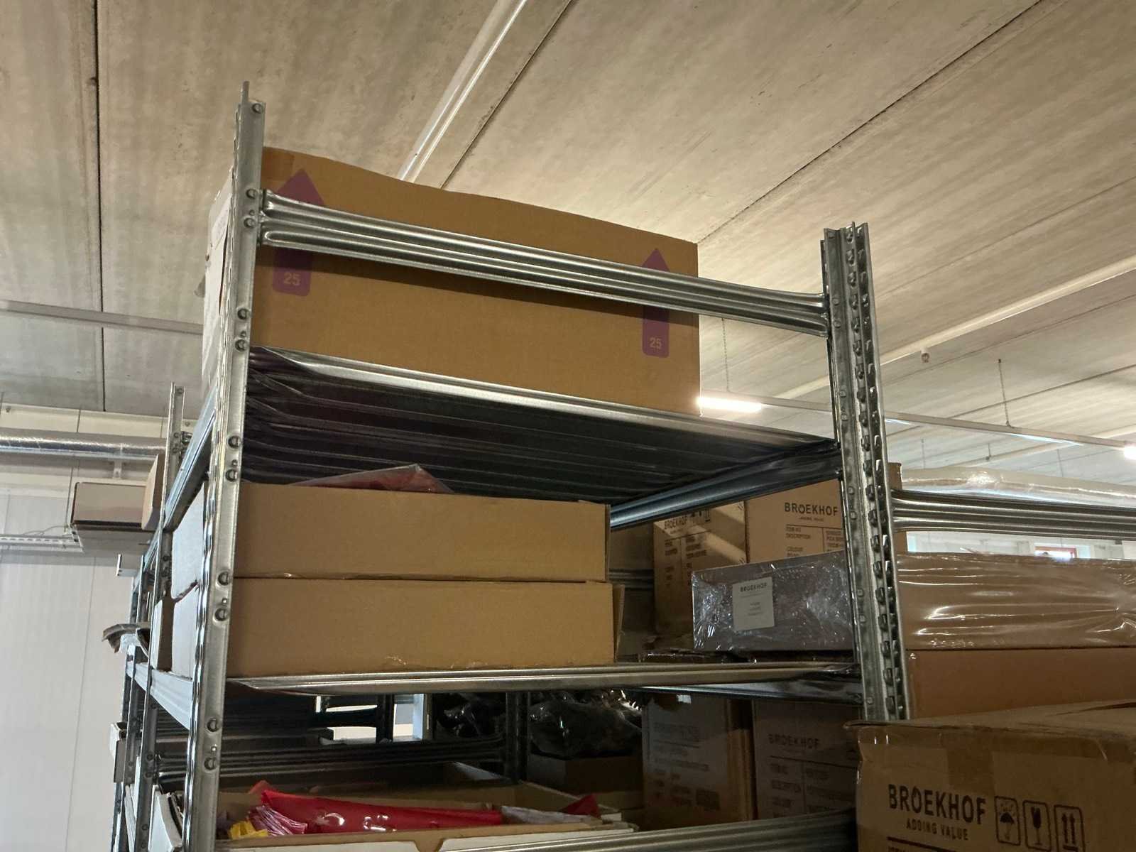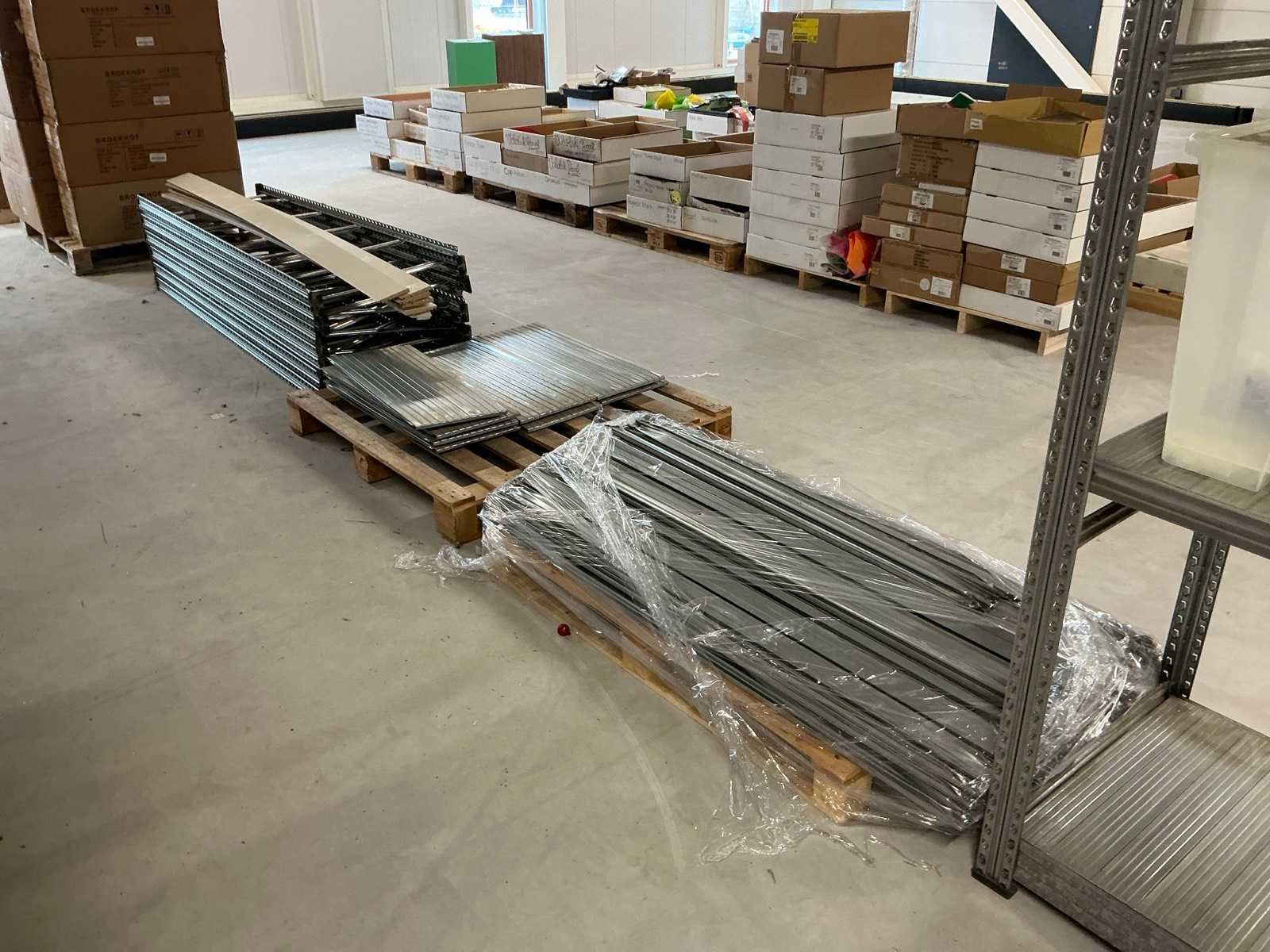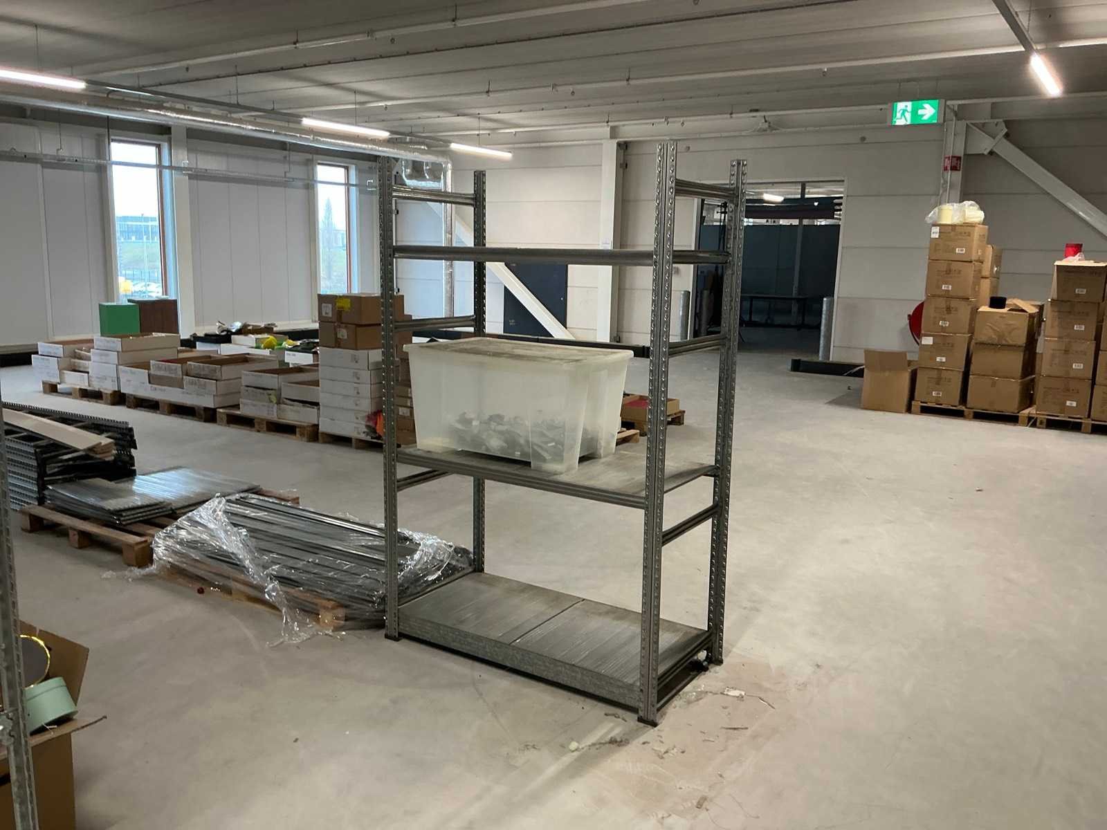 Bestaande uit in totaal 30 secties van 120 × 60 cm, waarvan 7 secties 120 × 80 cm. Hoogte staanders: 28 stuks van 200 cm en 7 stuks van 250 cm. Inclusief losse stellingstaanders en legborden. Inhoud niet inbegrepen. Aantal staanders: 37