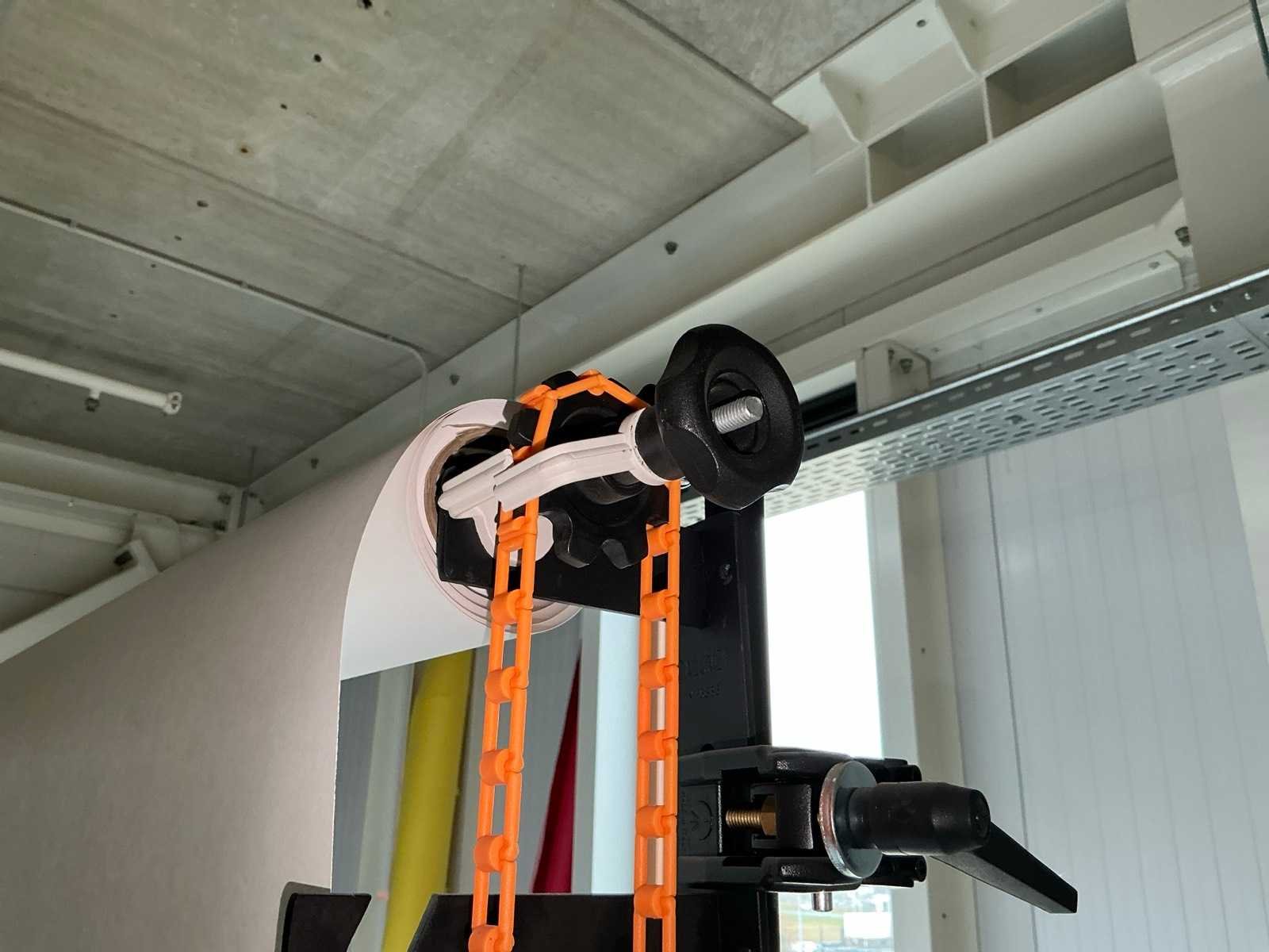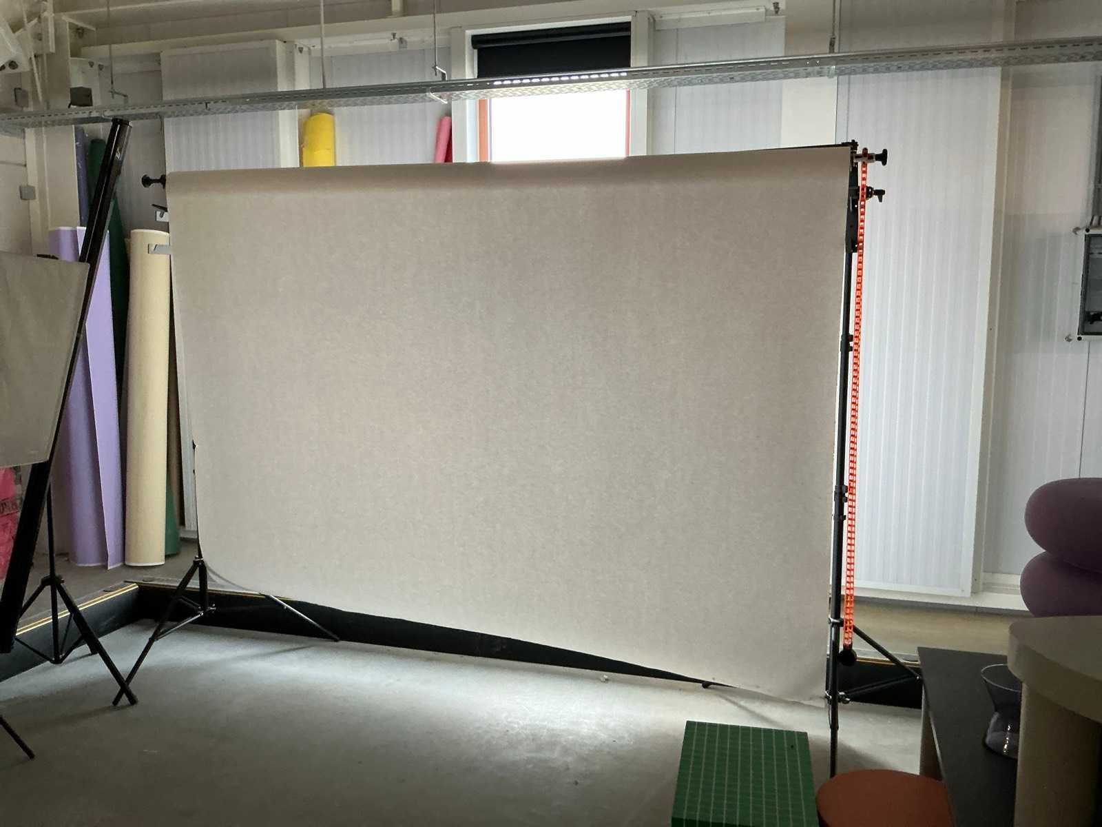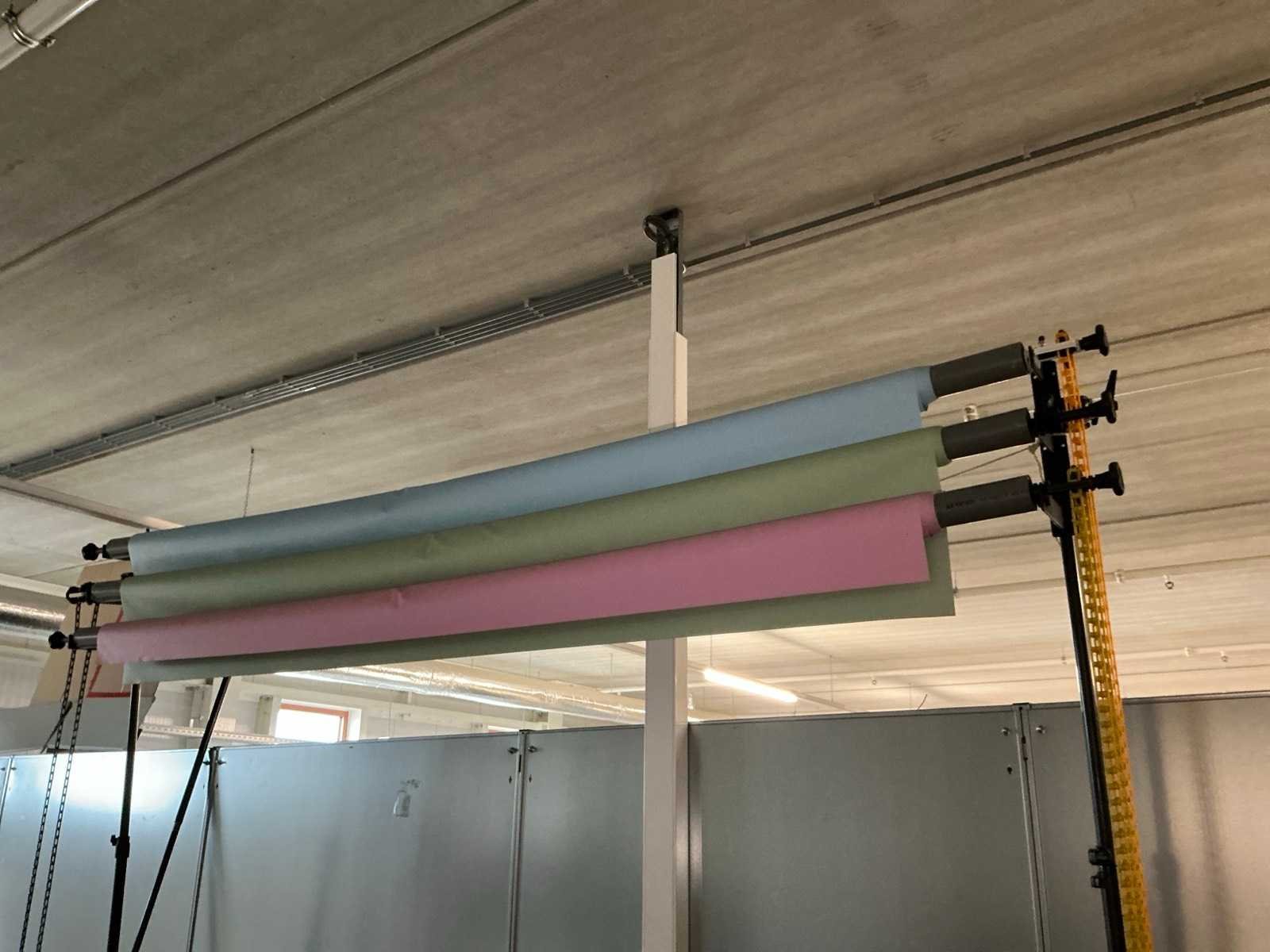 Voorzien van ophangbeugels met b-reel rolhouders. Inclusief diverse achtergrondrollen.