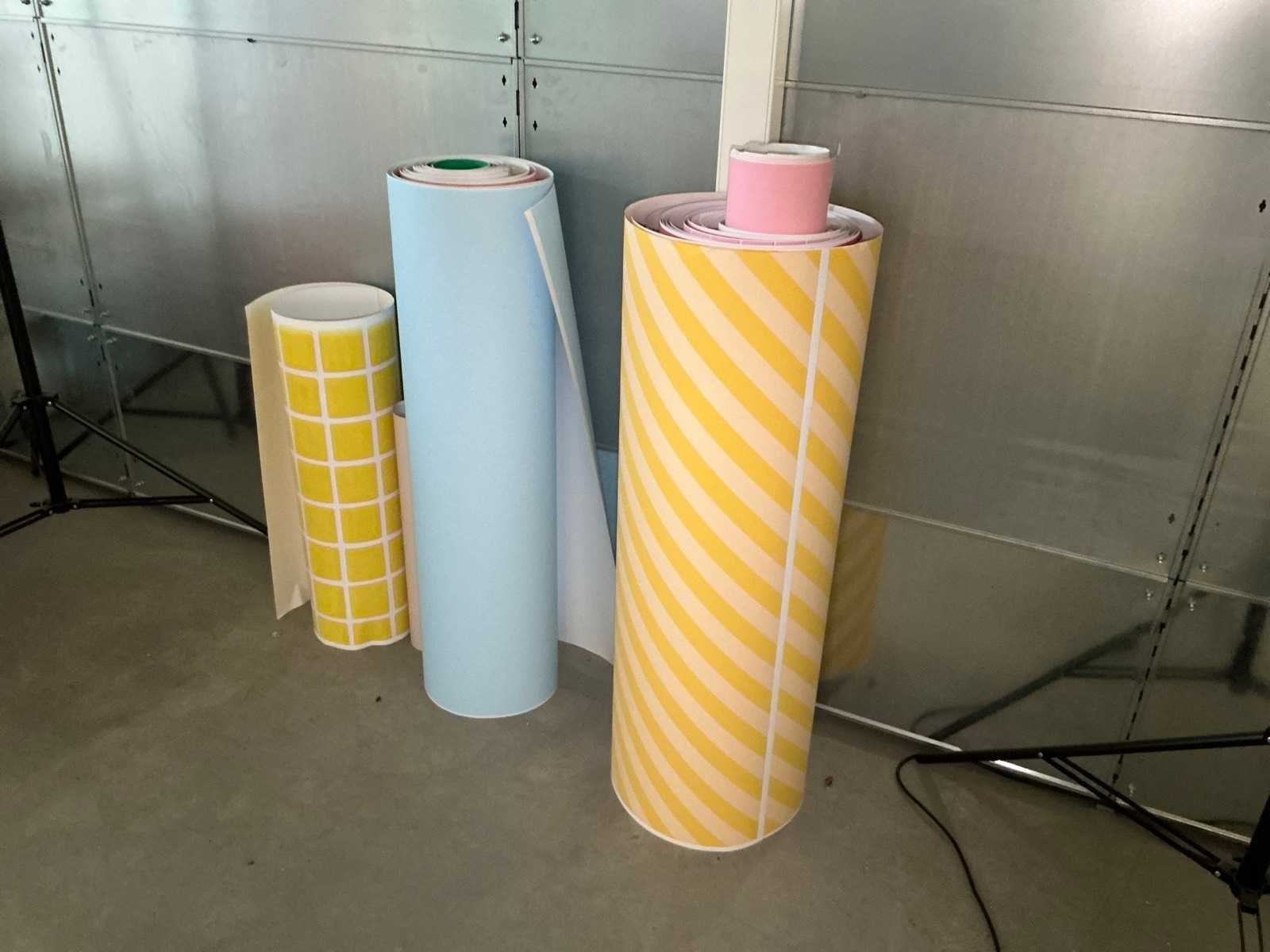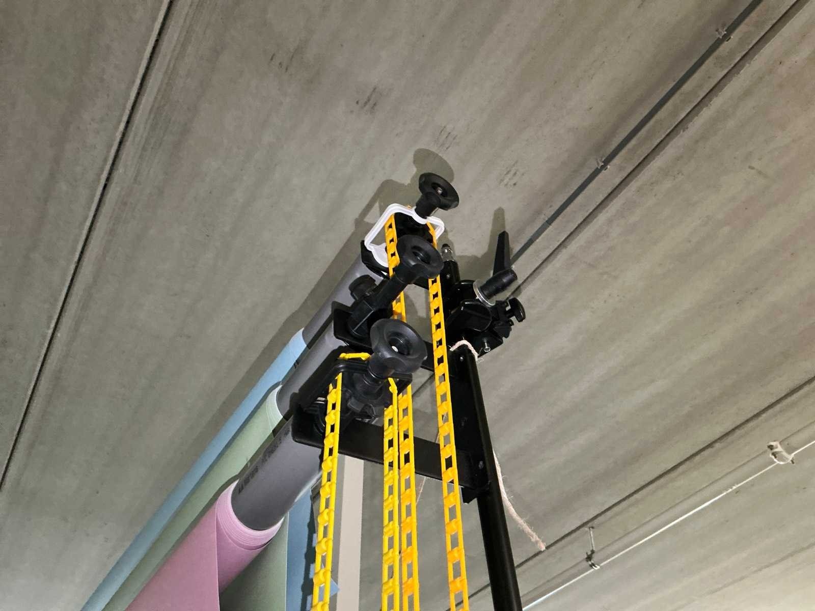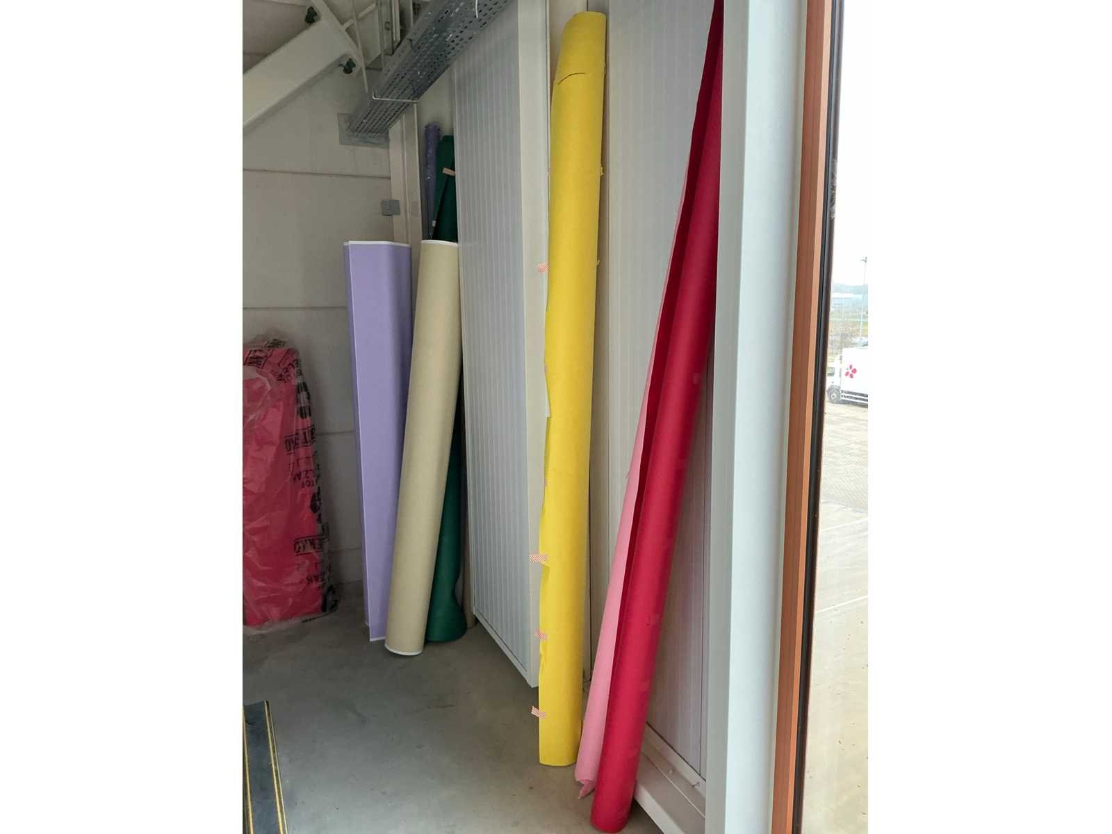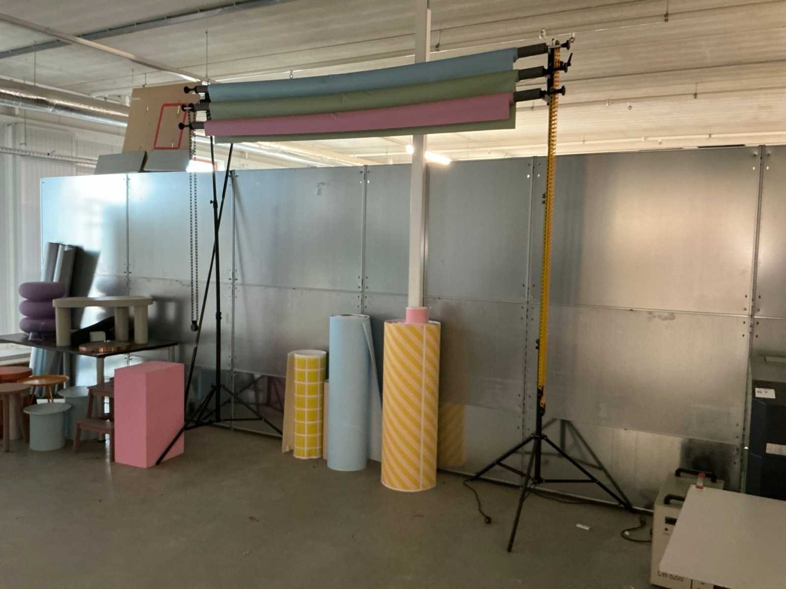 Voorzien van ophangbeugels met b-reel rolhouders. Inclusief diverse achtergrondrollen.