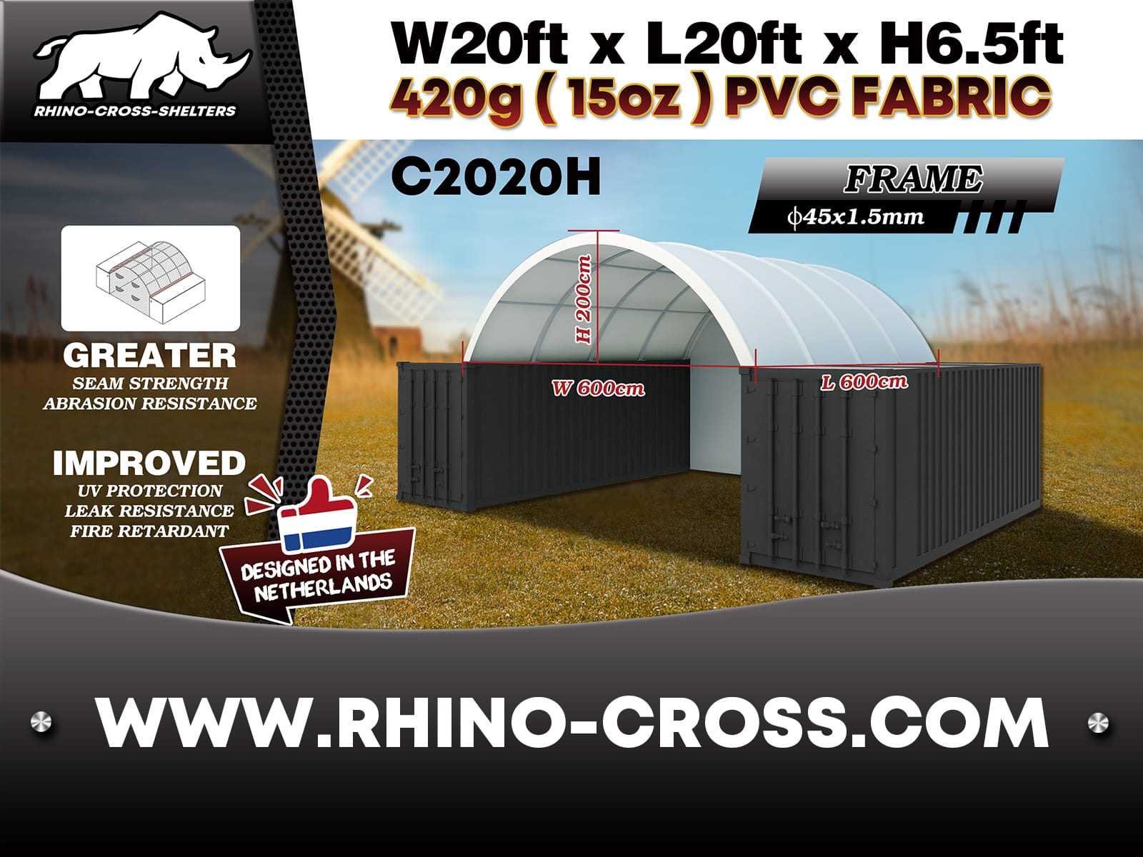 LET OP: Kavel is niet beschikbaar op de kijkdag. Voorzien van opslagtent / opslag shelter; singel trussen-/buizensysteem; gegalvaniseerd; beide uiteinden een deur; materiaal 420 gram PVC cover; kleur wit; inclusief montage handleiding; ongebruikt in metalen kist (transport afmetingen 193x75x37 cm) LET OP AFHALEN OP AFSPRAAK IN VERBAND MET HET GEWICHT VAN DE KAVEL ! Merk: Rhino-Cross-Shelter Type: C2020H - 6x6x2 m met eindzeil Bouwjaar: 2025 Eigen gewicht: 270kg Totale afmeting L: 6000mm Totale afmeting Breedte: 6000mm Totale afmeting Hoogte: 2000mm