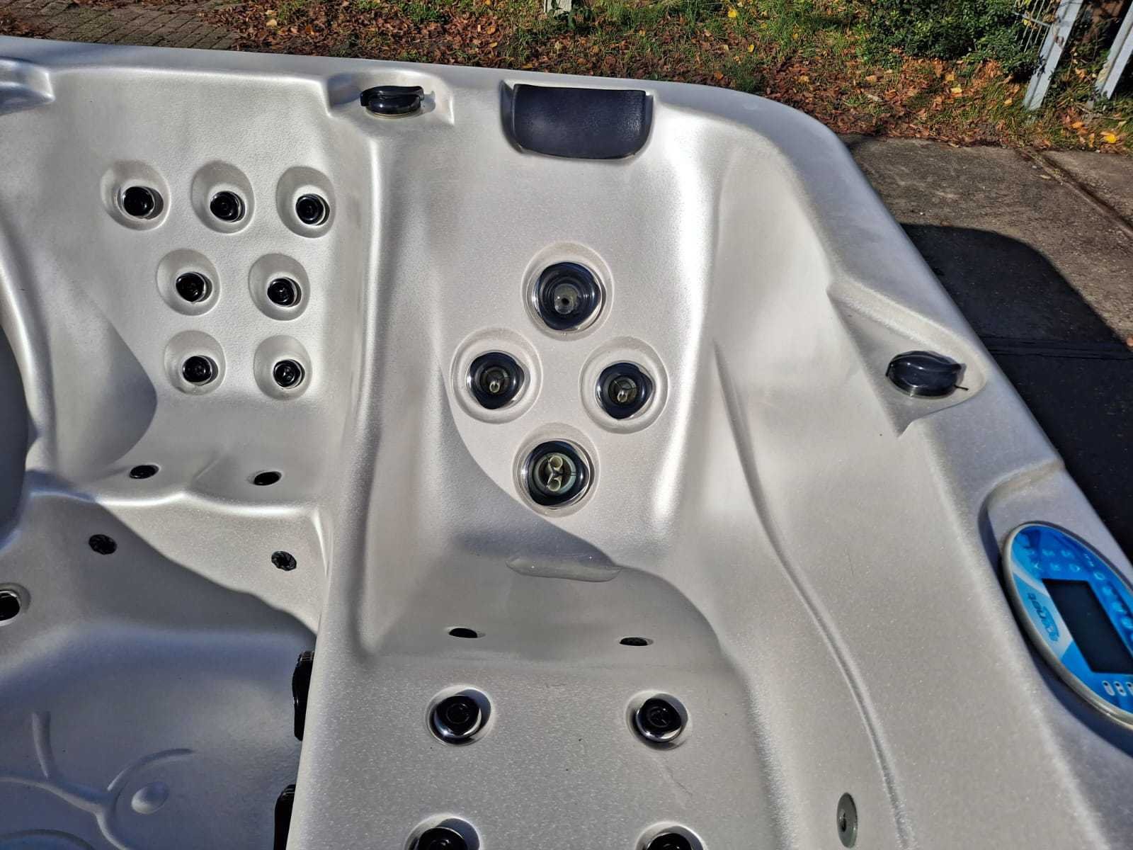 Voorzien van waterval; drinkbeker verlichting; wijnkoeler; 2 ligplaatsen; 3 zitplaatsen; automatisch filtersysteem; kunststof omkasting; verstelbare hoofdsteunen; Niet getest op functioneren (Marge, geen BTW) Merk: Spa net Model: 5 persoons Verlichting: Ja Jets: 46 Aantal personen: 5 Lengte: 220cm Breedte: 220cm Hoogte: 88cm