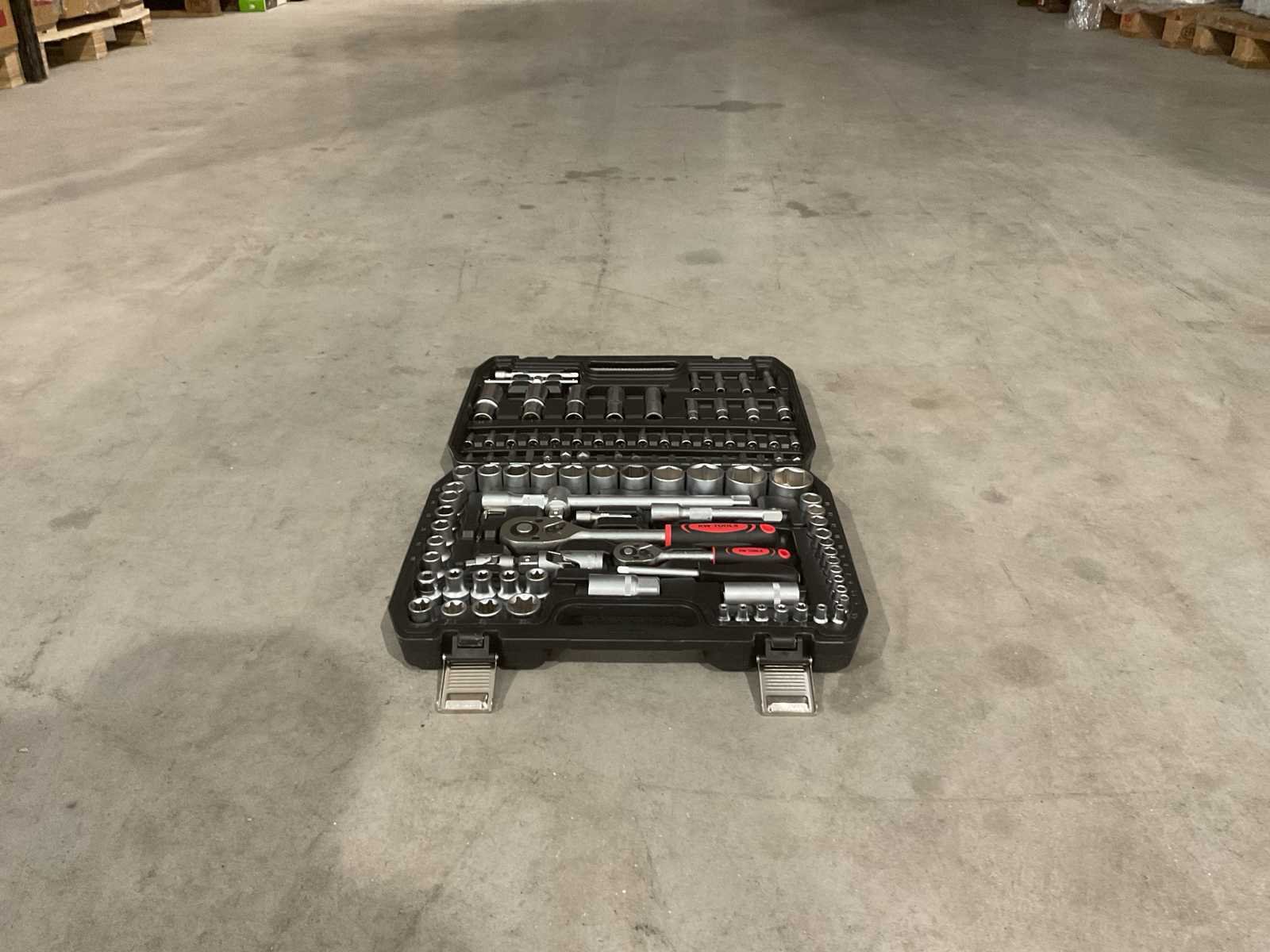Voorzien van 1/4" Doppen 4-4.5-5-5.5-6-7-8-9-10-11-12-13-14mm; 1/4" Lange doppen 6-7-8-9-10-11-12-13mm; 1/4" Torx doppen E4-E5-E6-E7-E8; 1/4" Inbus op dop 3-4-5-6mm; 1/4" Philips op dop PH.1-PH.2; 1/4" Pozidriv op dop PZ.1-PZ.2 1/4" Platte bit op dop 4-5.5-6.5mm; 1/4" Torx op dop T8-T10-T15-T20-T25-T27-T30; 1/4" Ratel 72 tanden Quick release; 1/4" Verlengstukken 50-100mm; 1/4" Kniegewricht; 1/4'' T Hendel; 1/4" Spinner; 1/2" Doppen 10-11-12-13-14-15-16-17-18-19-20-21-22-24-27-30-32mm; 1/2" Lange doppen 14-15-17-19-22mm; 1/2" Torx doppen E10-E11-E12-E14-E16-E18-E20-E24; 1/2" Inbus bitten 7-8-10-12-14mm; 1/2" Philips bitten PH.3-PH.4; 1/2" Pozidriv bitten PZ.3-PZ.4; 1/2" Platte bitten 8-10-12mm; 1/2" Torx bitten T40-T45-T50-T55-T60; 1/2" Bit houder; 1/2" Ratel 72 tanden Quick release; 1/2" Verlengstukken 125-250mm; 1/2" Bougiedoppen 16-21mm; 1/2" Kniegewricht; Inbus L-sleutels 1.5-2-2.5mm; Ongebruikt in doos (Transport Afmeting 380 x 80 x 290, Gewicht 6.52kg) Merk: KW Tools Met koffer: true Delig: 108 Type: 108Pcs Socket set Bouwjaar: 2025