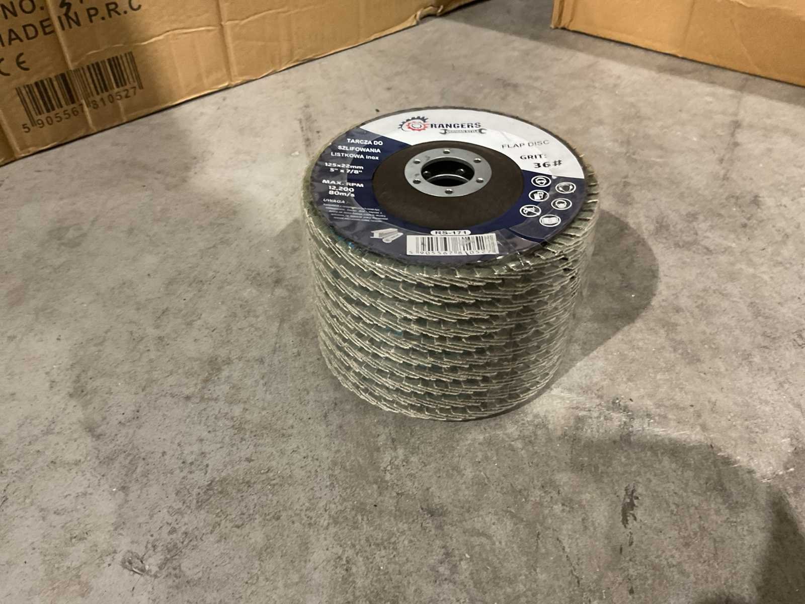 Voorzien van 1 doos met 2 dozen met elk 10 verpakkingen van 10 stuks; ongebruikt in doos Merk: Rangers Model: Grit 36 Type: RS-171 Schijfdiameter: 125mm Gewicht: 15kg Lengte: 70cm Breedte: 30cm Hoogte: 25cm