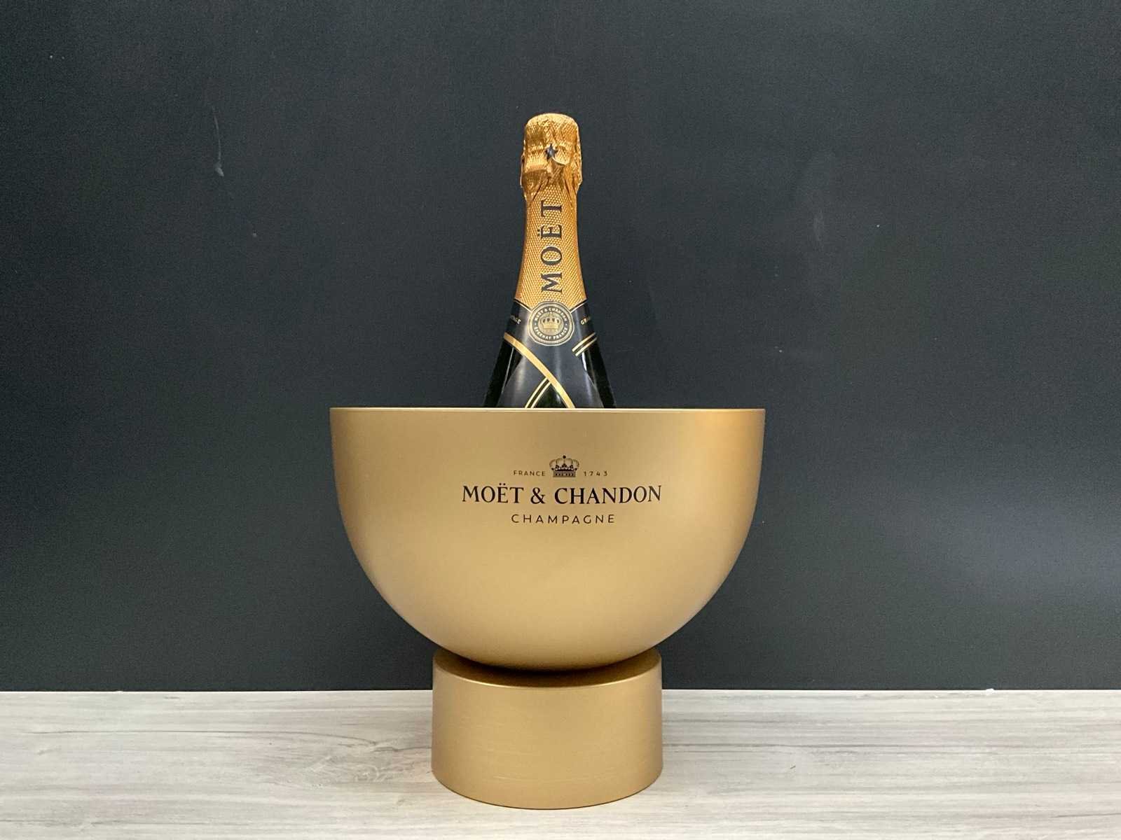 Met champagne cooler Merk: Moët & Chandon Wijnhuis: Moët & Chandon Jaargang: 2015 Land: Frankrijk Alcohol percentage: 12.5% Inhoud: 75cl