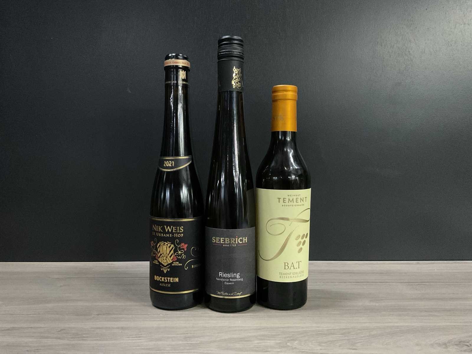 Weignut Tement Beerenauslese (Oostenrijk); Seebrich Riesling (Duitsland); Nik Weis Bockstein (Duitsland) Merk: Diverse Alcohol percentage: 13.5 Inhoud: 37.5