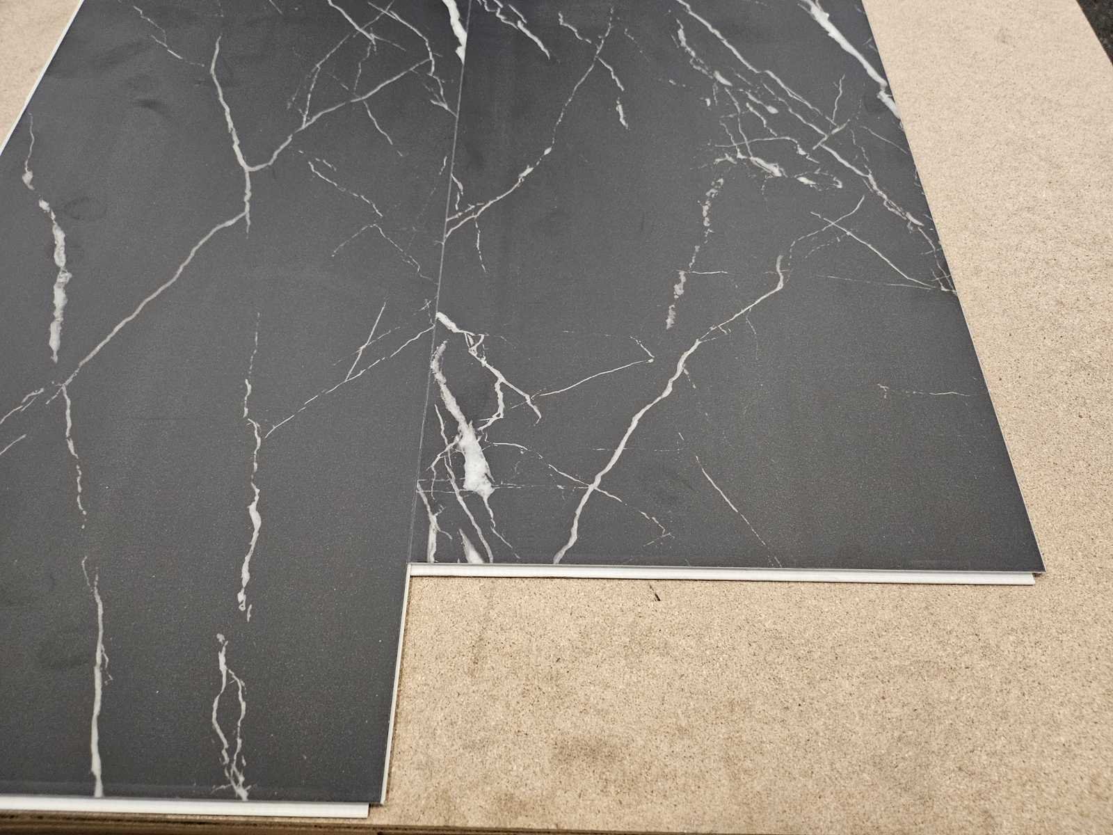 PVC click vloer, click tegel, water bestendig, vorstbestendig, ideaal voor vloerverwarming, kras en slijtvast, anti slip, 28 pakken a 2,05 m2 Merk: Airial flooring Product type: PVC Oppervlakte: 57m² Geschikt voor vloerverwarming: Ja V-groef: Nee Afwerking: Voelbaar structuur, anti slip Aantal m² per verpakking: 2.05m² Kleur: Marmor dark 808 Gewicht: 475kg Lengte: 610mm Breedte: 305mm Materiaal: PVC/SPC
