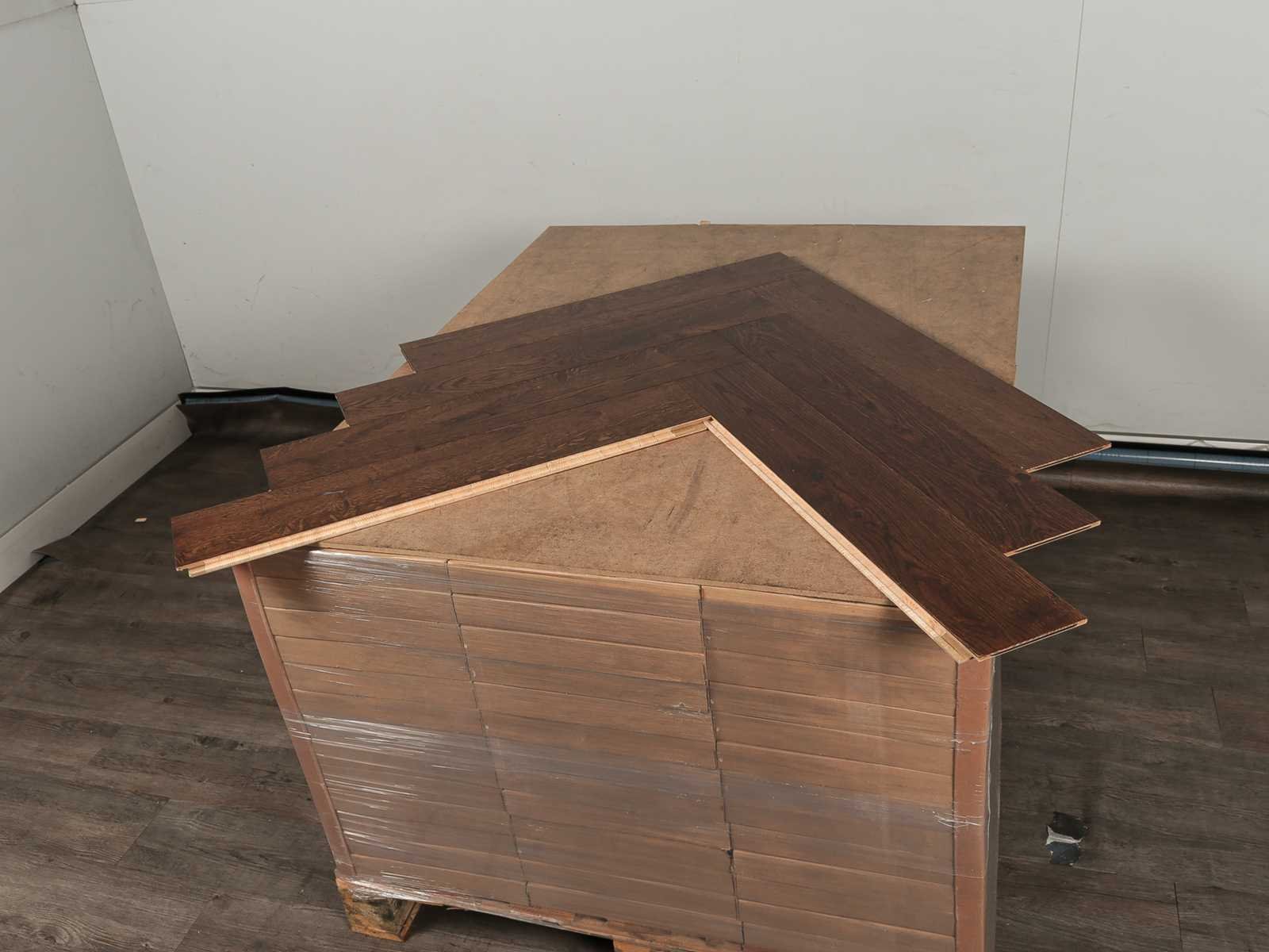 Gemakkelijk te leggen wegens clicksysteem, geschikt voor alle soorten vloer en koelverwarmingen, kwaliteits parketvloer, vloer is van hoogwaardig Europees eiken hout, kant en klaar behandeld, dikte 14 mm, toplaag 3 mm, 31 pakken a 0,65 m2 Merk: Ambiance Product type: Parket Oppervlakte: 20m² Geschikt voor vloerverwarming: Ja V-groef: Ja Afwerking: Mat gelakt, geborsteld, met v-groef Aantal m² per verpakking: 0.65m² Kleur: Brown smoked effect 868 Gewicht: 155kg Lengte: 750mm Breedte: 130mm Materiaal: Eiken multiplank
