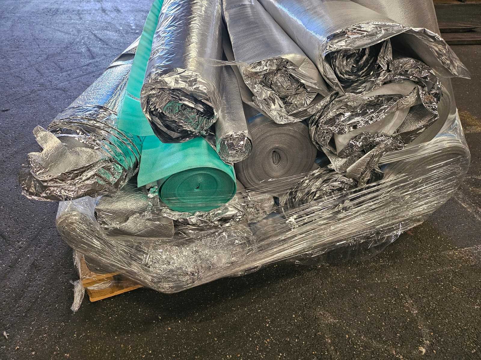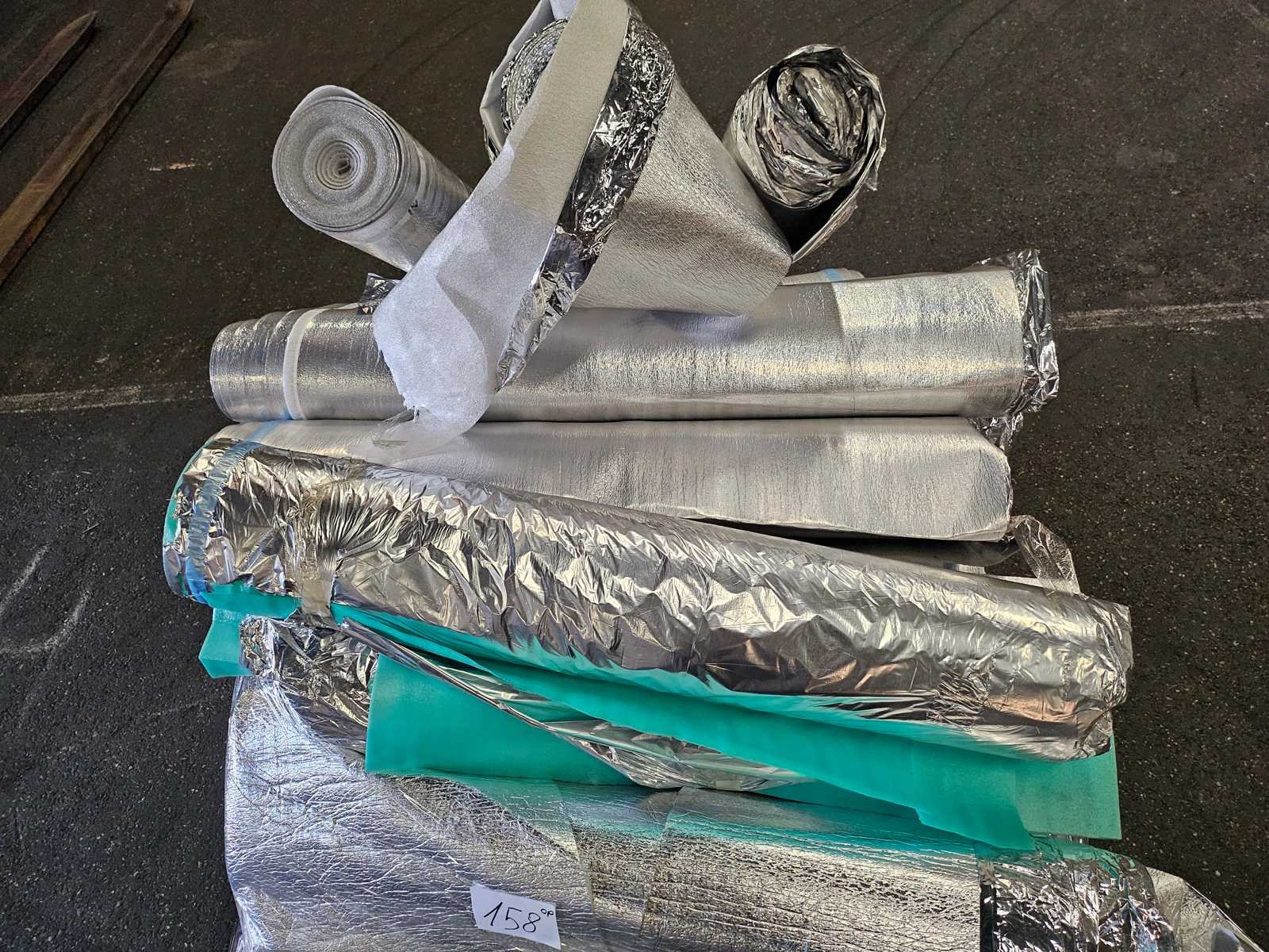 Partij zilver folie ondervloer, c.a. 150 m2, restpartij ondervloeren, bevat diverse lengtes, geluid recuderend, dampdicht, met overlap 100 mm, 2 mm dikte, licht egaliserend, geschikt voor laminaat en parket, 1 pallet a 150 m2 Merk: Partij Product type: Ondervloer Oppervlakte: 150m² Aantal m² per verpakking: 15m² Kleur: Silver underlayment