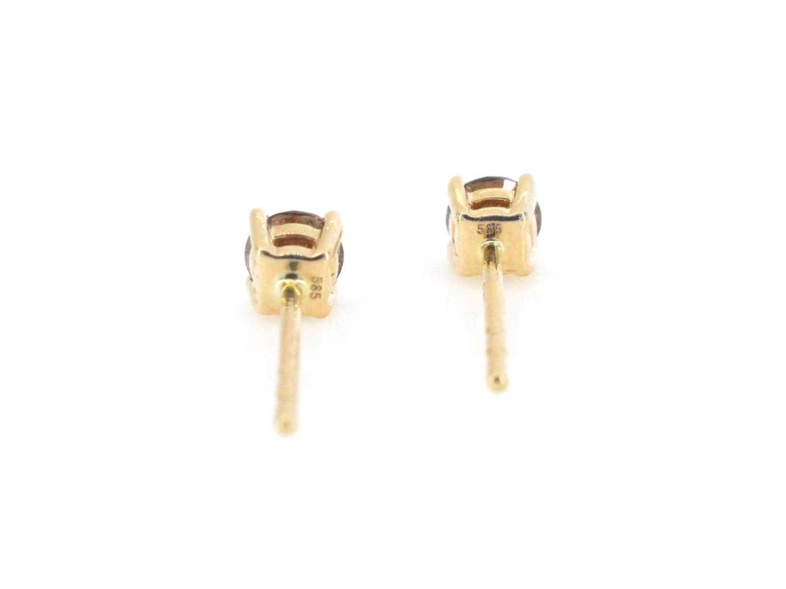 Samenvatting van gegevens Gouden solitair oorbellen met champagne diamanten Diamant: Natuurlijk; Aantal: 2 stuks; Slijpvorm: Briljant geslepen; Gewicht (carat): 0.56 carat; Kleur: champagne; Zuiverheid: VS/SI; Slijpkwaliteit: Zeer mooi; Juweel: Oorbellen; Gewicht: 0.8 gram; Materiaal: 14k goud (585); Conditie: Nieuw; Verpakking: Luxe sieradendoos; Toelichting: De kwaliteit is overgenomen van het rapport behorend bij item. De waardebepaling is een beoordeling van een gecertificeerde diamantair, gebaseerd op consumentenprijzen.; Consumentenprijs: € 2.118,- Within 14 days Materiaal: Goud Voornaamste diamant: Natuurlijk Kleur diamant: champagne Gewicht diamant: 0.56ct Slijpvorm diamant: Briljant geslepen Slijpkwaliteit diamant: Zeer mooi Zuiverheidsgraad diamant: VS/SI Totaal gewicht: 0.8g Keurmerk: 585