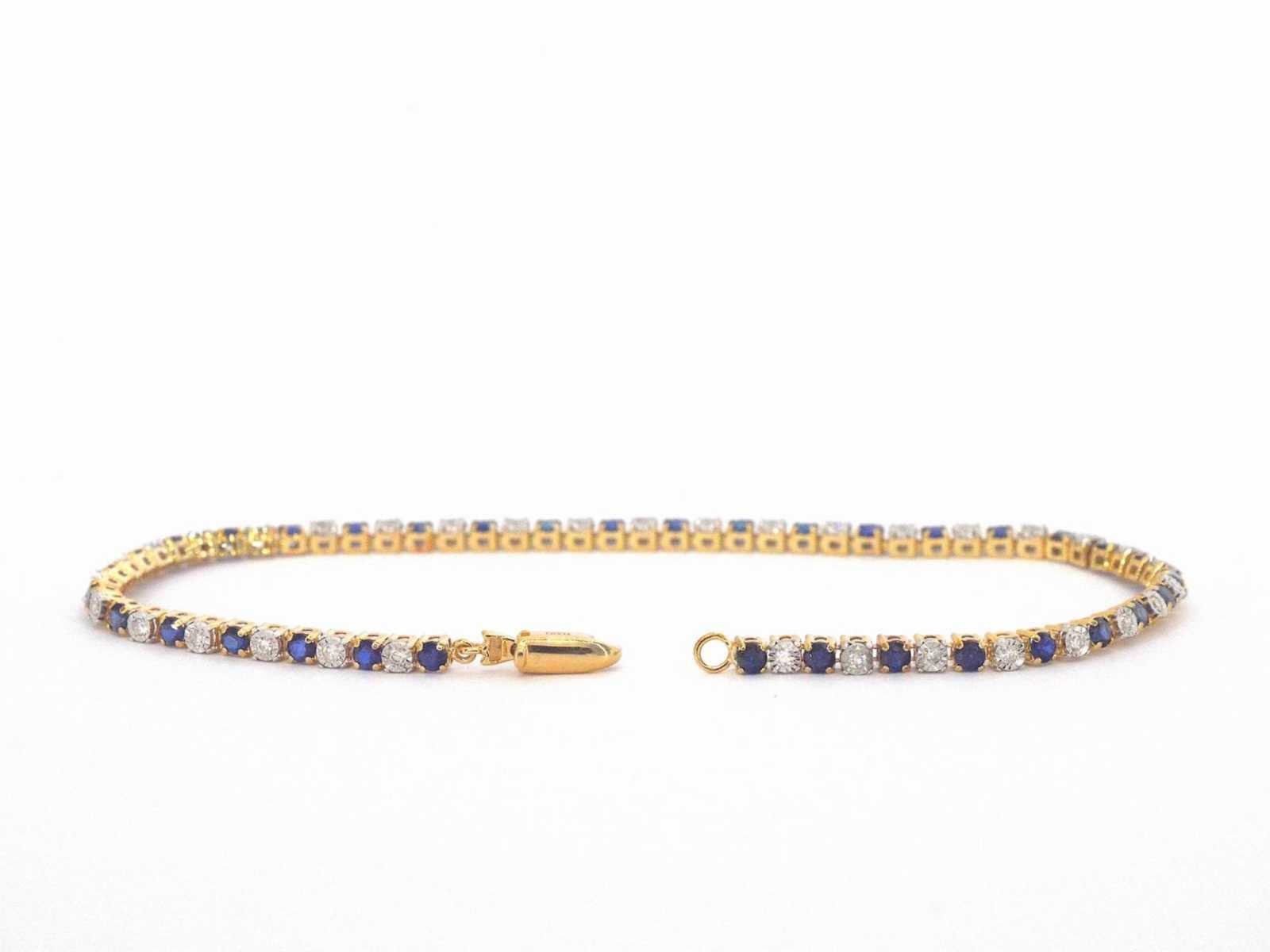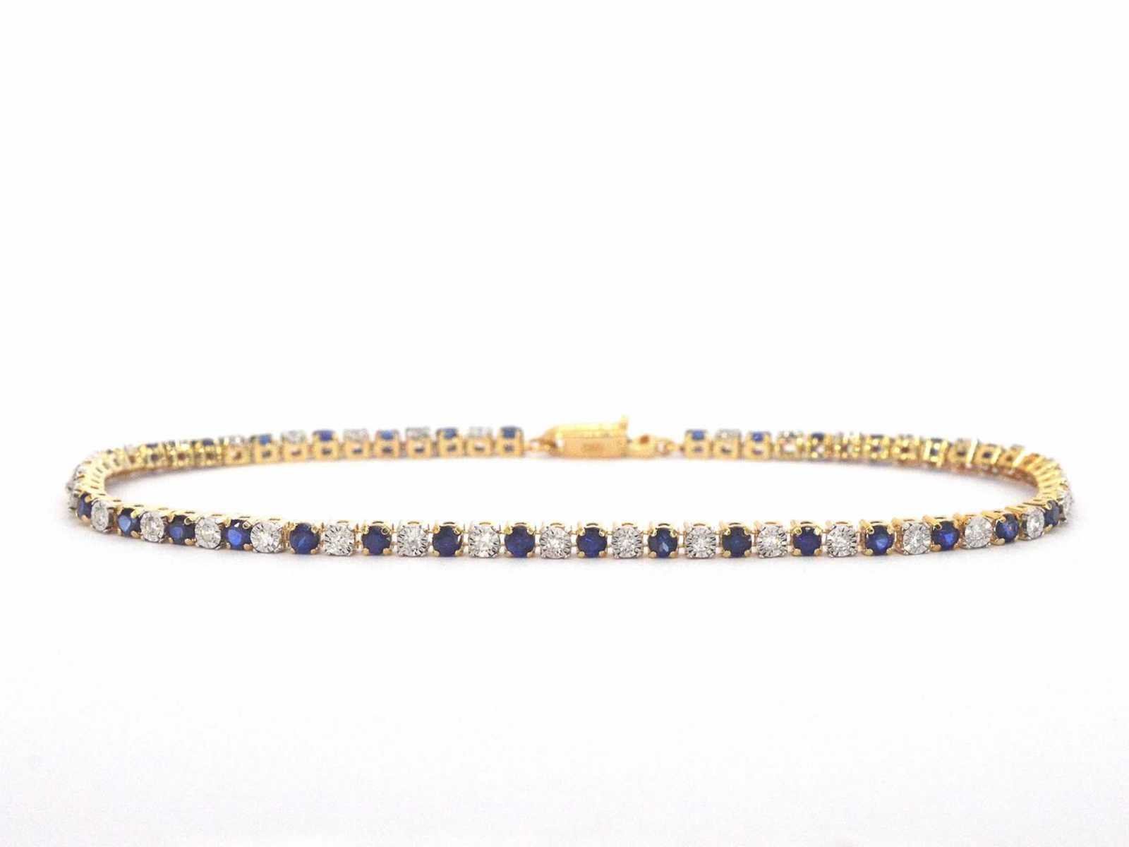 Samenvatting van gegevens Gouden tennis armband met diamanten en saffieren Diamant: Natuurlijk; Aantal: 34 stuks; Slijpvorm: Rond geslepen; Gewicht (carat): 0.25 carat; Kleur: F-G; Zuiverheid: VS-SI; Edelsteen: Saffier; Slijpvorm: Rond geslepen; Gewicht (carat): 2.50 carat; Kleur: Blauw; Zuiverheid: Met natuurlijke insluitsels; Juweel: Armband; Gewicht: 3 gram; Afmetingen/lengte: 18 cm; Materiaal: 14k goud (585); Conditie: Nieuw; Verpakking: Luxe sieradendoos; Toelichting: De kwaliteit is overgenomen van het rapport behorend bij item. De waardebepaling is een beoordeling van een gecertificeerde diamantair, gebaseerd op consumentenprijzen.; Consumentenprijs: € 2.468,- Within 14 days Materiaal: Goud Voornaamste diamant: Natuurlijk Kleur diamant: F-G Gewicht diamant: 0.25ct Slijpvorm diamant: Rond geslepen Zuiverheidsgraad diamant: VS-SI Edelsteen: Saffier Kleur edelsteen: Blauw Slijpvorm edelsteen: Rond geslepen Zuiverheidsgraad edelsteen: Met natuurlijke insluitsels Totaal gewicht: 3g Keurmerk: 585
