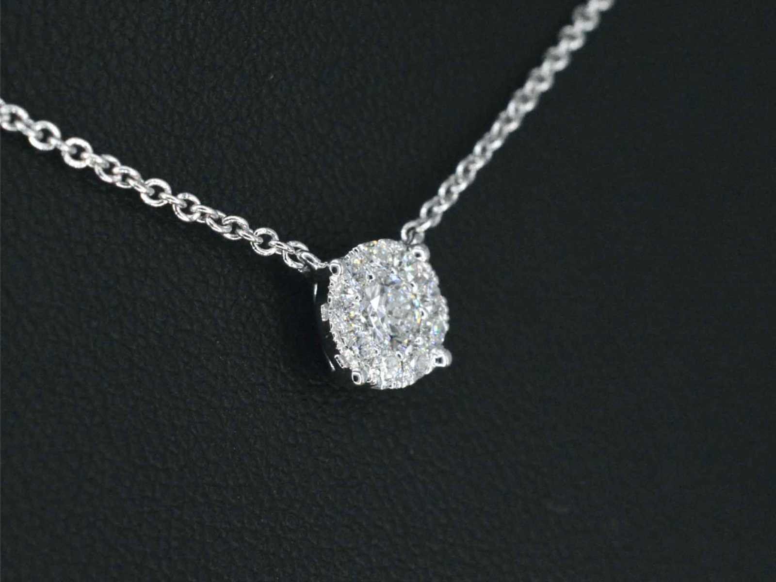 Samenvatting van gegevens Witgouden ketting en hanger bezet met briljant geslepen diamant Diamant: Natuurlijk; Slijpvorm: Briljant geslepen; Gewicht (carat): 0.40 carat; Kleur: F-G; Zuiverheid: VS; Slijpkwaliteit: Zeer mooi; Juweel: Hanger (incl. Ketting); Gewicht: 3.3 gram; Materiaal: 18K goud (750); Conditie: Nieuw; Verpakking: Luxe sieradendoos; Toelichting: De kwaliteit is overgenomen van het rapport behorend bij item. De waardebepaling is een beoordeling van een gecertificeerde diamantair, gebaseerd op consumentenprijzen.; Consumentenprijs: € 5.005,- Within 14 days Materiaal: Goud Voornaamste diamant: Natuurlijk Kleur diamant: F-G Gewicht diamant: 0.40ct Slijpvorm diamant: Briljant geslepen Slijpkwaliteit diamant: Zeer mooi Zuiverheidsgraad diamant: VS Totaal gewicht: 3.3g Keurmerk: 750