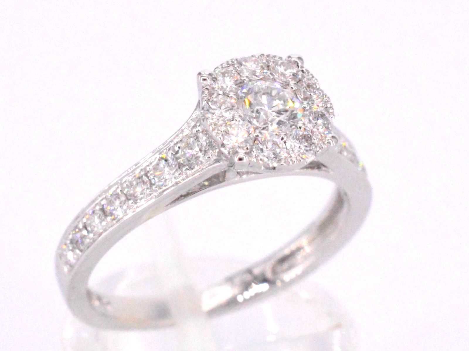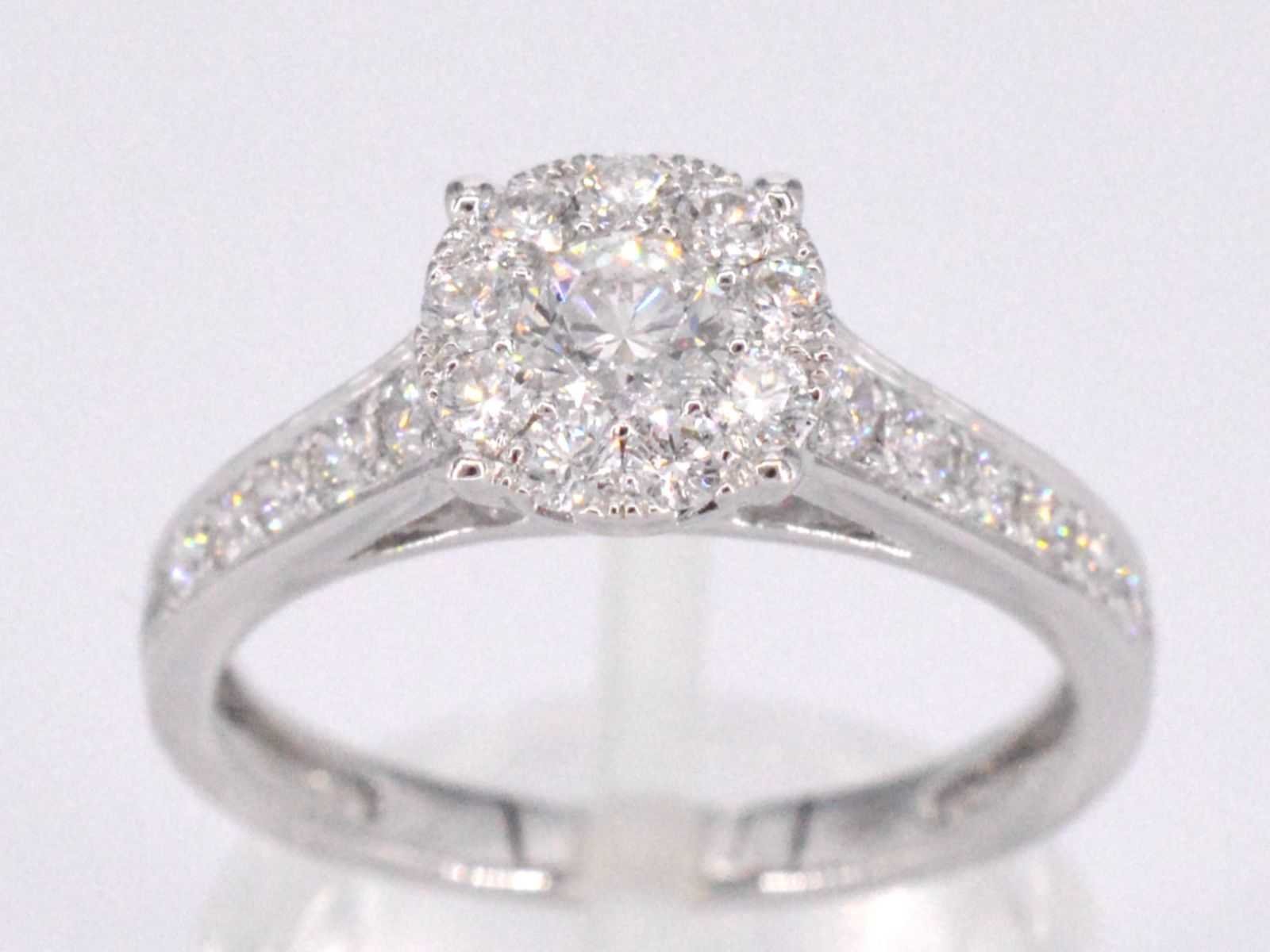 Samenvatting van gegevens Witgouden entourage ring met briljant geslepen diamanten 1.00 carat Diamant: Natuurlijk; Slijpvorm: Briljant geslepen; Gewicht (carat): 1.00 carat; Kleur: F-G; Zuiverheid: VS; Slijpkwaliteit: Zeer mooi; Juweel: Ring; Gewicht: 3.1 gram; Ringmaat (op maat gemaakt*): 53 (17 mm); Materiaal: 18K goud (750); Conditie: Nieuw; Verpakking: Luxe sieradendoos; Toelichting: De kwaliteit is overgenomen van het rapport behorend bij item. De waardebepaling is een beoordeling van een gecertificeerde diamantair, gebaseerd op consumentenprijzen.; Consumentenprijs: € 6.930,- Within 14 days Materiaal: Goud Voornaamste diamant: Natuurlijk Gewicht diamant: 1.00ct Totaal gewicht: 3.1g Keurmerk: 750 Kleur diamant: F-G Slijpvorm diamant: Briljant geslepen Slijpkwaliteit diamant: Zeer mooi Zuiverheidsgraad diamant: VS