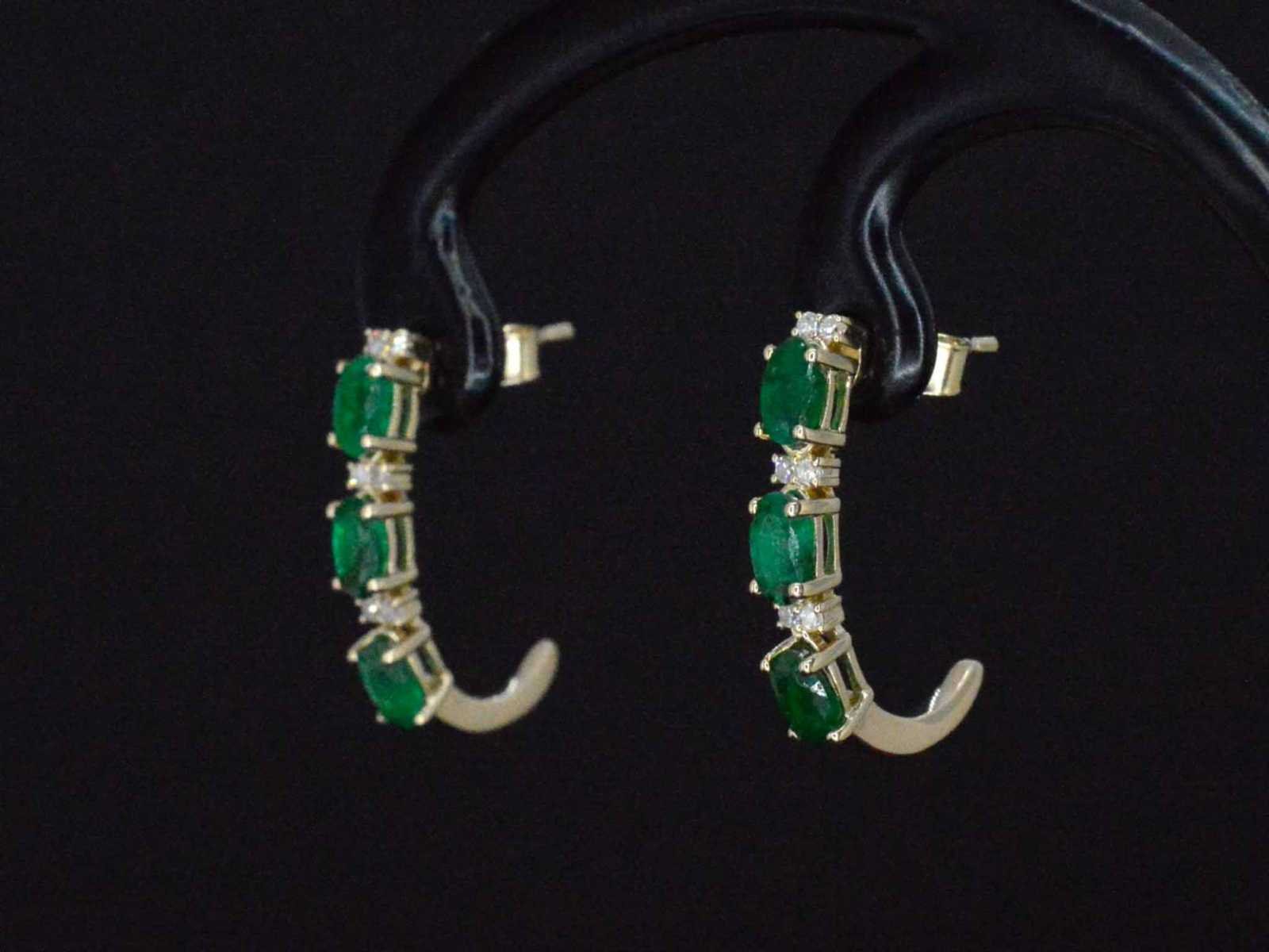 Samenvatting van gegevens Gouden oorbellen met diamanten en smaragd Diamant: Natuurlijk; Slijpvorm: Rond geslepen; Gewicht (carat): 0.12 carat; Kleur: F-G; Zuiverheid: SI; Slijpkwaliteit: Zeer mooi; Edelsteen: smaragd; Slijpvorm: Ovaal; Gewicht (carat): 2.00 carat; Kleur: groen; Juweel: Oorbellen; Gewicht: 2 gram; Materiaal: 14 karaat (585); Conditie: Nieuw; Verpakking: Luxe sieradendoos; Toelichting: De kwaliteit is overgenomen van het rapport behorend bij item. De waardebepaling is een beoordeling van een gecertificeerde diamantair, gebaseerd op consumentenprijzen.; Consumentenprijs: € 1.943,- Within 14 days Voornaamste diamant: Natuurlijk Kleur diamant: F-G Gewicht diamant: 0.12ct Slijpvorm diamant: Rond geslepen Slijpkwaliteit diamant: Zeer mooi Zuiverheidsgraad diamant: SI Edelsteen: smaragd Kleur edelsteen: groen Slijpvorm edelsteen: Ovaal Totaal gewicht: 2g Keurmerk: 585