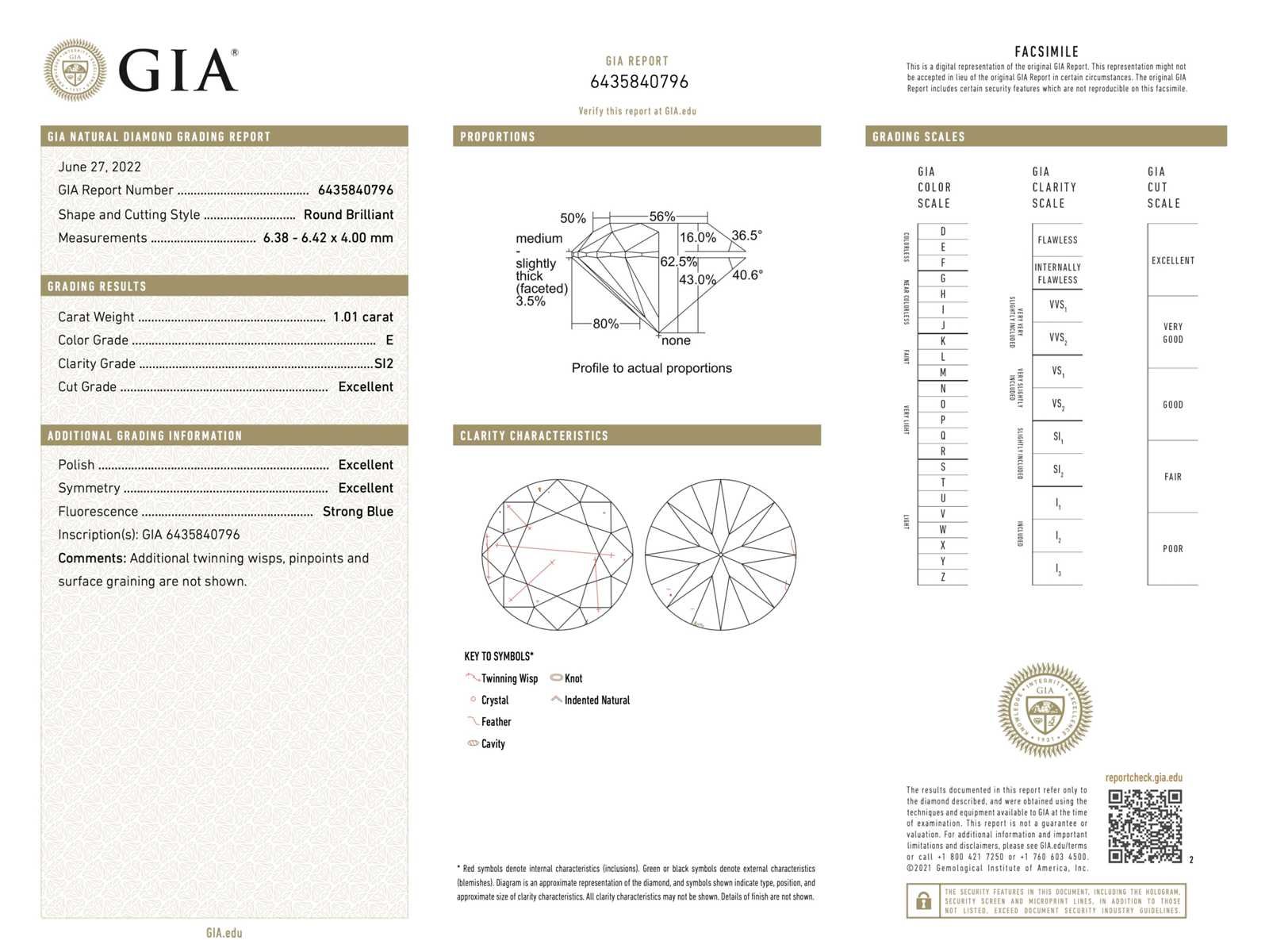 Samenvatting van gegevens Diamant - 1.01 carat briljant geslepen diamant met een GIA certificaat (gecertificeerd) Diamant: Natuurlijk; Aantal: 1 stuk; Slijpvorm: Briljant geslepen; Gewicht (carat): 1.01 carat; Kleur: E; Zuiverheid: SI2; Slijpkwaliteit: Excellent; Certificaat: GIA; Certificaat nummer: 6435840796; Conditie: Nieuw; Verpakking: Edelsteendoos; Toelichting: De kwaliteit is overgenomen van het rapport behorend bij item. De waardebepaling is een beoordeling van een gecertificeerde diamantair, gebaseerd op consumentenprijzen.; Consumentenprijs: € 11.600,- Within 14 days Voornaamste diamant: Natuurlijk Kleur diamant: E Gewicht diamant: 1.01ct Slijpvorm diamant: Briljant geslepen Slijpkwaliteit diamant: Excellent Zuiverheidsgraad diamant: SI2 Certificaat: GIA