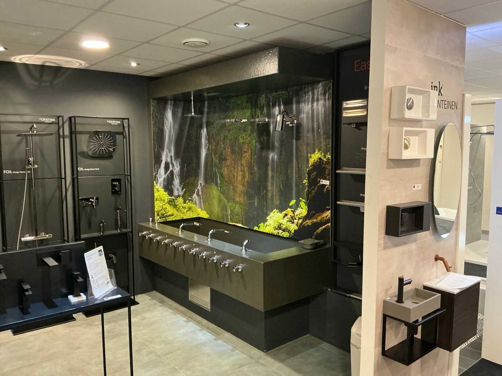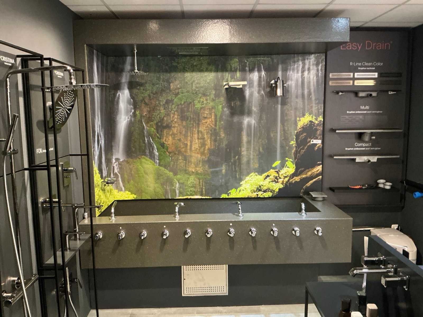 Douche presentatiewand met wasbak