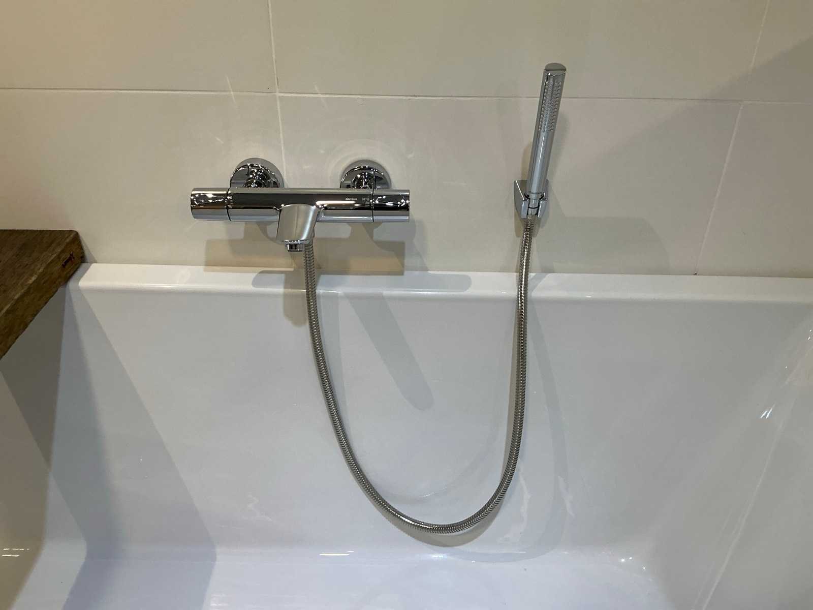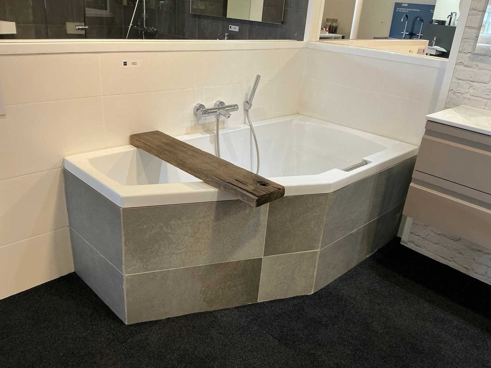 Voorzien van Looox badplank, opbouwset Damixa Silhouet badthermostaatkraan met handdouche zonder inbouwgedeeltes. Merk: Riho Model: Geta Product type: 170x90x50cm