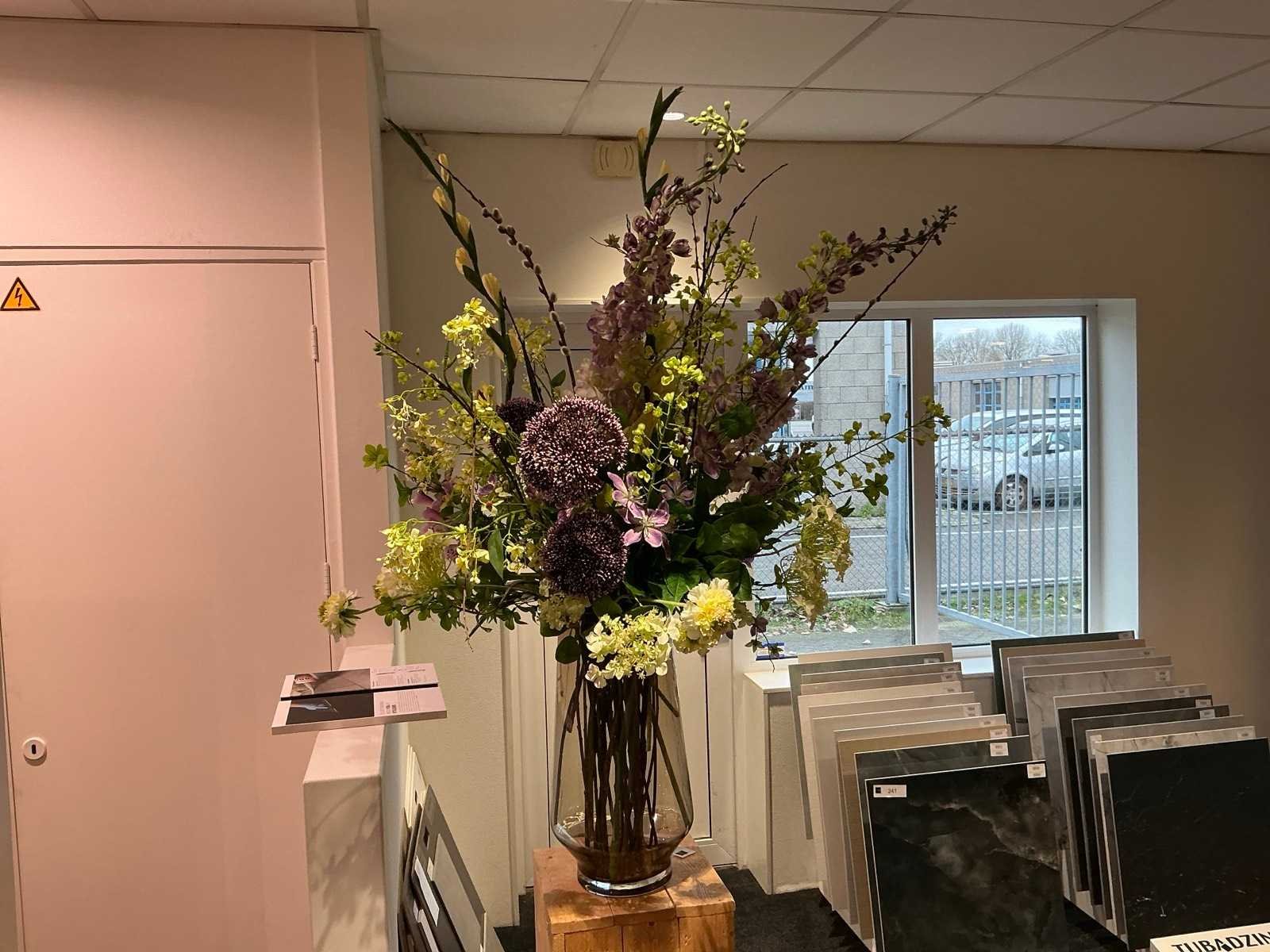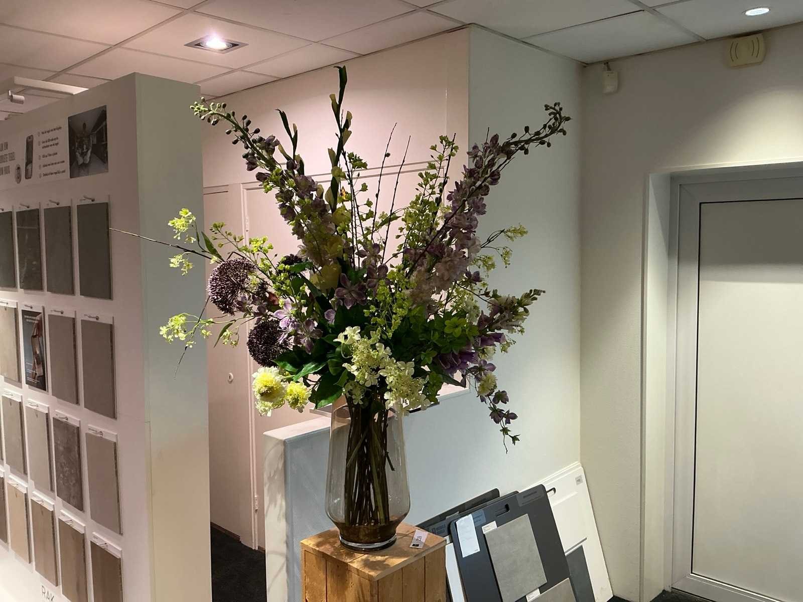 Ø30cm pot op en met houten pilaar 29x29x100cm Lengte: 90cm Breedte: 90cm Hoogte: 140cm