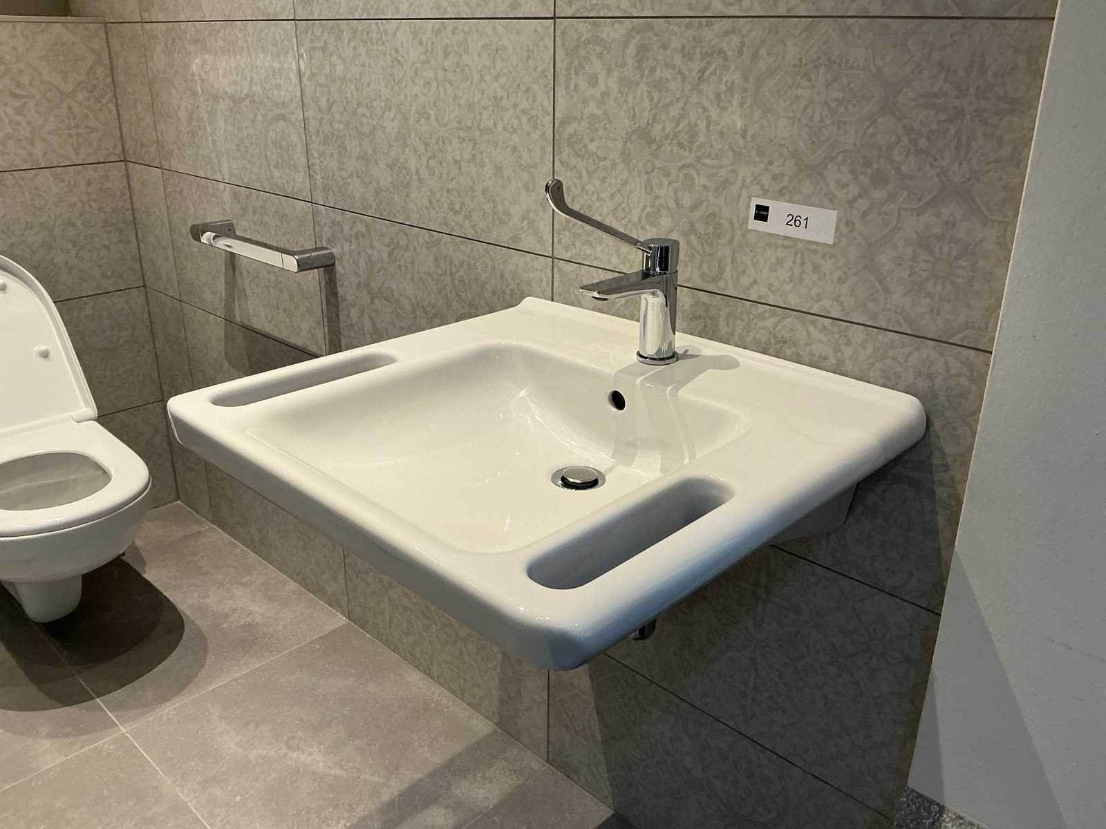 Voorzien van geïntegreerde handgrepen. Christina wastafelkraan Clinic Chroom. Merk: Villeroy & Boch Model: Vicare Lengte: 60cm Breedte: 55cm
