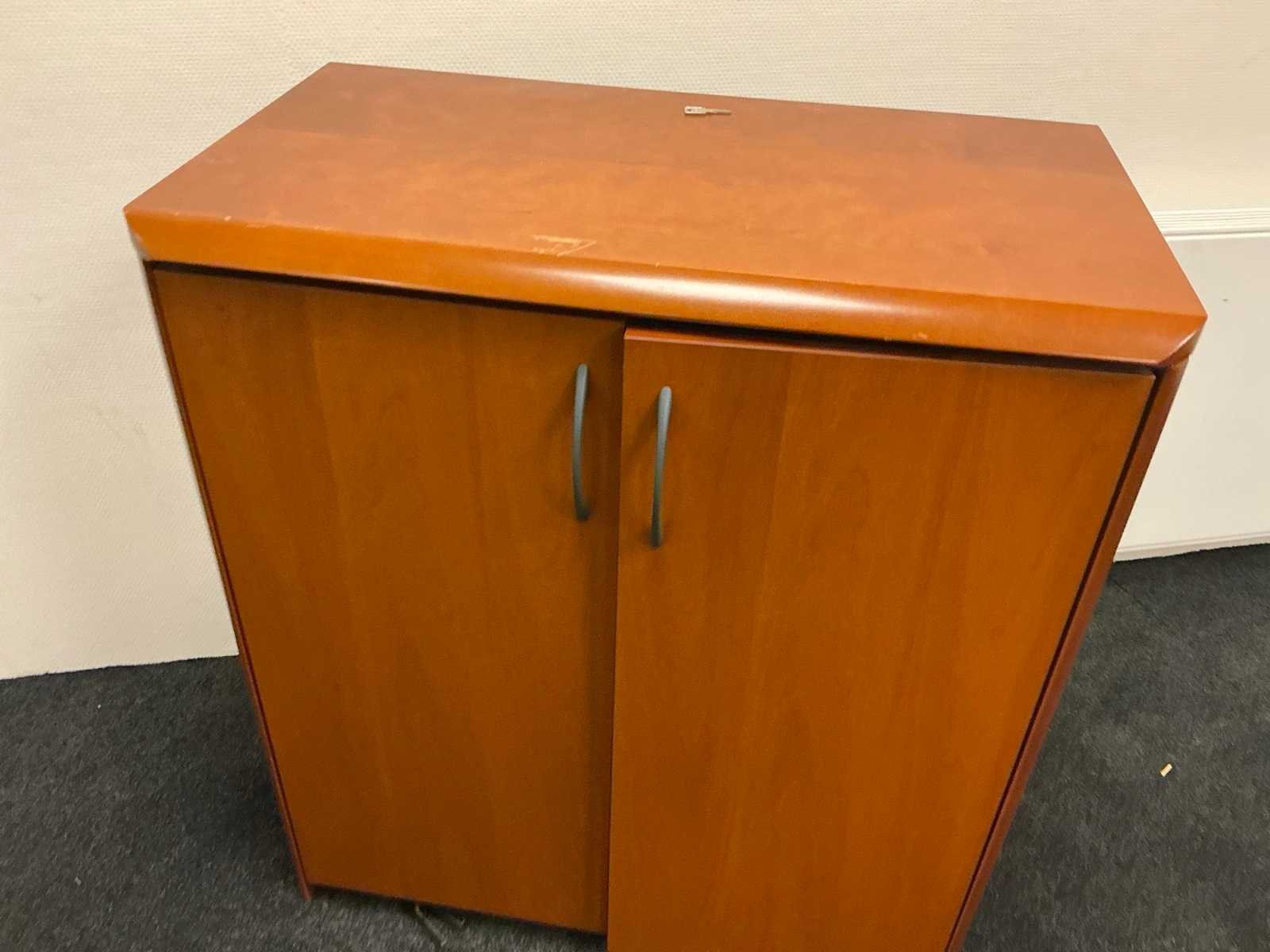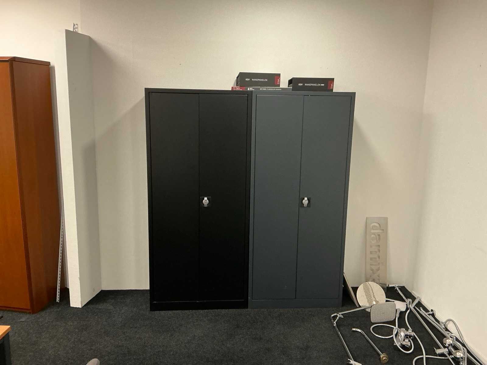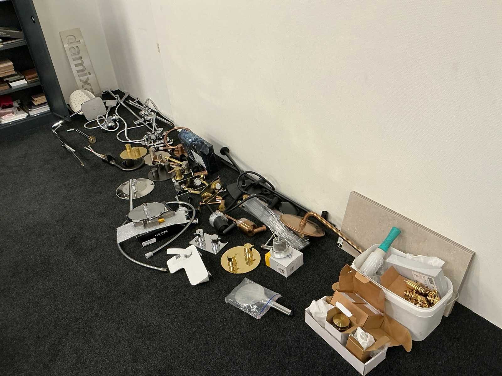 Bestaande uit vergaderset met 9 stoelen, 2 dossierkasten met inhoud, houden wandmeubel met inhoud, wandkastje en diverse sanitair materialen waaronder dummy kranen. Dit kavel dient bezemschoon opgeleverd te worden.