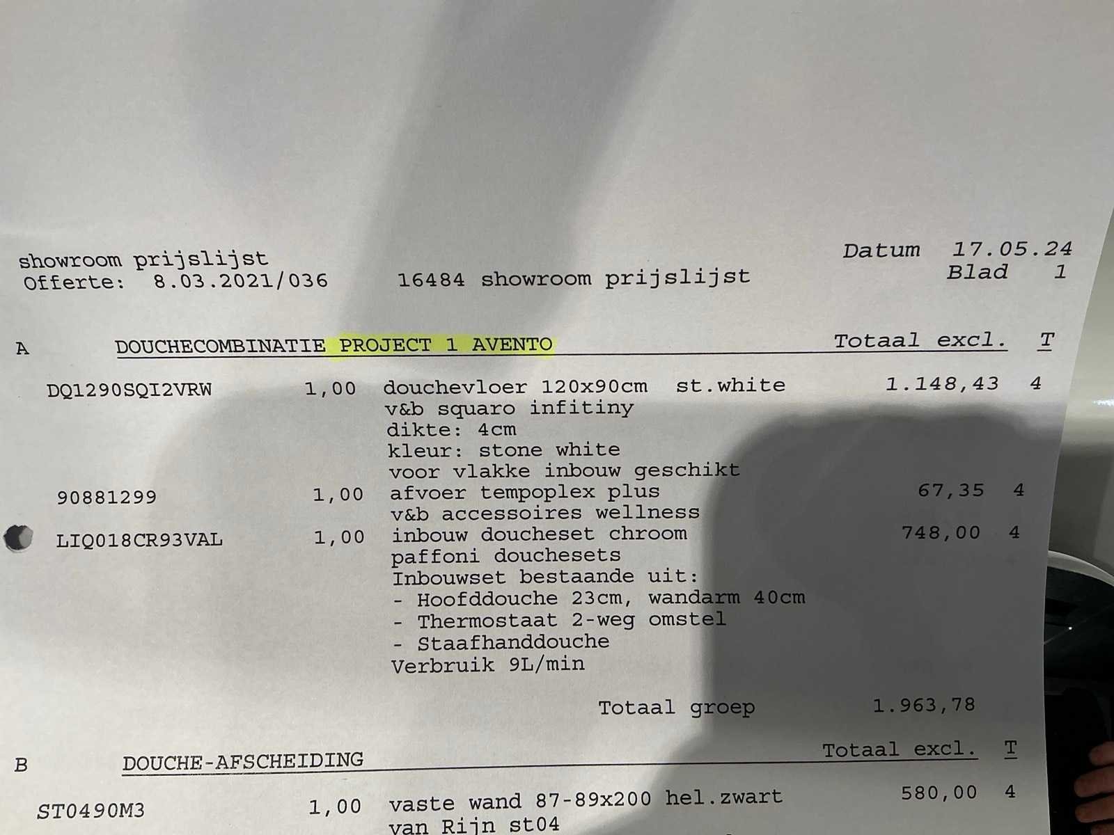 Douchebak 120x90cm, Paffoni Doucheset, zonder inbouwdeel, Van Rijn inloopdouche hel zwart 89x200cm. Merk: Villeroy & Boch Model: Squaro Infinity
