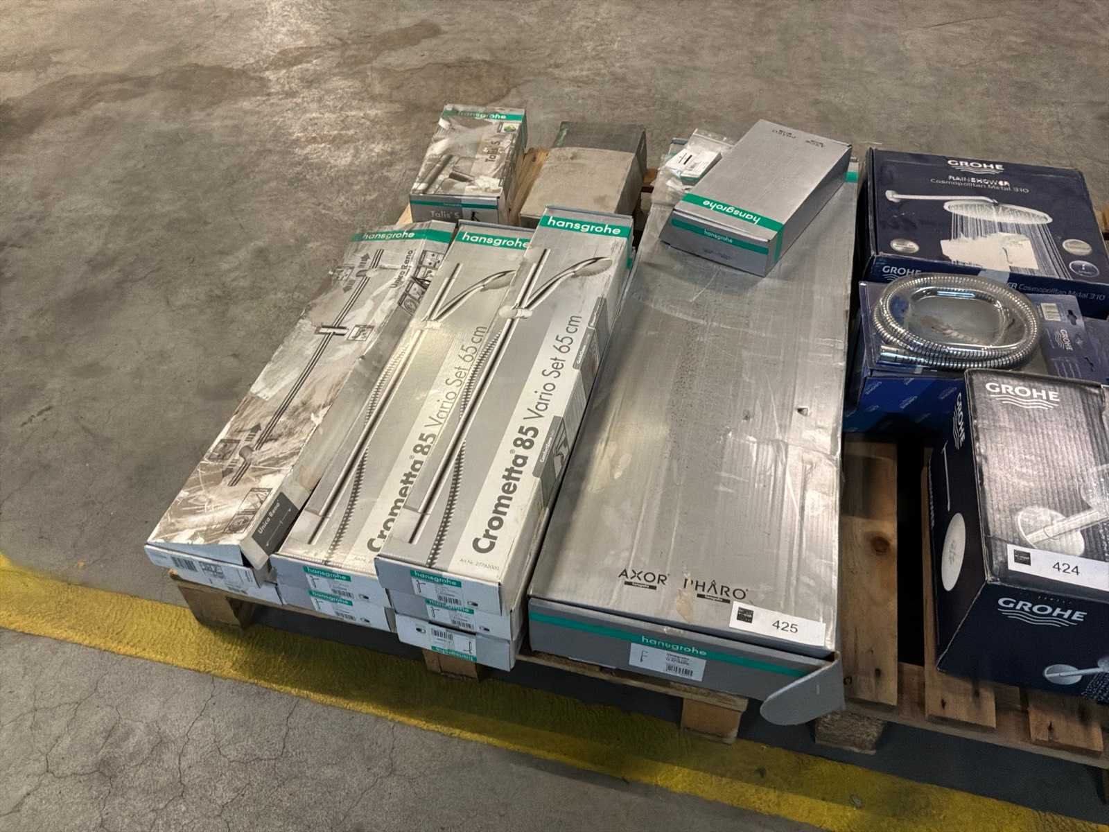 5x Hansgrohe Crometta 85 vario. 1x Hansgrohe Unica’s puro 650mm. 1x Hansgrohe Unica Reno. 1x Hansgrohe Croma 100. 1x Hansgrohe 0,5 Talsiman 1x Hansgrohe Pura vida. 1x Hansgrohe Tali’s S. En divers klein materiaal Ongebruikt in doos.