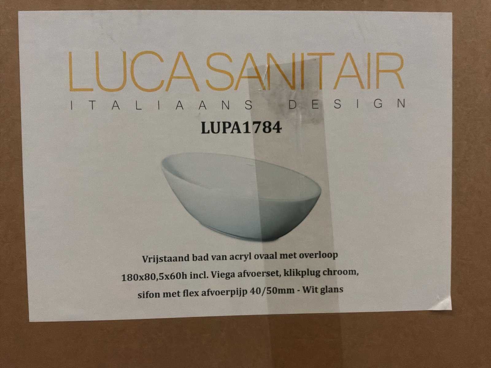 Ongebruikt in doos. Inclusief viega afvoerset, klik plug chroom, symfonie met flex afvoerpijp. Merk: Luca Sanitair Model: Lupa 1784 Product type: 189x80,5x60cm Kleur: Glans wit Lengte: 180cm Breedte: 805cm Hoogte: 60cm Materiaal: Acryl