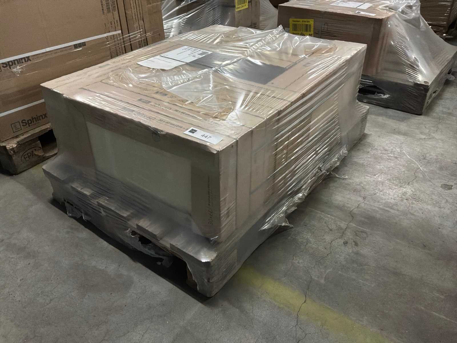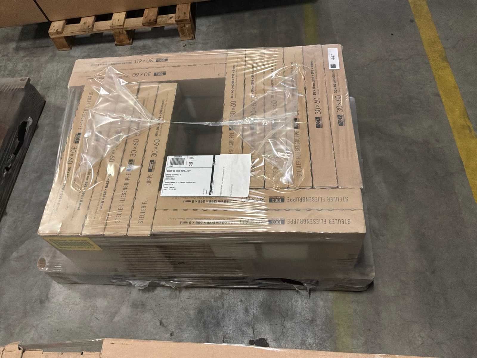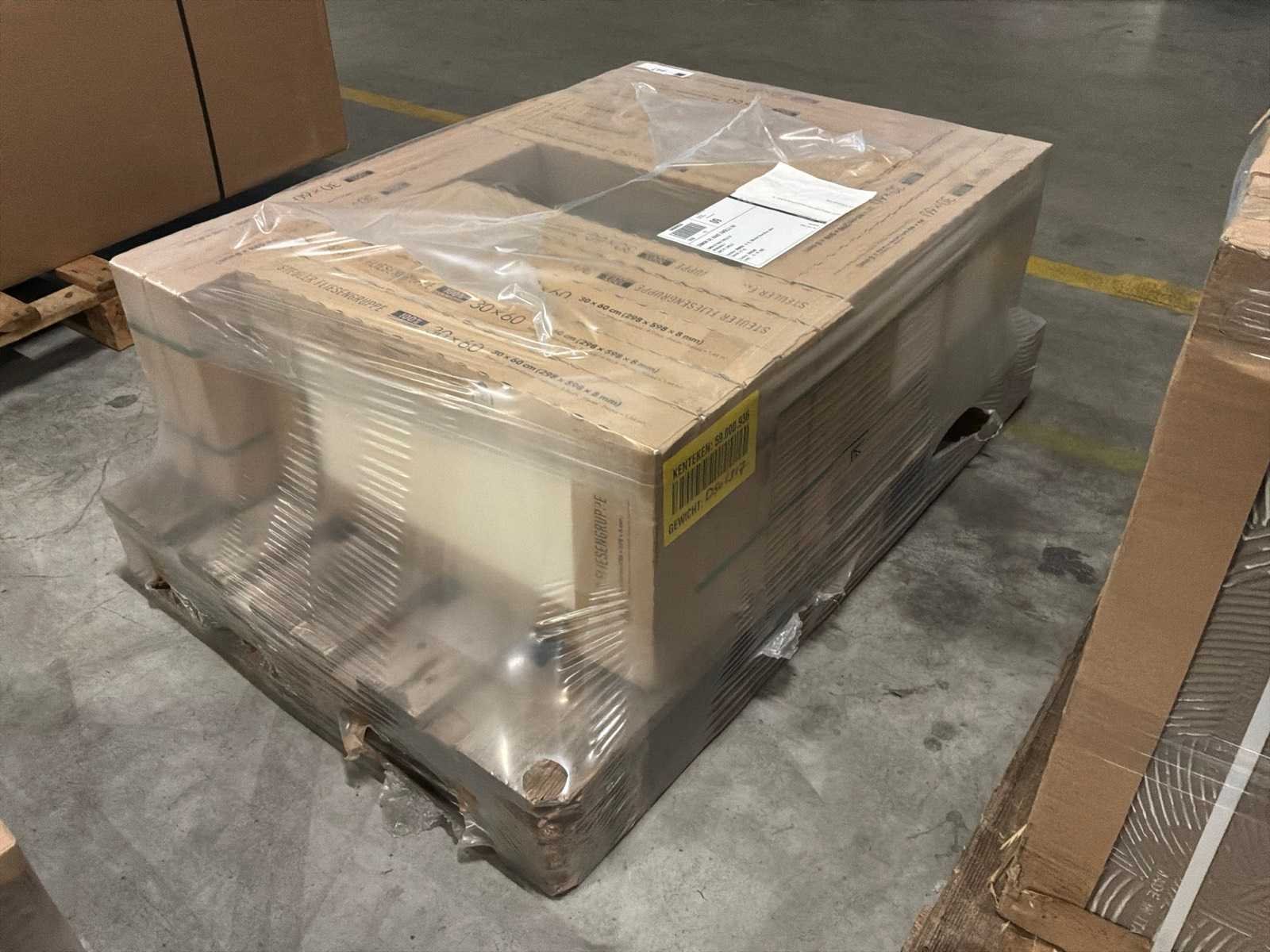 Pallet ongebruikte tegels in doos; Bestaande uit 17 pakken Panaria steignut nonvitrrous faïence beige a totaal 21,6 m2 wandtegels 30x60cm. Merk: Panaria Kleur: Beige Lengte: 30cm Breedte: 60cm Dikte: 8mm Type: steignut nonvitrrous faïence Aantal m² per verpakking: 1.44m² Aantal pakken: 17 Totaal oppervlakte: 21.6m²