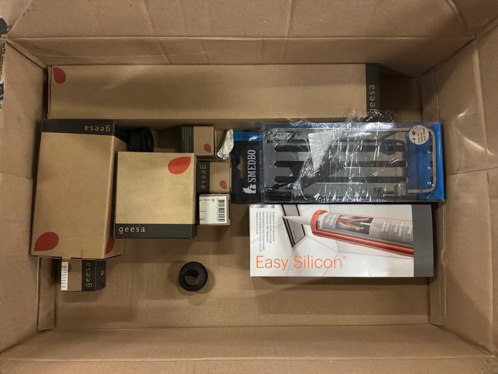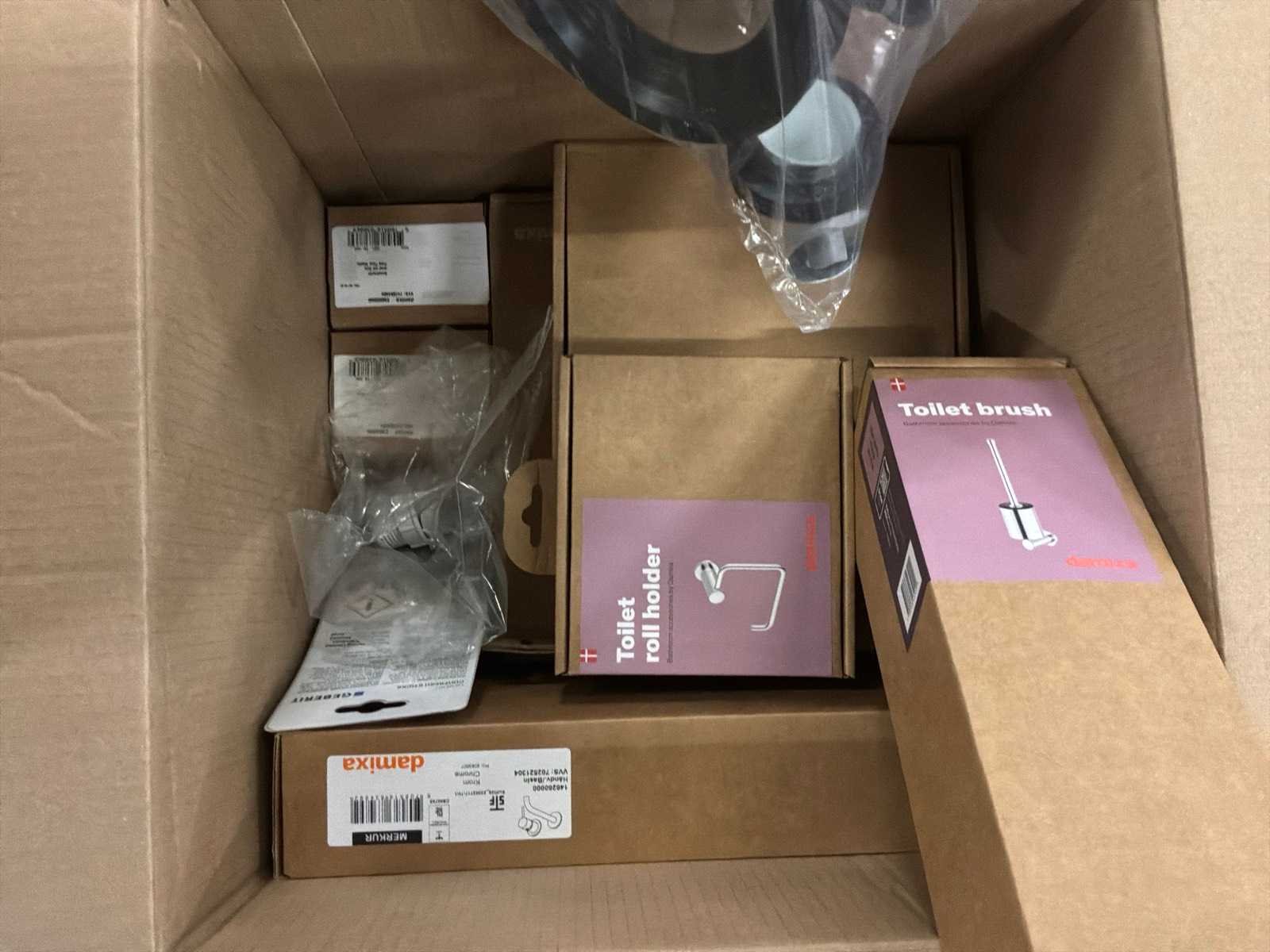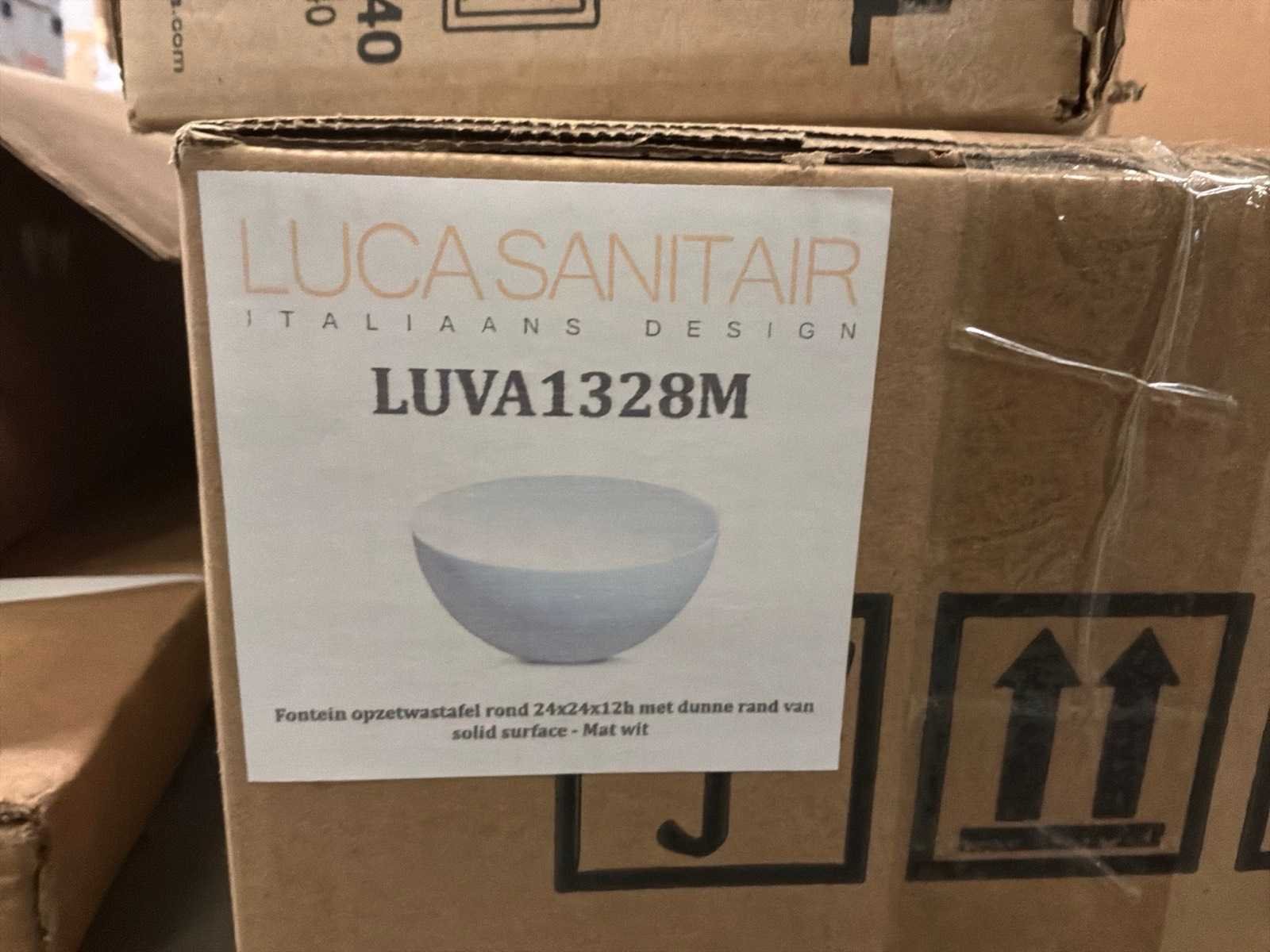 Bestaande uit verschillende wastafels, kranen en accessoires en een elektrische verwarming.