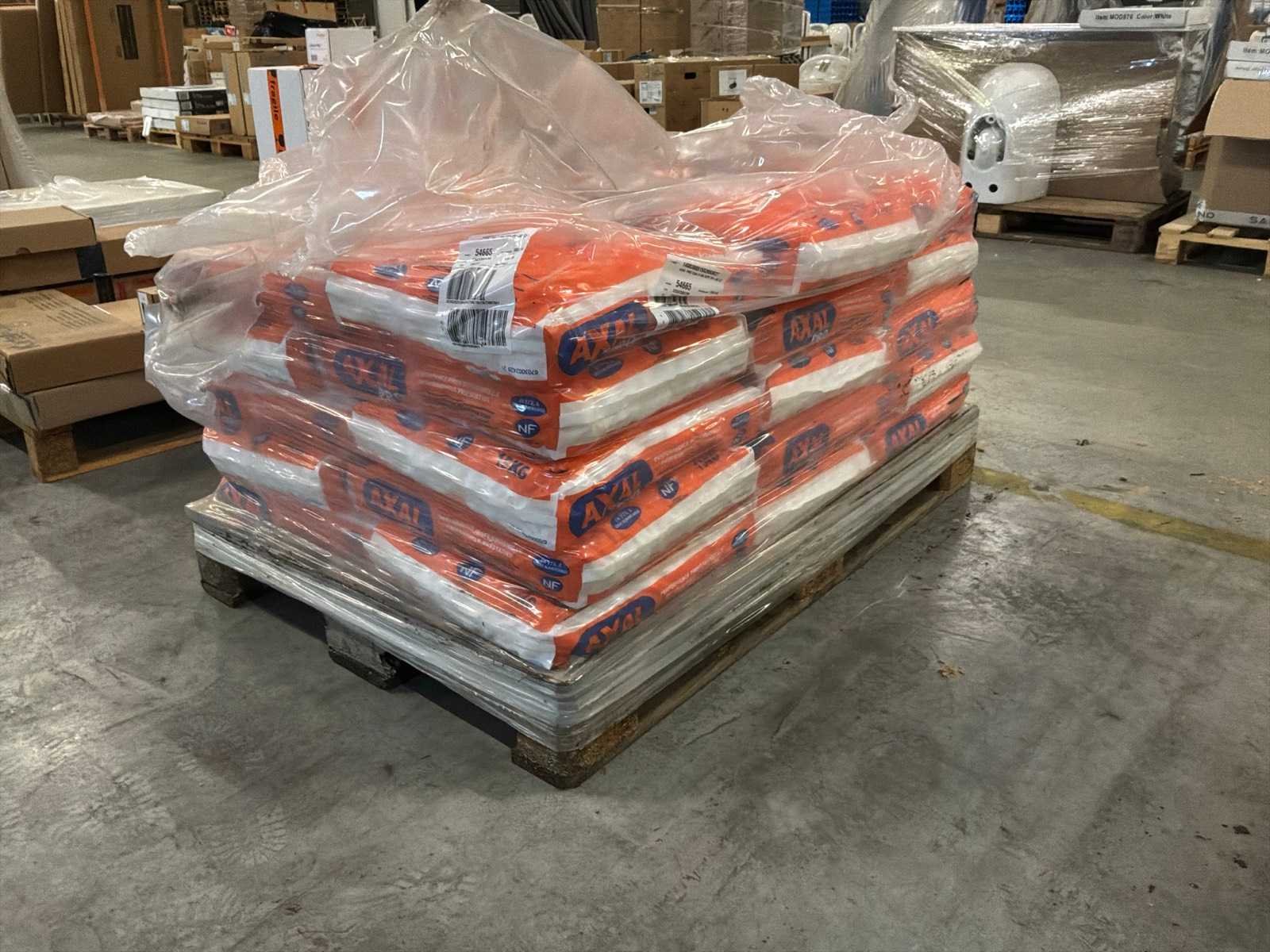 Een pallet met 30 ongeopende zakken. Merk: Axal pro Materiaal: Zout