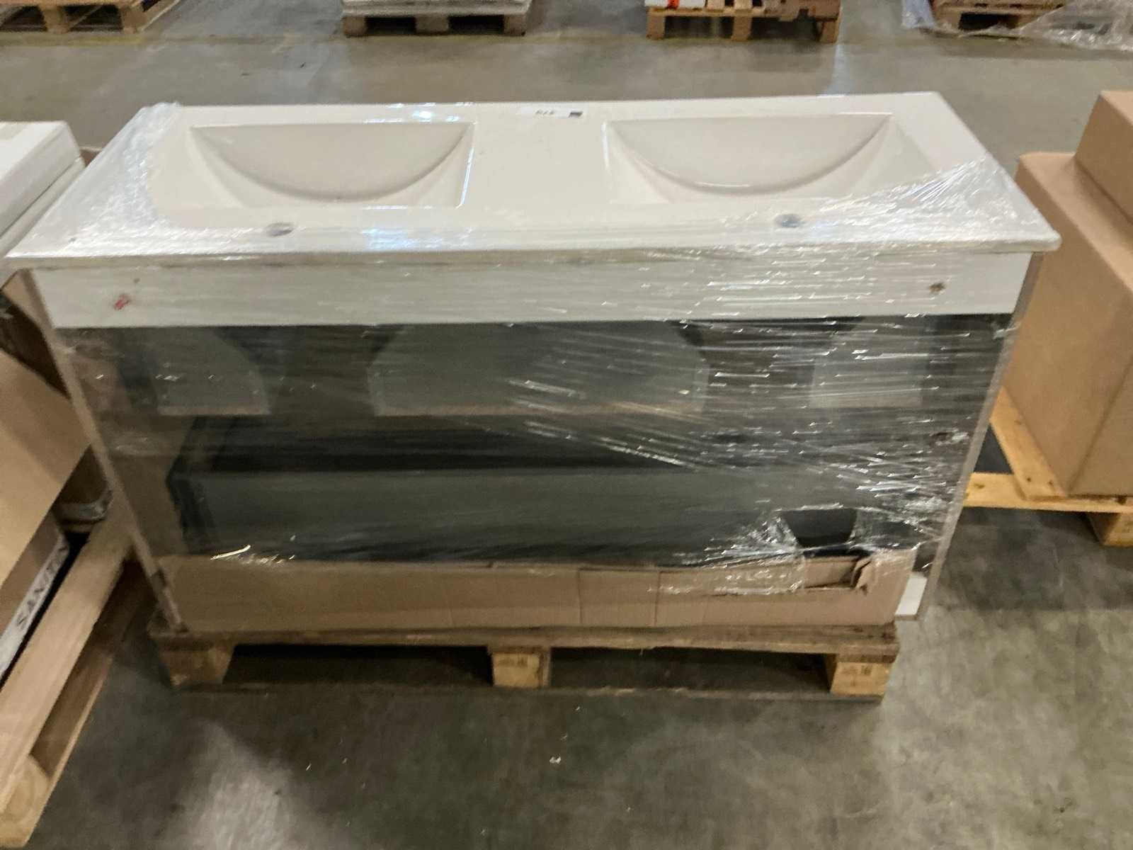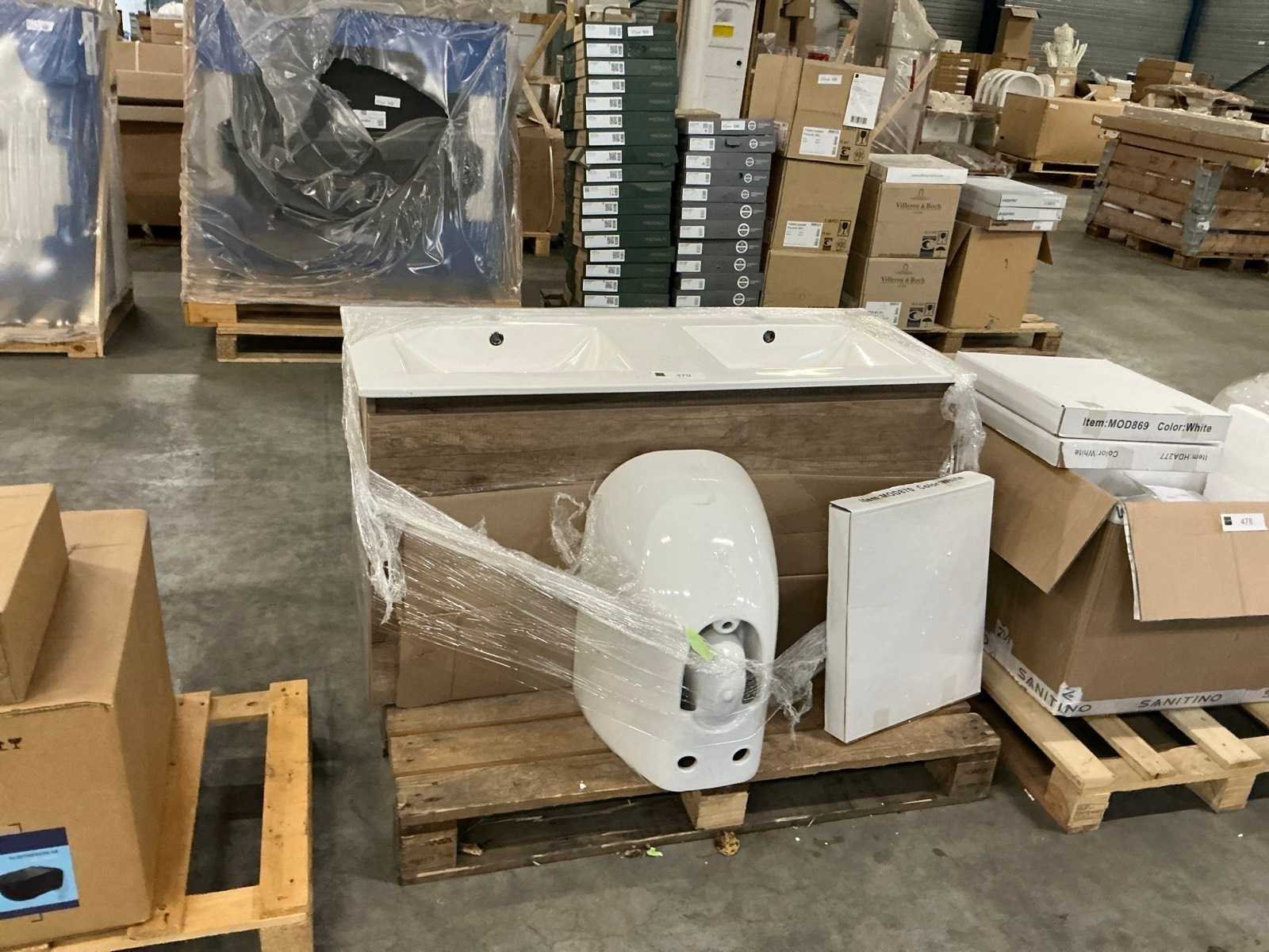 Bestaande uit een duowastafel 122x47cm met onderkast 119x46x66 en een wandcloset met deksel.