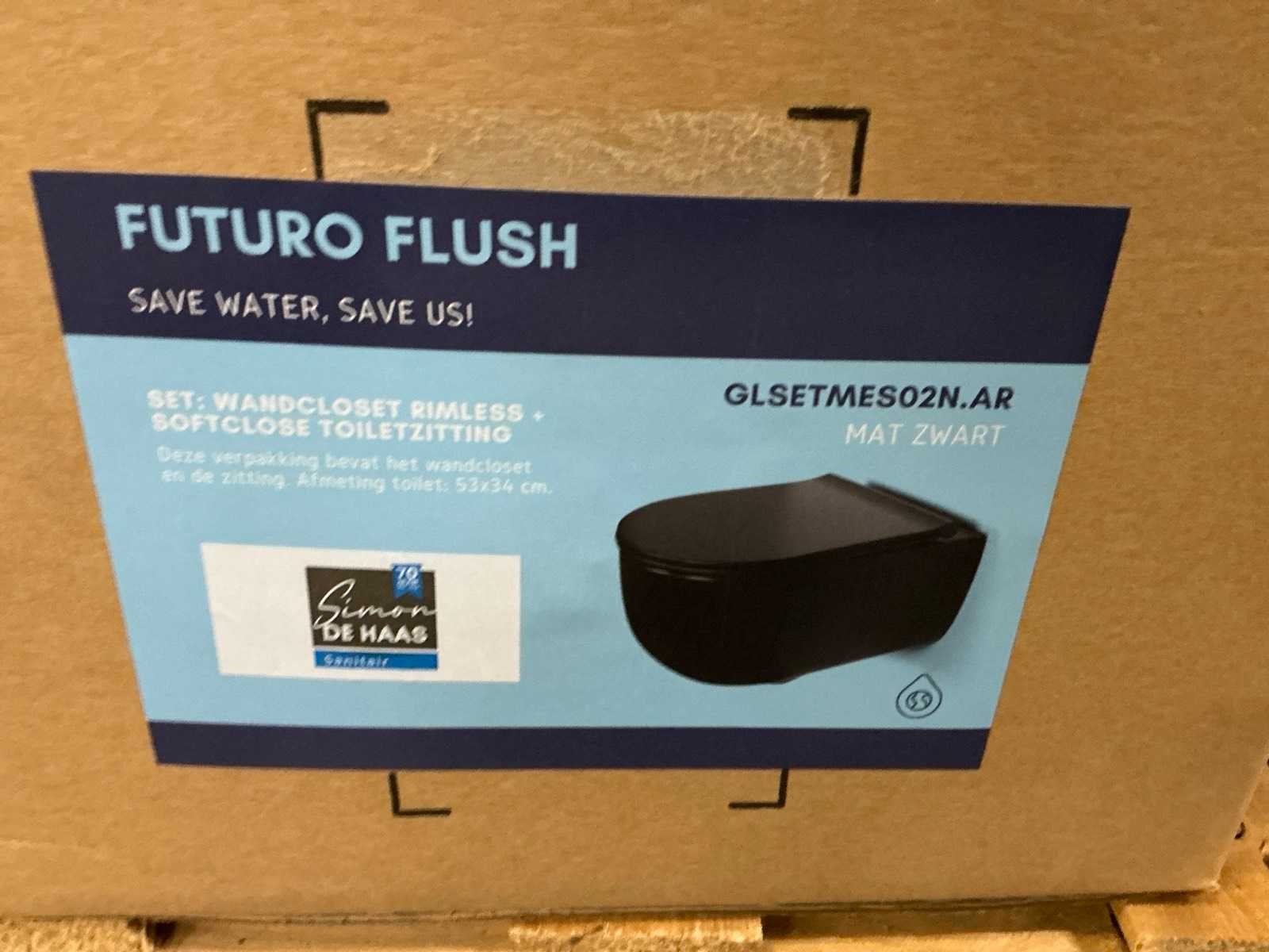 Bestaande uit een Futuro Flush wandcloset en een Luce 1607MBT fontein. Ongebruikt in doos. Merk: Luca Sanitair
