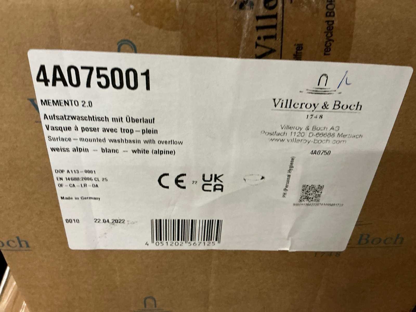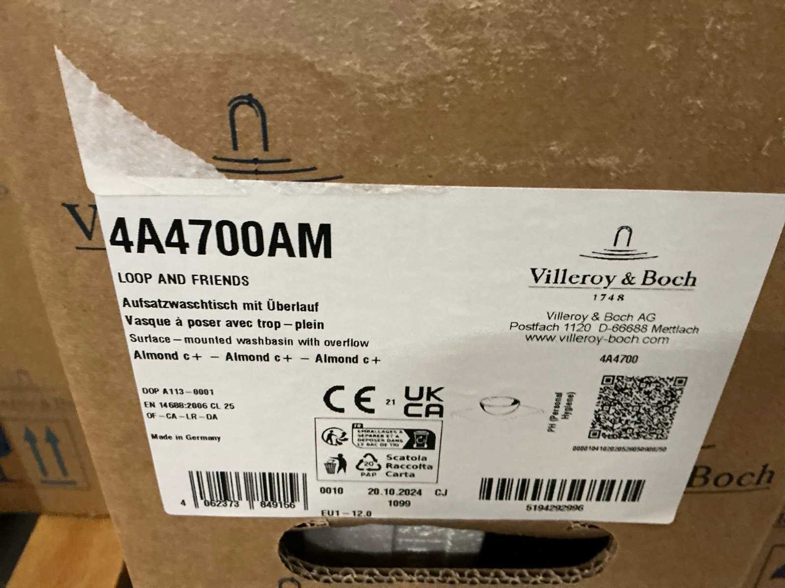 Bestaande uit 5 wastafels en een supportframe. Merk: Villeroy&Boch