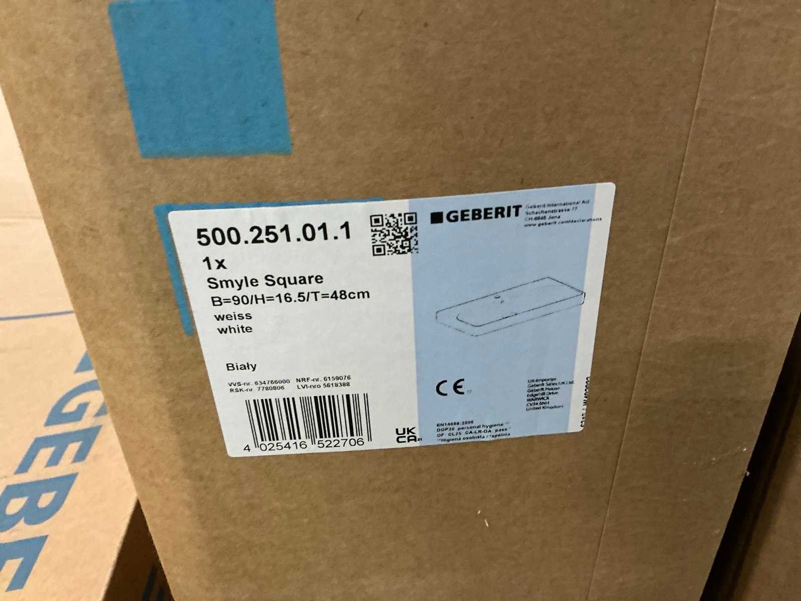 Bestaande uit 1x Duofix inbouwreservoir en 2x Smyle Square wastafel. Merk: Geberit