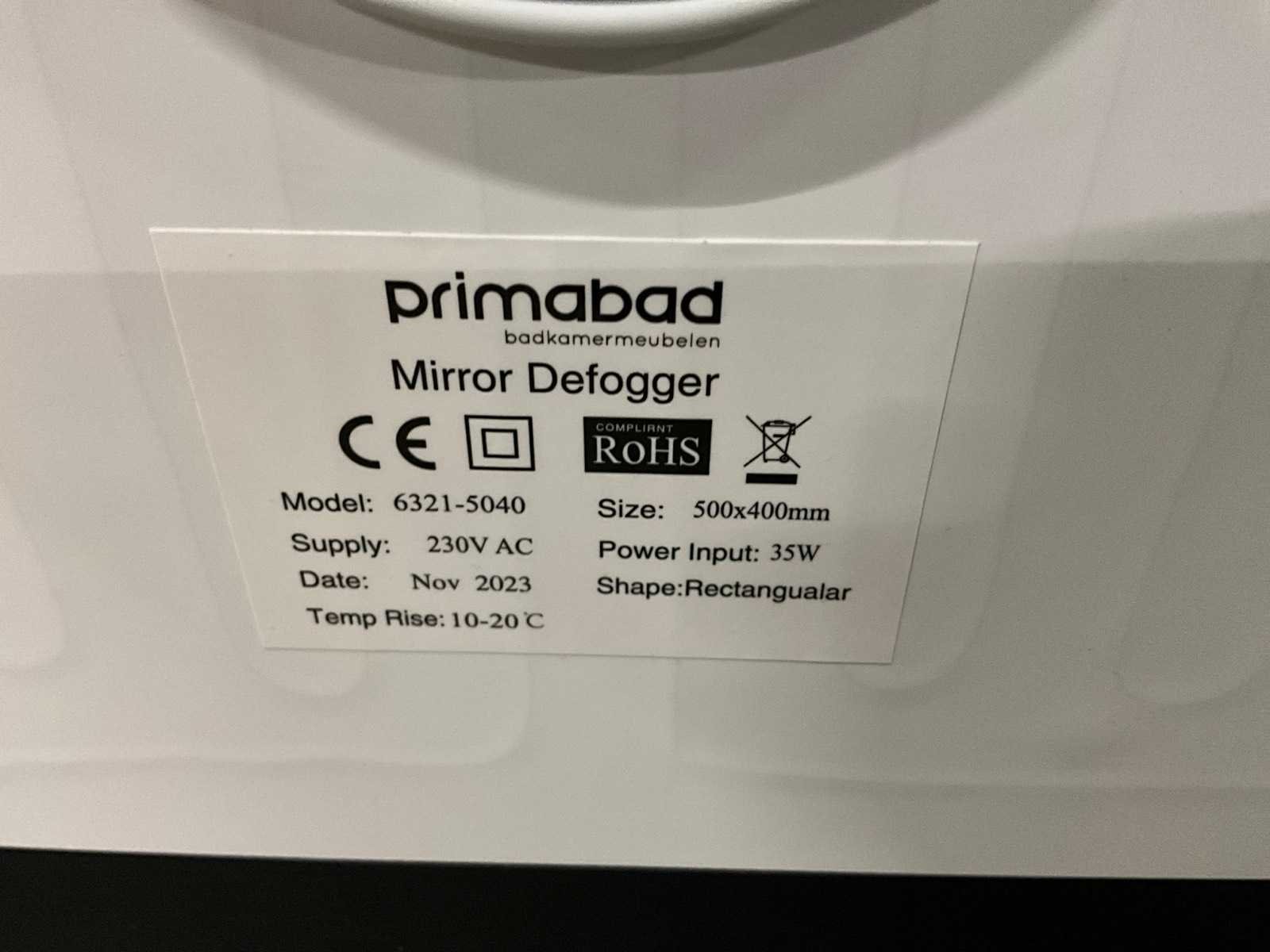 Voorzien van LED verlichting en spiegelverwarming Merk: Primabad Model: SPA 615 V Breedte: 70cm Hoogte: 60cm Touchscreen: true
