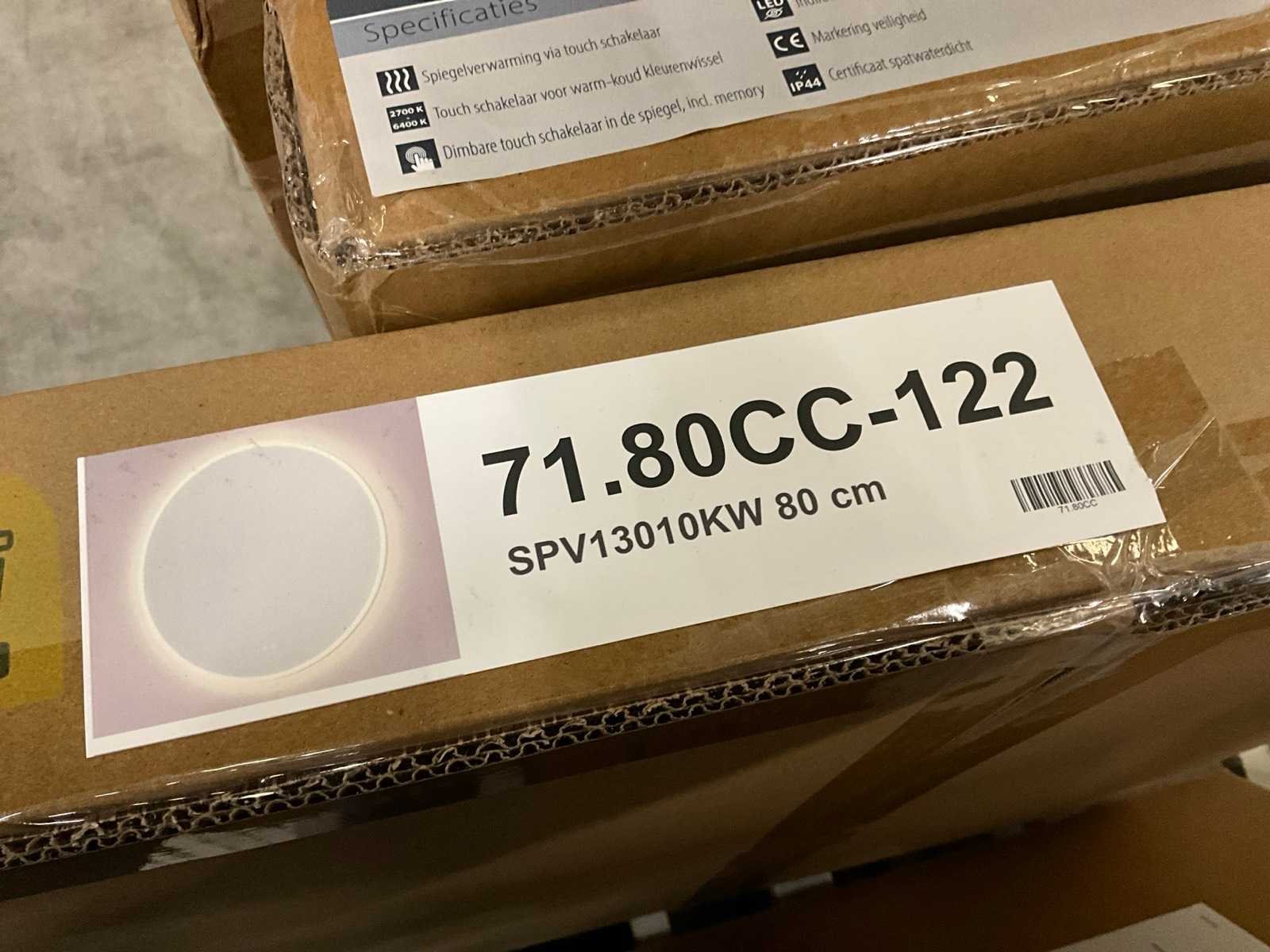 Voorzien van LED verlichting en spiegelverwarming Merk: Hipp Model: SPV13010KW Breedte: 80cm Hoogte: 80cm Touchscreen: true