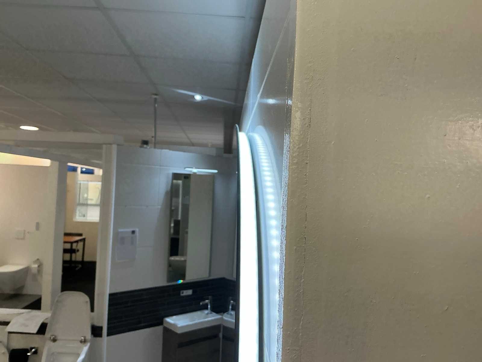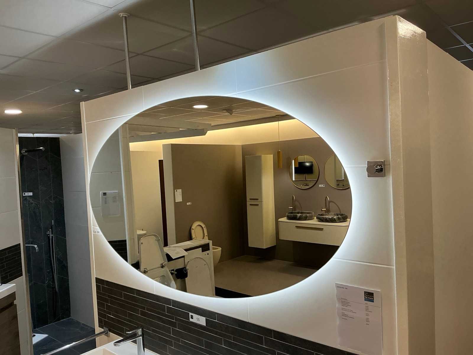 Voorzien van rondom LED verlichting, condensvrij. Merk: Detremmerie Model: Duo Light 160cm ovaal