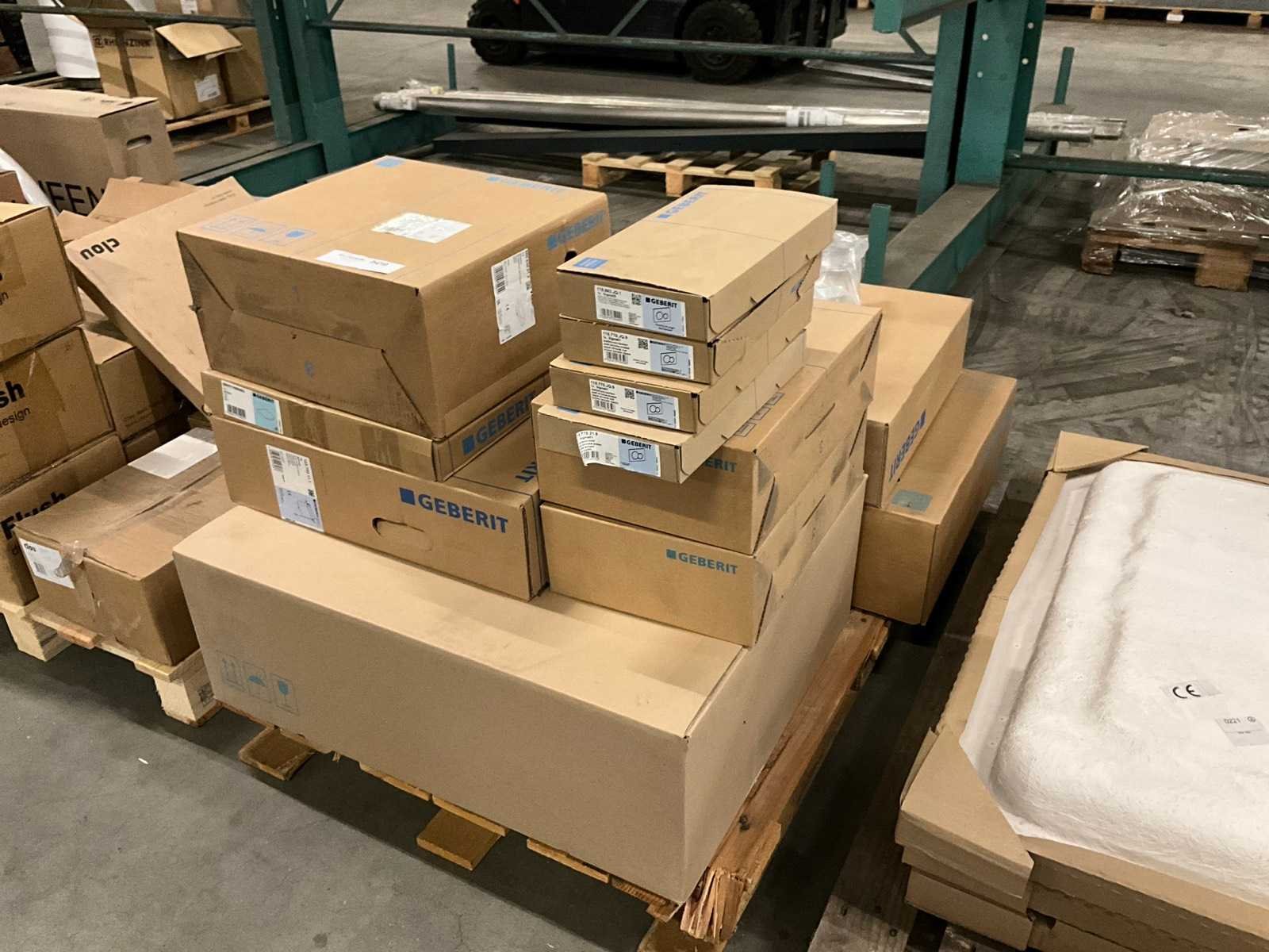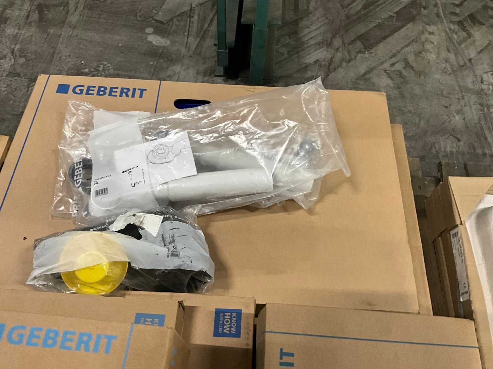 Waaronder wasbakken, toiletbril, leidingen. Merk: Geberit
