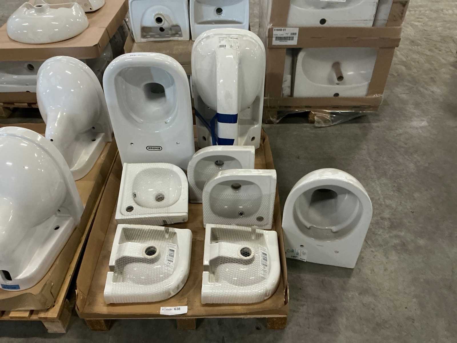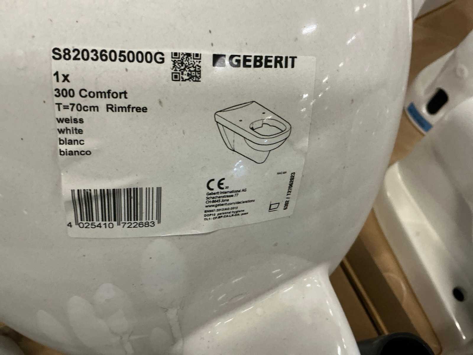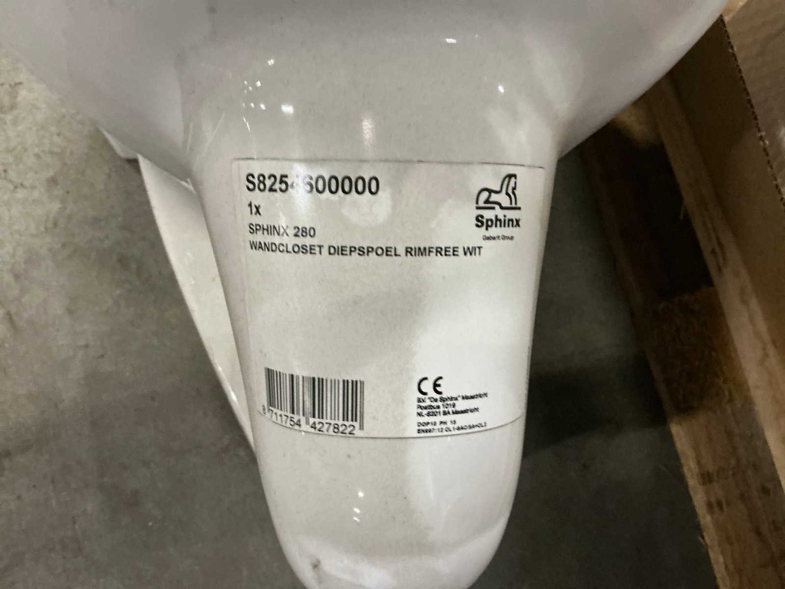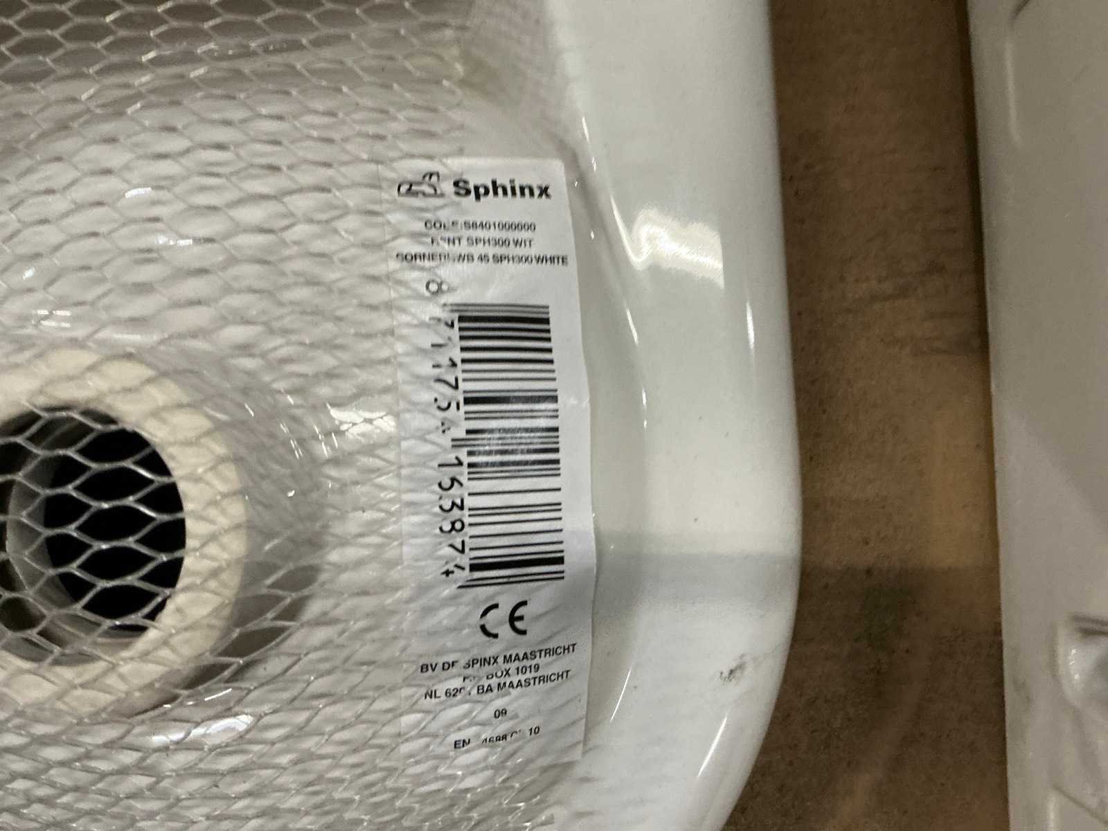 Bestaande uit 5x Sphinx SPH300 hoekfontein en 1x randloos wandcloset 280, 2x Geberit 300 Comfort T70 wandcloset Merk: Geberit / Sphinx