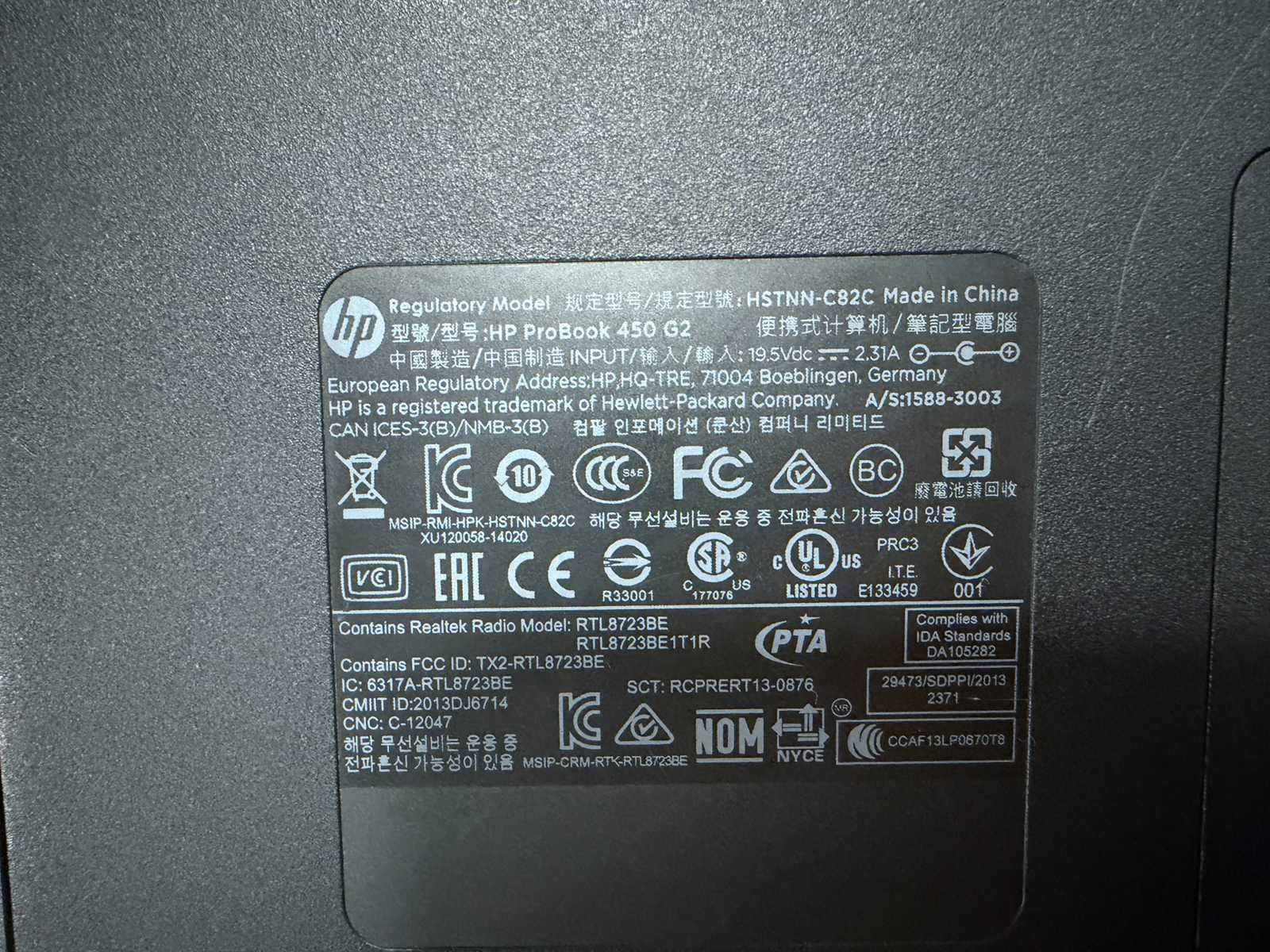 Inclusief adapter Merk: Hewlett-Packard Type: ProBook 450 G2 Serienummer: CND446C01V Processor type: Intel(R) Core(TM) i5-4210U CPU @ 1.70GHz,x86_64 @ 2.7GHz, logical CPUs: 4, Speed: 2700MHz RAM Geheugen Type: 4GB Type datadrager: HDD/SATA 500.1GB Besturingssysteem: Geen Wifi: true Bluetooth: true