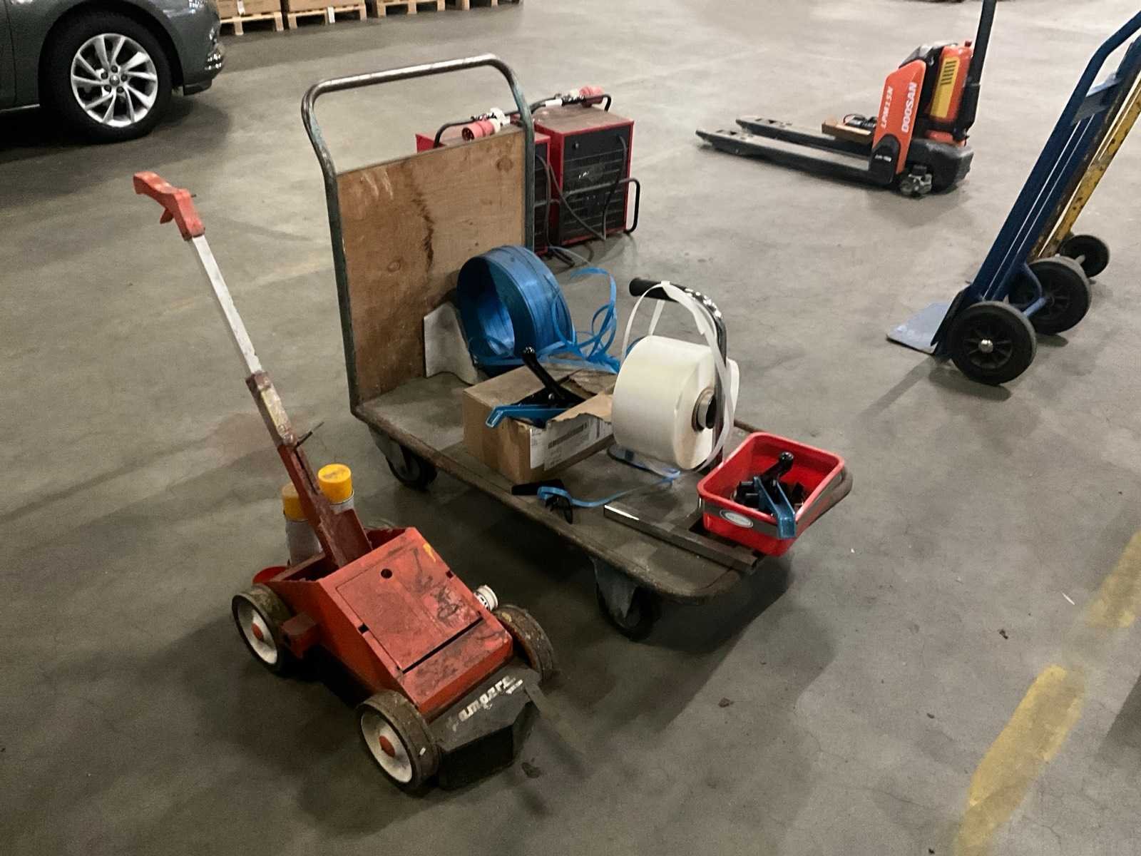 Waaronder: omsnoeringsband en tang, magazijnwagen 110x60x92cm, markeer / lijnentrekker.