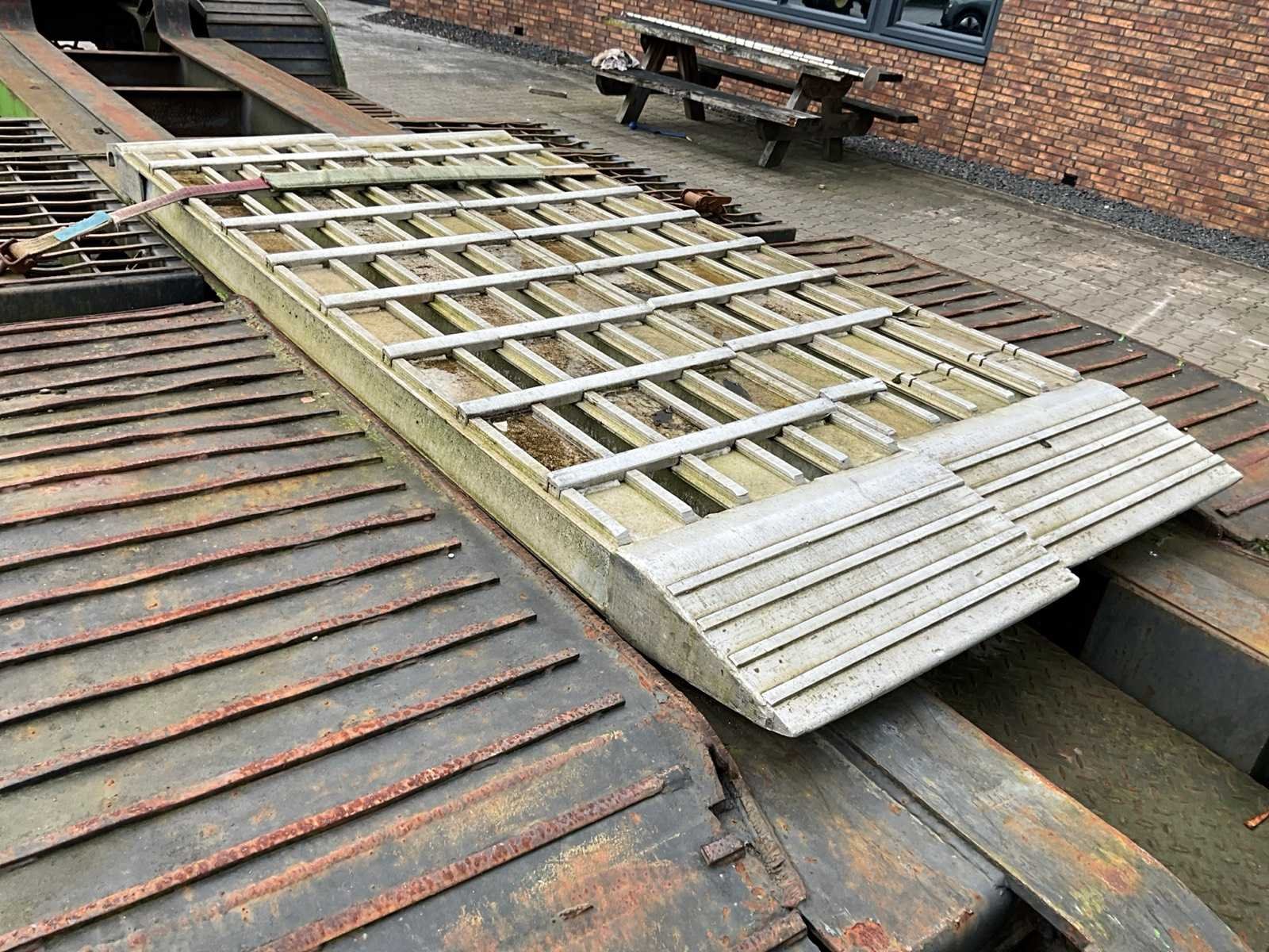 Voorzien van: Hydraulisch systeem ten behoeve van oprijplaten. Inclusief set aluminium oprijplaten. Merk: Daf Kenteken: LDF-75-B Laadvermogen: 0kg Aantal assen: 3 Kleur: niet van toepassing Datum eerste toelating: 1995-06-30 Datum eerste toelating (NL): 2021-05-20 Lengte: 9100 Breedte: 2500 Hoogte: 1120
