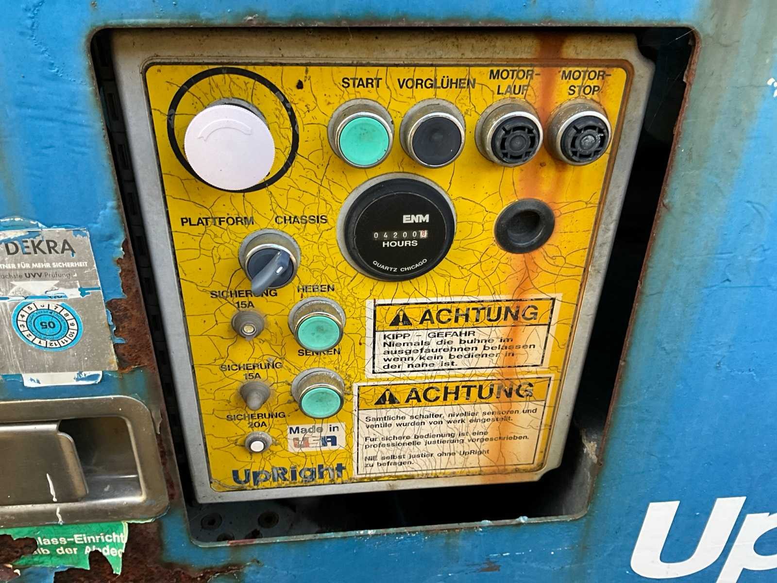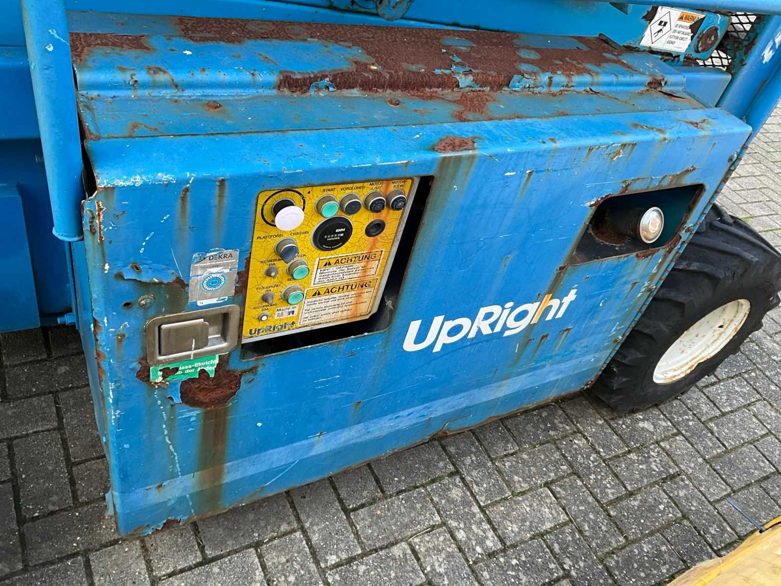 Voorzien van: 3 cilinder “Kubota” diesel motor, type D905. Merk: Up-right Diesel: true Plateau afm. l: 2200mm Plateau afm. b: 1300mm Platform capaciteit: 450kg Afgelezen urenstand: 4200 Totale afmeting L: 2700mm Totale afmeting Breedte: 1650mm Totale afmeting Hoogte: 2660mm