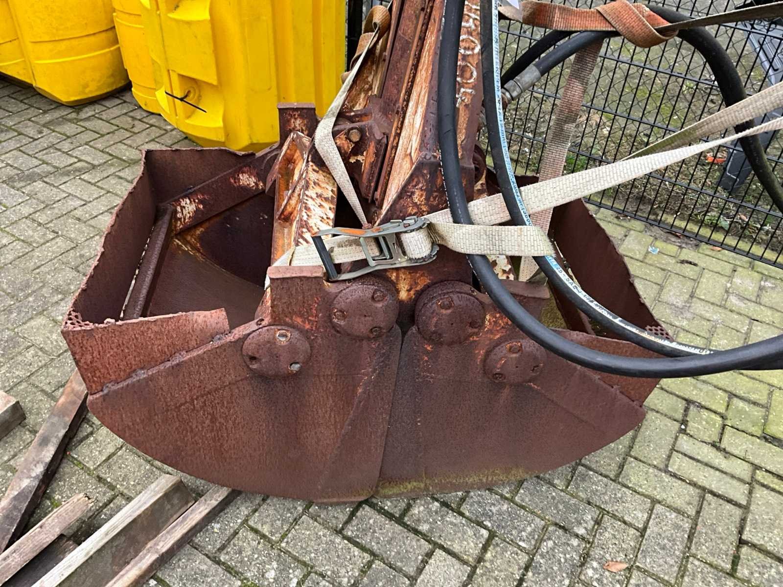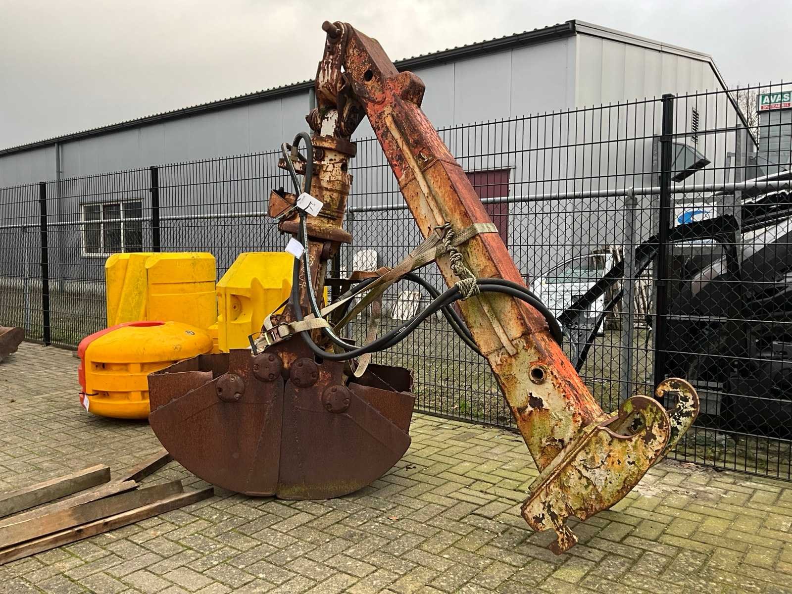 Voorzien van rotator, giek lengte circa: 2200 mm, knijpbak afmeting circa: 800x1250x650 mm, snelwissel CW30 Totale afmeting L: 3350mm Totale afmeting Breedte: 1000mm Totale afmeting Hoogte: 2400mm