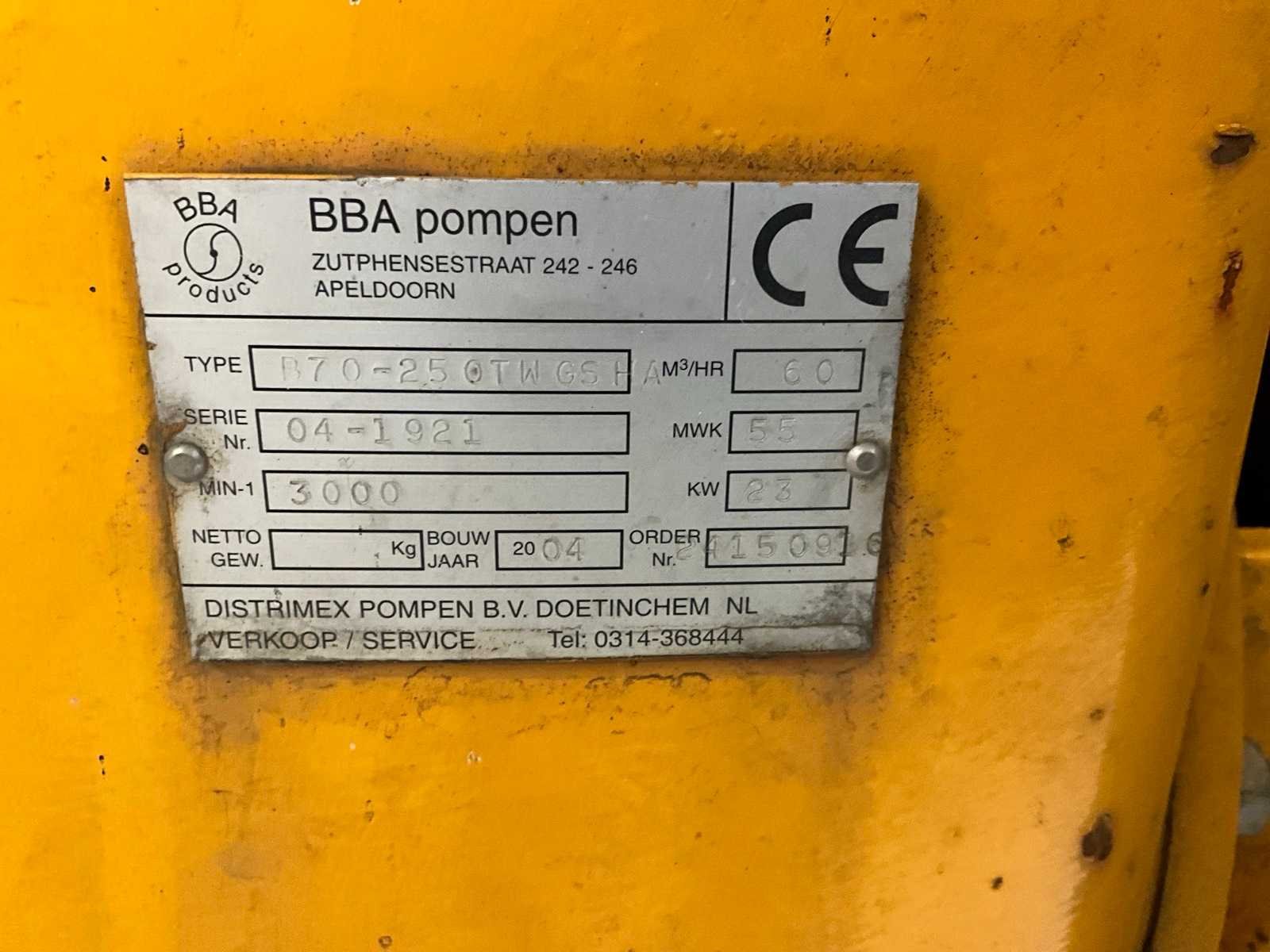 Voorzien van Hatz Dieselmotor. Merk: BBA Type: B70-25 OTW GSH Bouwjaar: 2004 Serienummer: 04-1921 Vermogen: 23kW Totale afmeting L: 900mm Totale afmeting Breedte: 1860mm Totale afmeting Hoogte: 1040mm