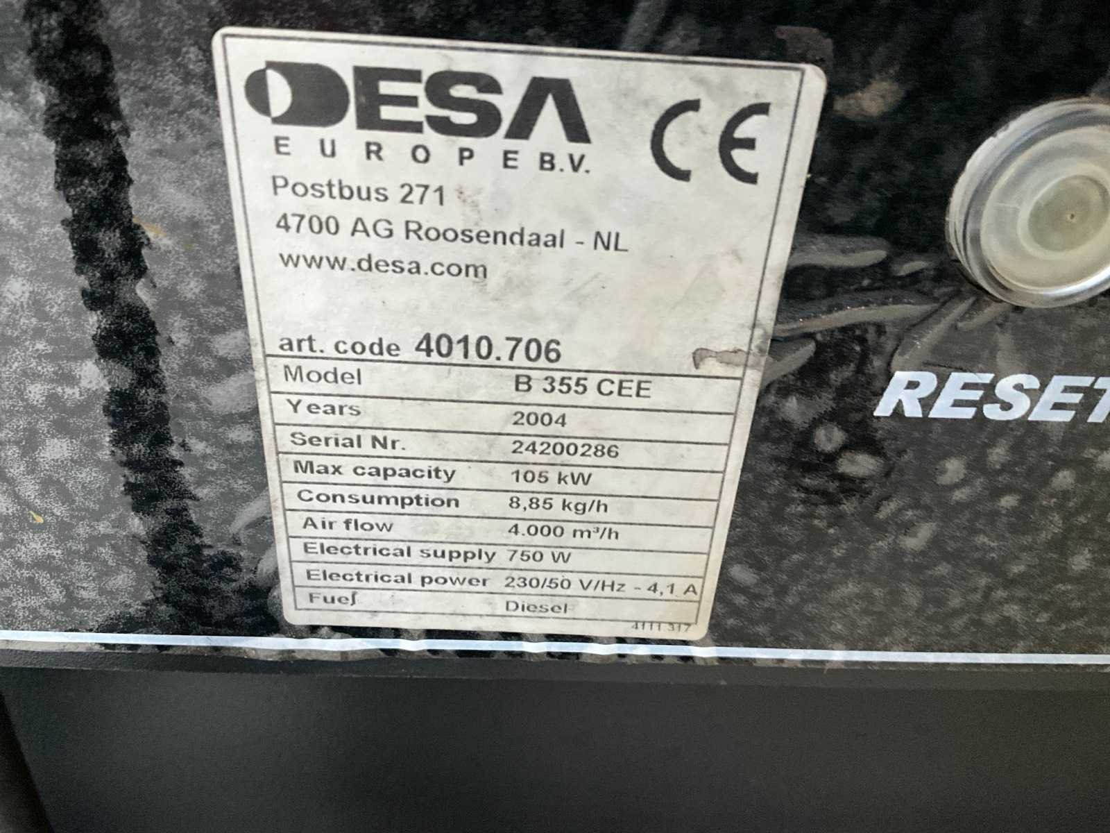 Merk: Master / DESA Type: B 355 CEE Bouwjaar: 2004 Serienummer: 24200286 Vermogen: 105kW Brandstof: Diesel Totale afmeting L: 1320mm Totale afmeting Breedte: 670mm Totale afmeting Hoogte: 900mm