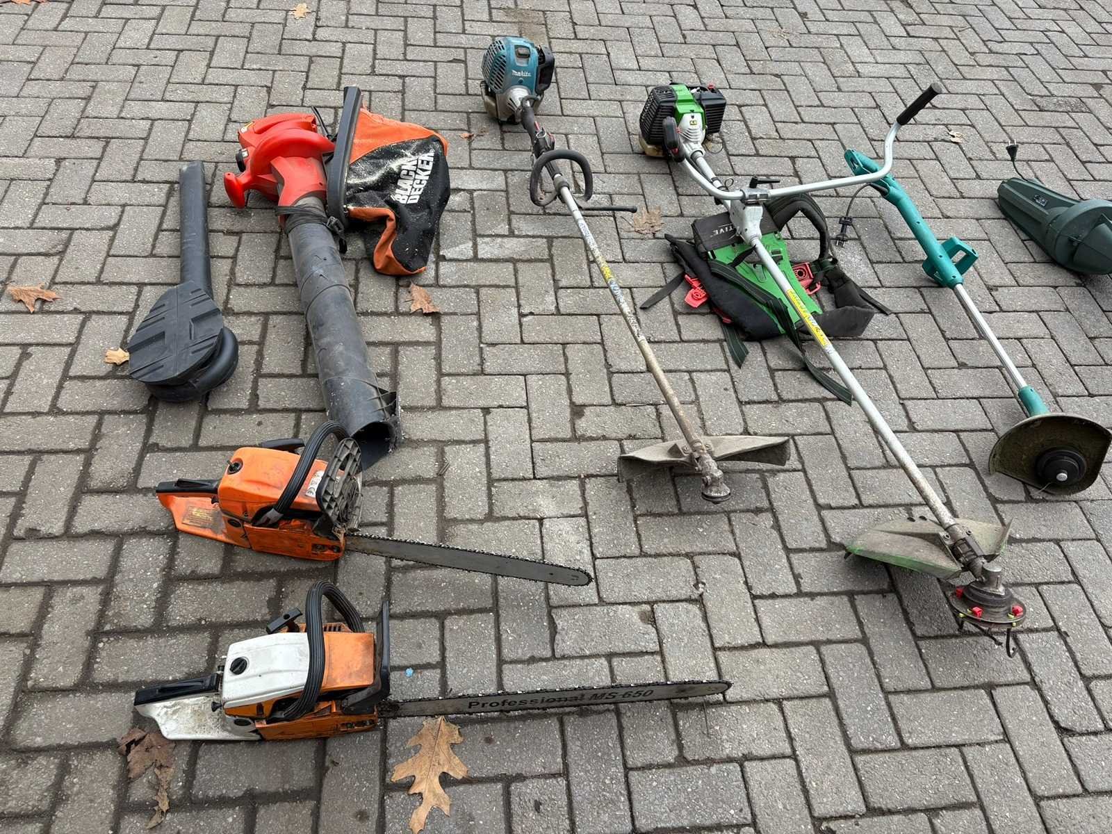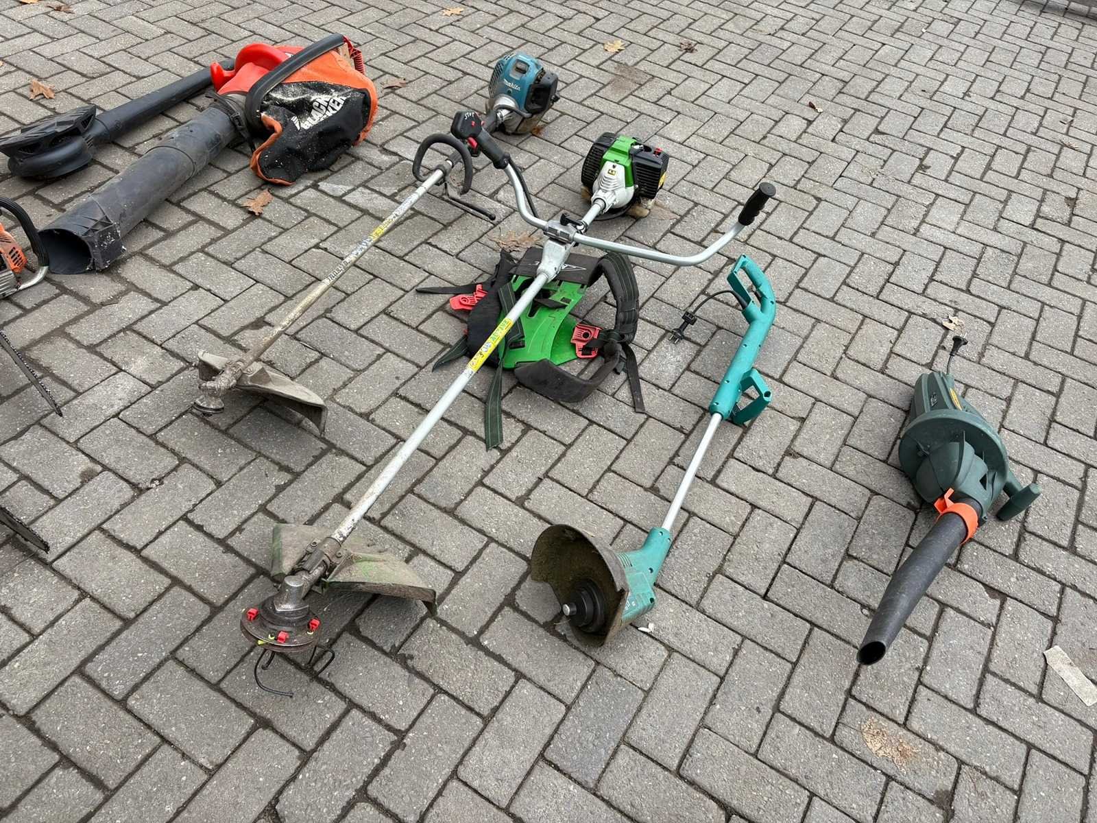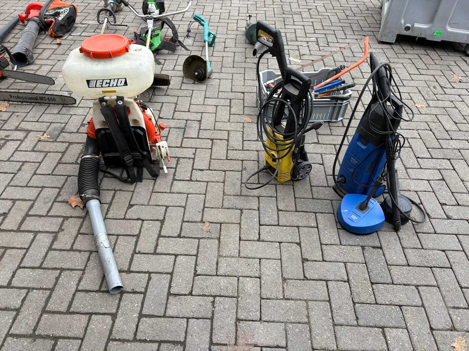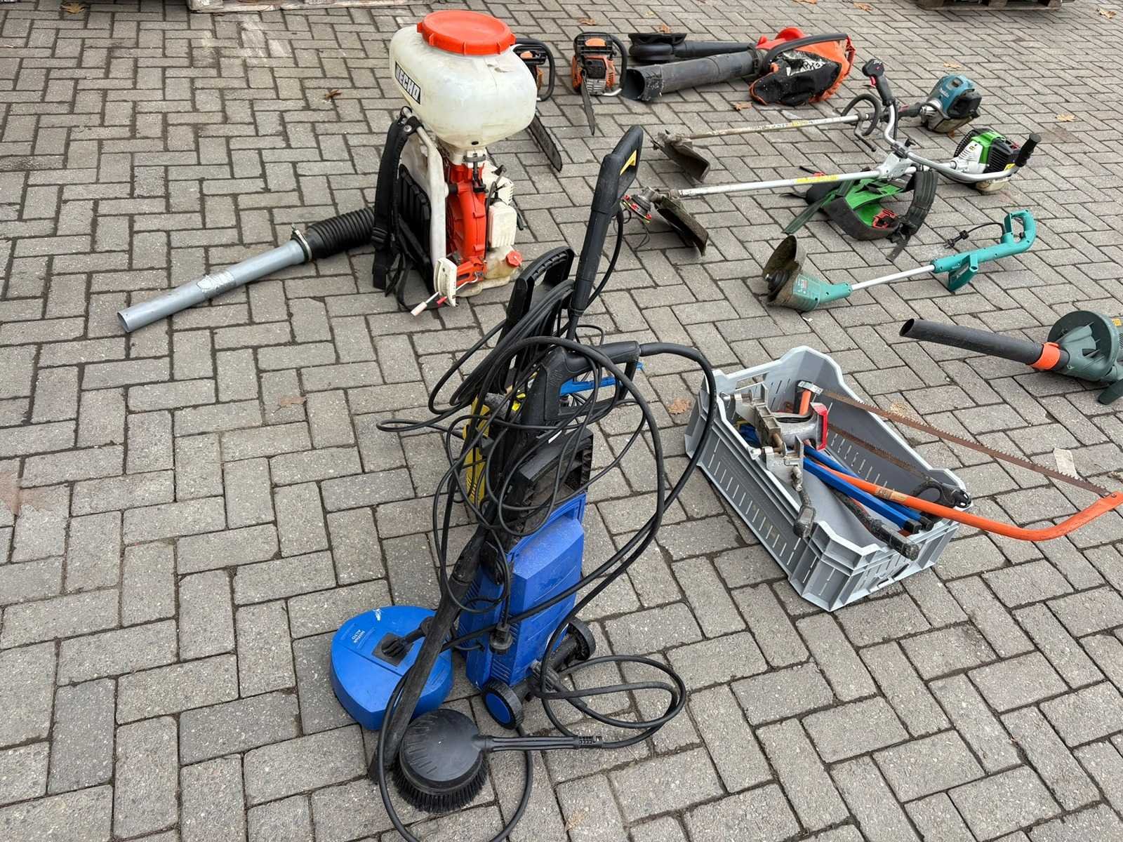 Bestaande uit: Bosmaaier Bladblazer Motorzaag Hoge drukspuit Rugspuit